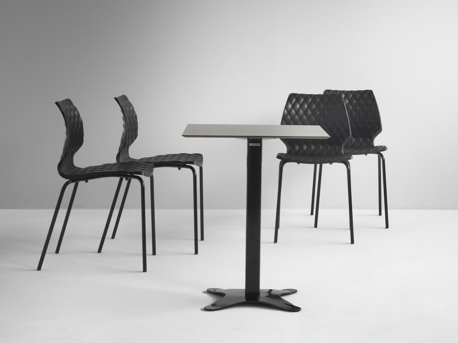 The EX 517 features a robust table frame with a molded steel base and an aluminum column, making it ideal for various settings such as restaurants, conference rooms, and cafés. Its modern design tables are available in both fixed and folding versions, catering to diverse space requirements. The outdoor variant includes a cataphoresis-treated frame for enhanced durability and adjustable feet for stability on uneven surfaces. Complementing the tables, the ergonomic and stackable café chairs offer durable seating solutions, perfect for educational institutions and event venues. The EX 517 seamlessly integrates into any environment, providing functional and stylish conference room furniture.