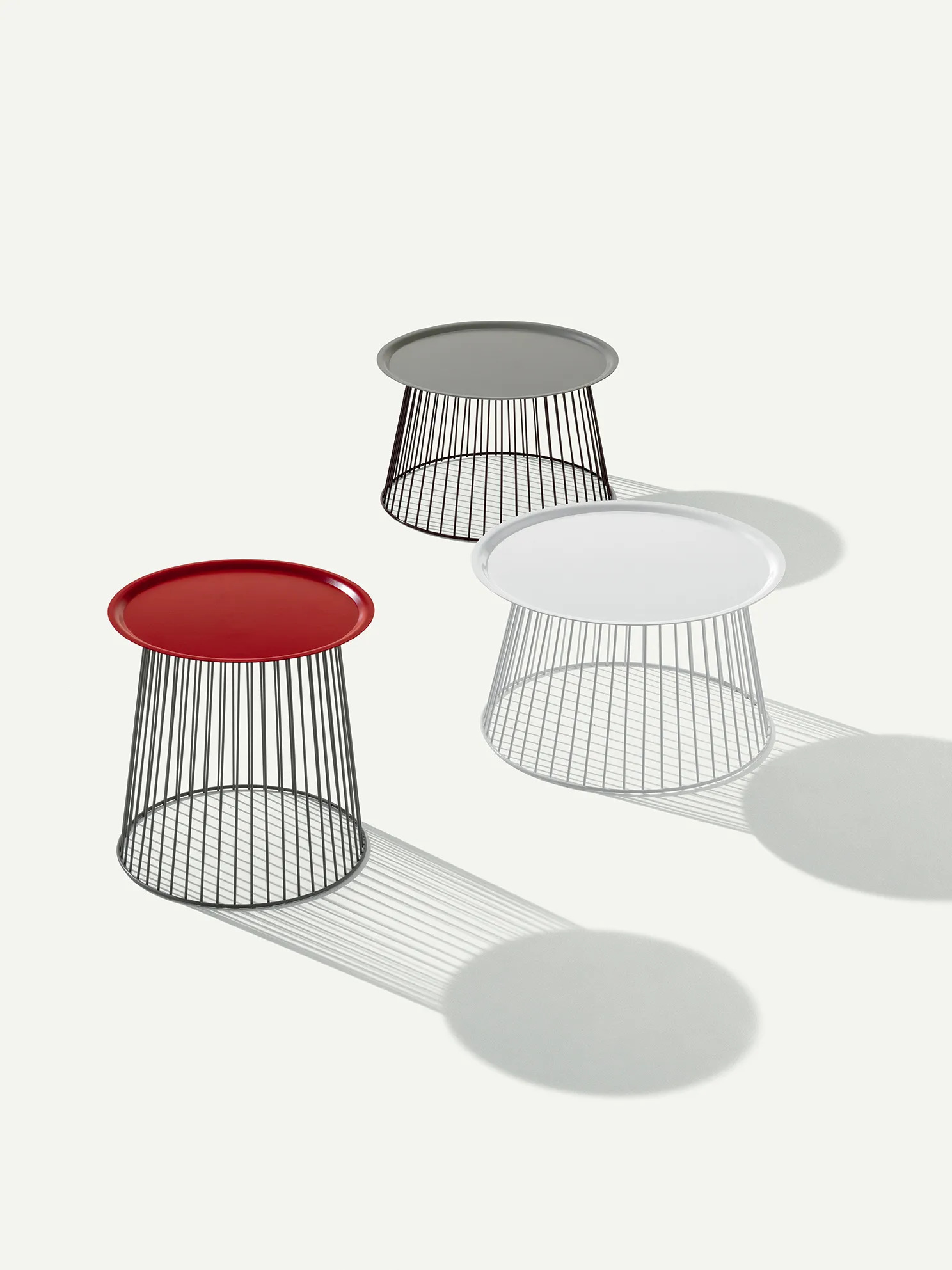 Noodle offers a versatile solution for restaurants, conference rooms, coworking spaces, cafés, event venues, and educational institutions. This collection of modern design tables features a conical structure crafted from slender yet sturdy vertical steel wires, reminiscent of loom yarns. The innovative design allows the tables to be inverted, providing a unique aesthetic. The metal sheet top is detachable, doubling as a convenient tray. Ideal for dining tables and café chairs, Noodle's durable seating and ergonomic chairs ensure comfort and functionality. The stackable chairs make it a practical choice for conference room furniture, allowing for easy storage and adaptability in various settings.