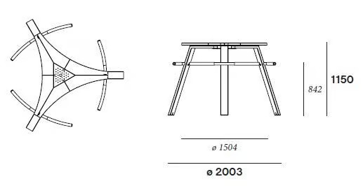 The ABACHUS offers a unique solution for restaurants, conference rooms, coworking spaces, cafés, event venues, and educational institutions. This modern design table combines the functionality of a high-top dining table with the comfort of café chairs. Featuring six ergonomic arms, it provides a convenient leaning option, eliminating the need for additional seating. Its durable construction ensures it withstands frequent use, making it ideal for busy environments. The optional integrated ashtray caters to smokers, maintaining cleanliness in shared spaces. ABACHUS is a versatile piece of conference room furniture, seamlessly fitting into various settings. Its stackable design allows for easy storage, optimizing space without compromising on style or comfort.