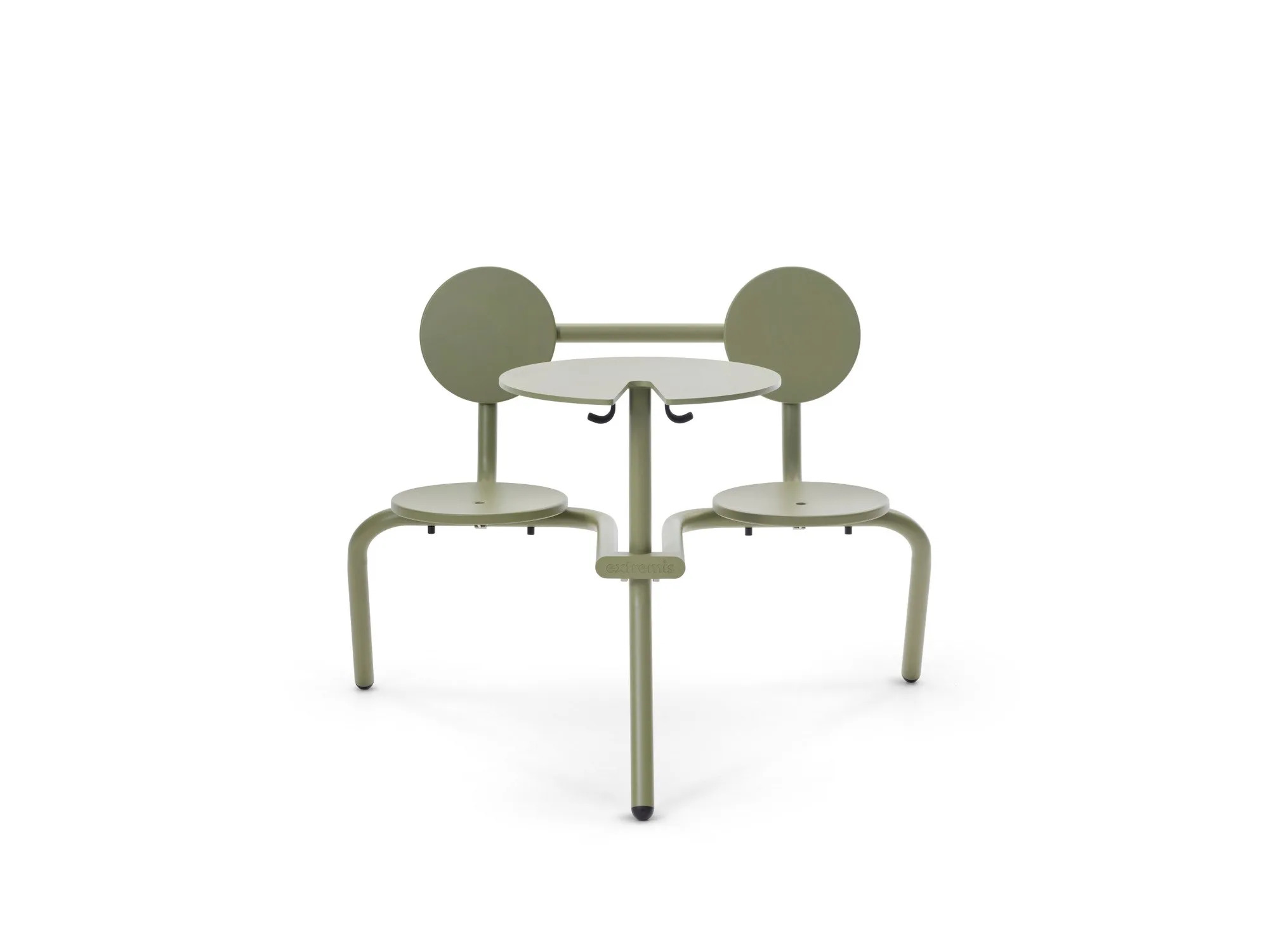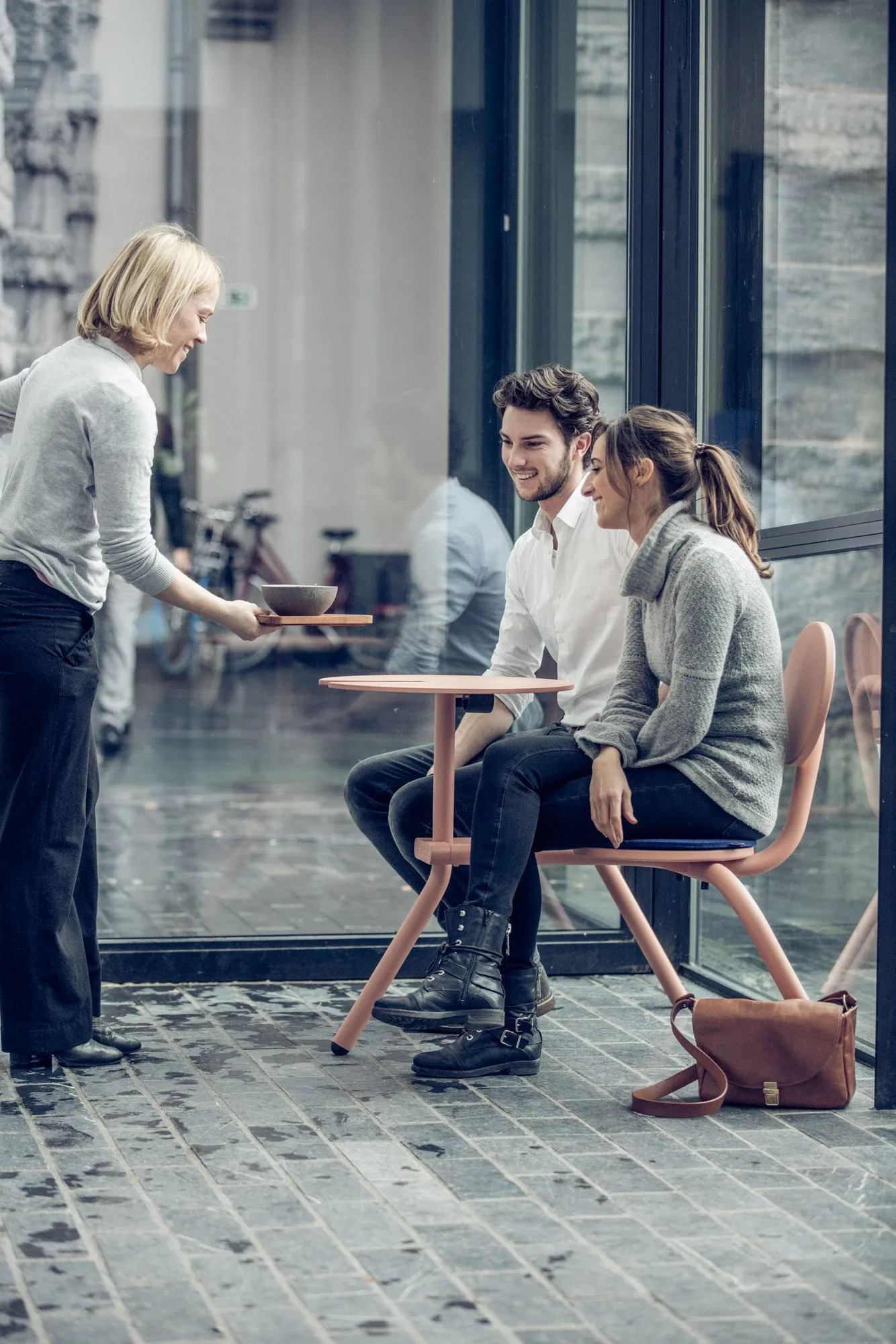 The BISTROO offers a versatile solution for restaurants, conference rooms, coworking spaces, cafés, event venues, and educational institutions. Its modern design features a compact table with a unique hole for convenient placement of trays or condiments, making it ideal for dining settings. The ergonomic, rounded backrests provide comfortable support, while the durable seating ensures longevity. With three strategically positioned legs, the table remains stable on various surfaces, including outdoor terraces. The stackable chairs and tables allow for efficient storage, making them a practical choice for conference room furniture. Crafted from powder-coated aluminum and stainless steel, the BISTROO is designed to withstand outdoor conditions year-round. Available in a fresh palette of colors, it seamlessly integrates into diverse environments, offering both functionality and style. Optional accessories, such as an iPad holder, enhance its adaptability for office applications.