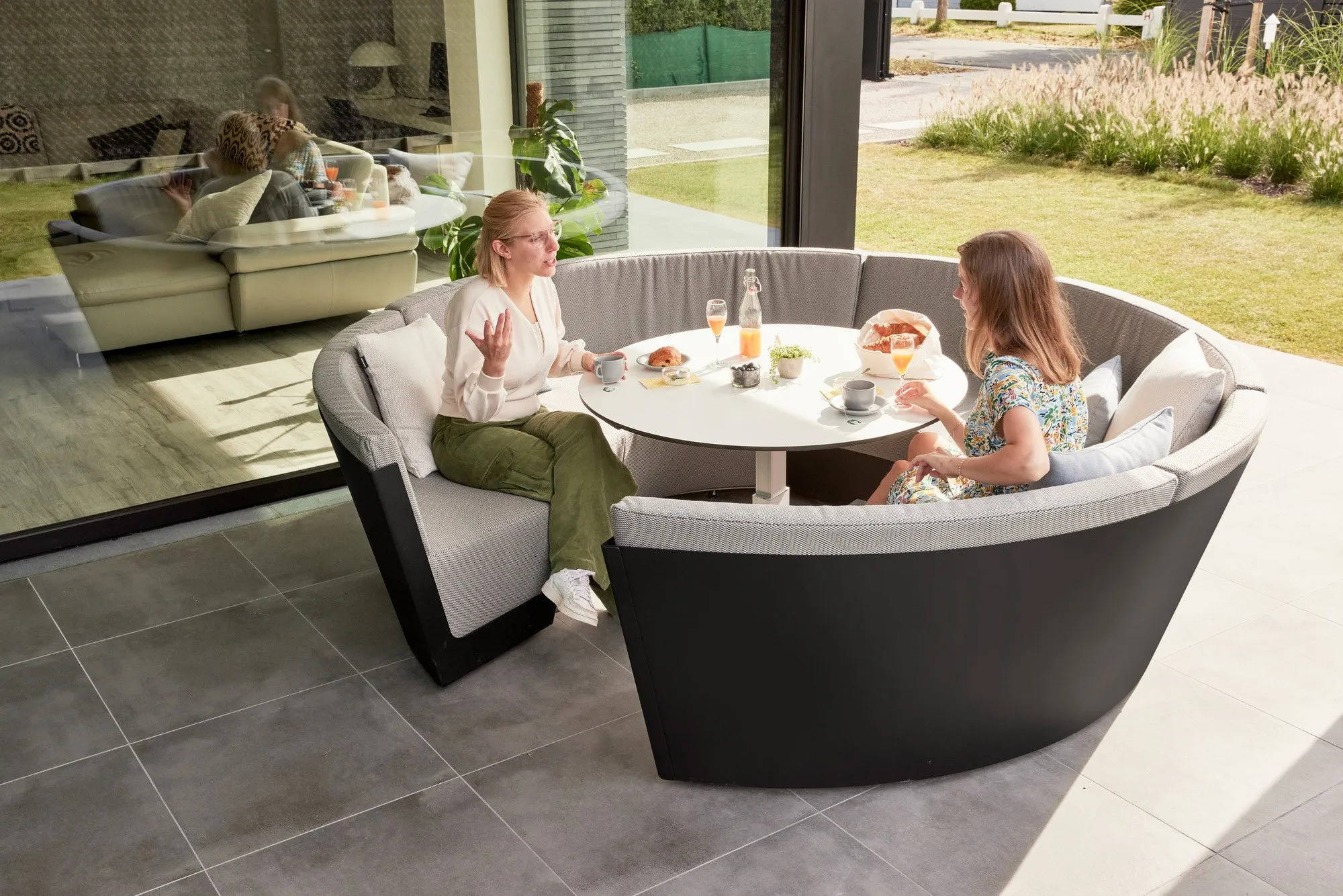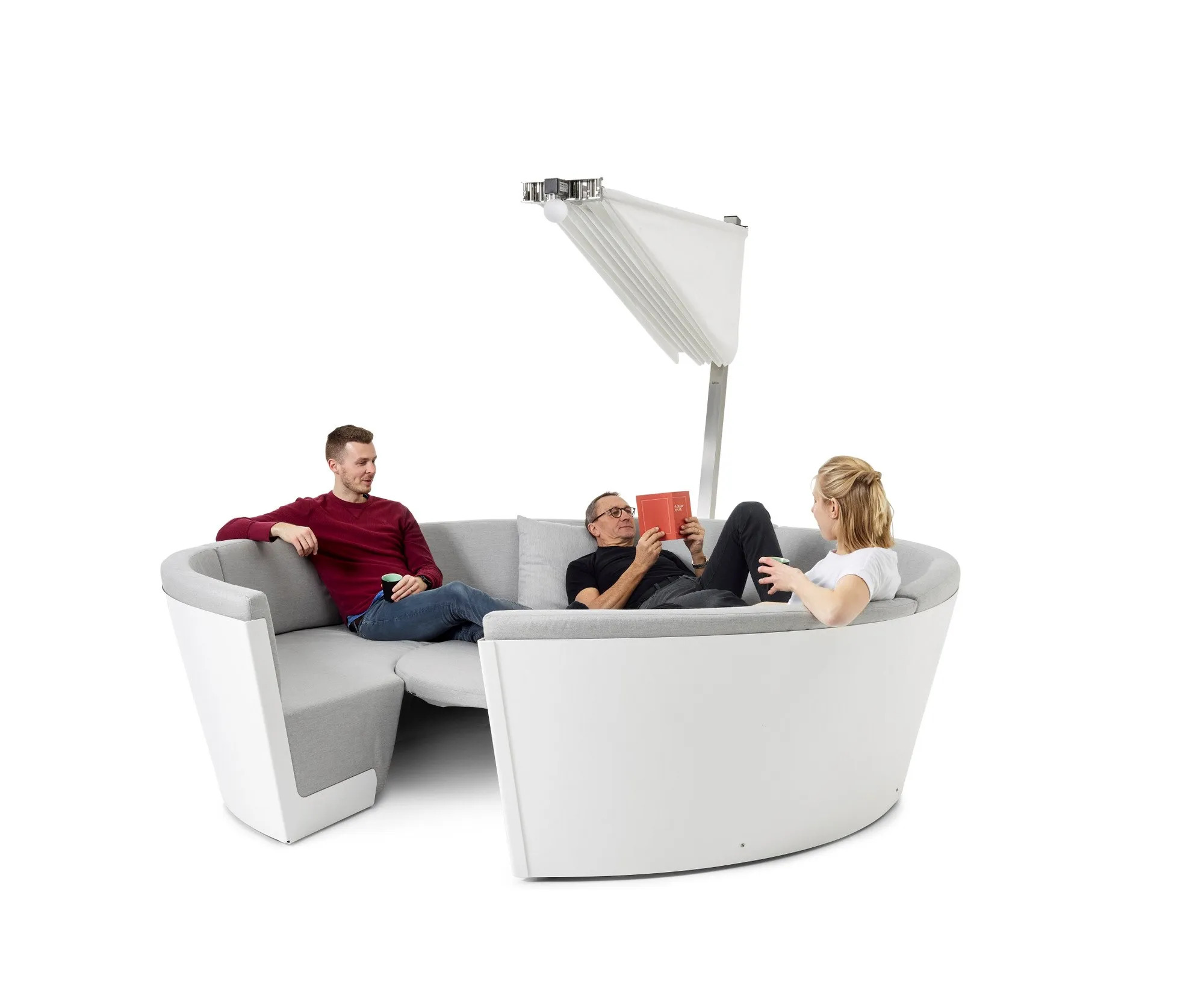 KOSMOS offers a sophisticated blend of comfort and style, ideal for hotels, cafés, lounges, waiting rooms, and residential interiors. Inspired by the elegance of yacht furniture, its lightweight aluminum frame and synthetic leather cushions reflect a nautical aesthetic. This modern lounge furniture piece features two semicircular seats, providing a versatile seating solution for up to nine individuals. The integrated table, which can be adjusted to seating height, transforms the setup into a cozy lounger accommodating seven. KOSMOS exemplifies ergonomic design and modular functionality, making it a prime choice for luxury sofas and armchairs. Its customizable upholstery options and compact design cater to diverse spaces, from expansive hotel lobbies to intimate residential settings. This piece seamlessly combines luxury and practicality, offering a unique addition to any interior design project.