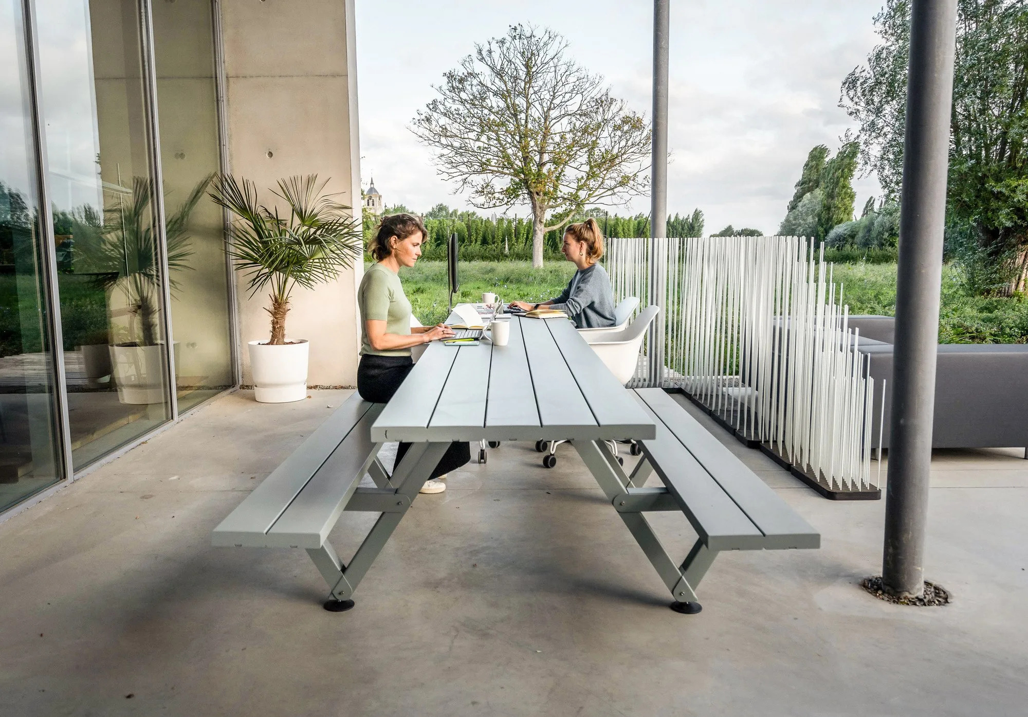 The Marina Combo offers versatile and modern meeting room tables, ideal for offices, clinics, government buildings, corporate offices, and coworking spaces. This range allows for customizable table arrangements, seamlessly transitioning from reception area furniture to modern waiting room seating. Crafted from a composite of glass fiber and polyester, these tables are durable and lightweight, resembling wood while being resistant to temperature fluctuations and humidity. Available in four tabletop widths and heights, the Marina Combo accommodates both standard and bar stool seating. The design includes options with five or six fiberglass sections, providing ample space for cable management and desk dividers. The number of table legs adjusts with the table's length, ensuring stability and functionality.