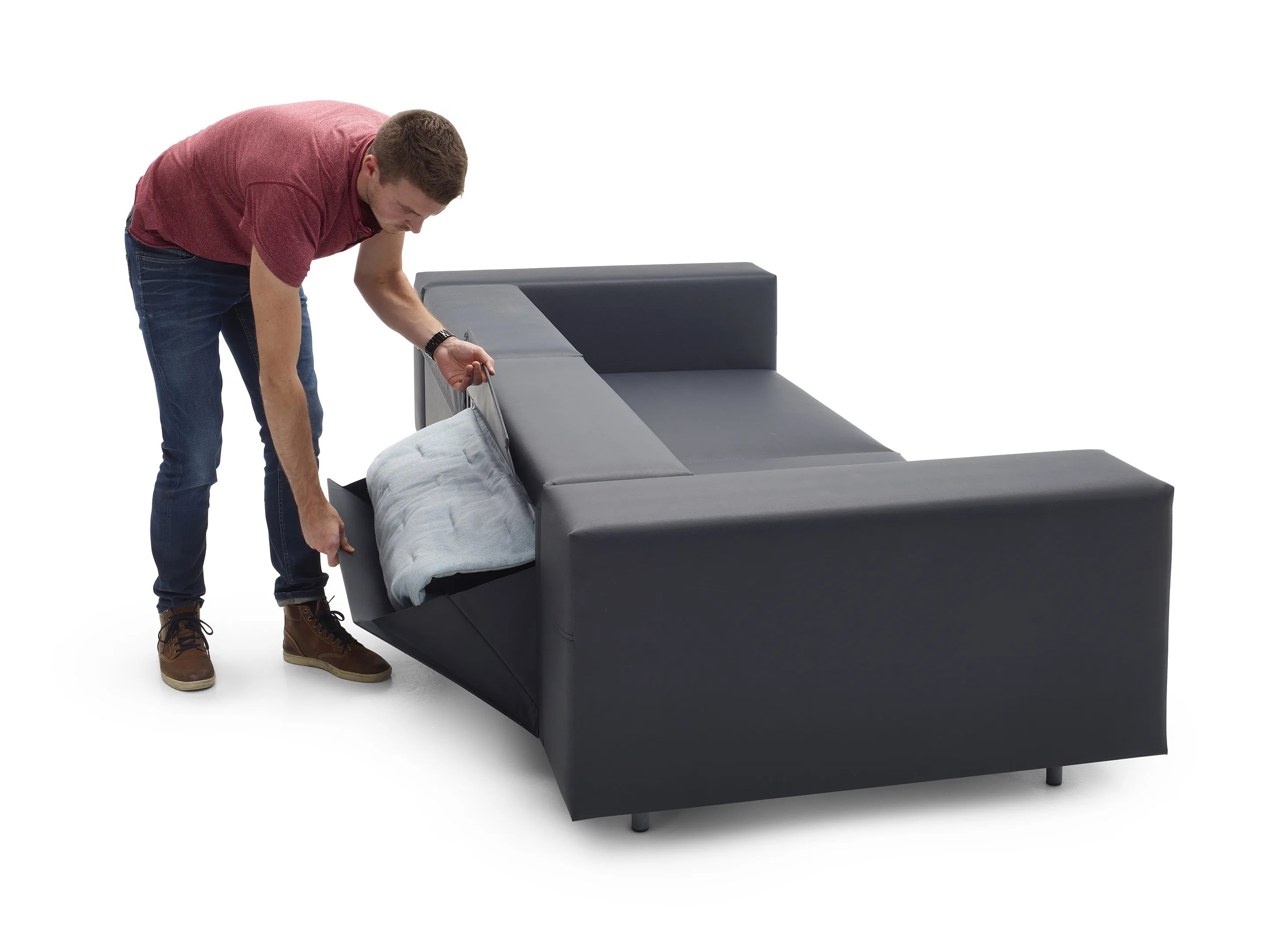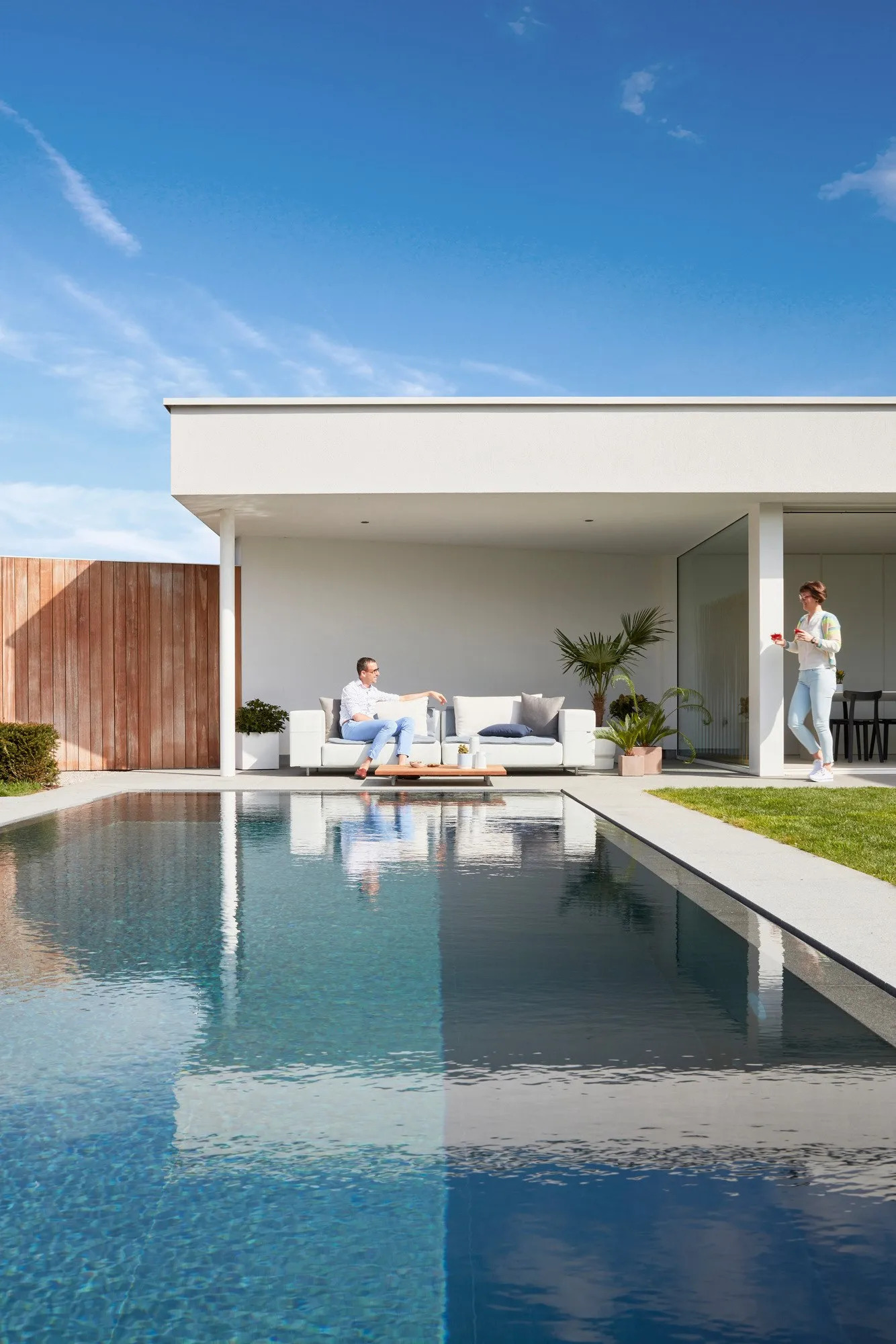 The Walrus Corner Seat, designed by Dirk Wynants in 2014, offers a versatile solution for resorts, cafés, restaurants, outdoor event planners, and beachside hotels seeking durable outdoor furniture. This modular outdoor seating option features a spacious design, allowing for flexible arrangements and additional seating on its solid armrests. Constructed with a robust tarpaulin material, the Walrus Corner Seat is an all-weather outdoor furniture piece that resists water and dirt, ensuring minimal maintenance. Its unique design facilitates quick water drainage, making it ideal for garden furniture sets and comfortable poolside loungers. The seating area, crafted from soft, high-quality material, is easily removable for washing or storage, optimizing space and convenience. Recognized with the Interior Innovation Award, this durable patio chair is a practical choice for any outdoor setting.