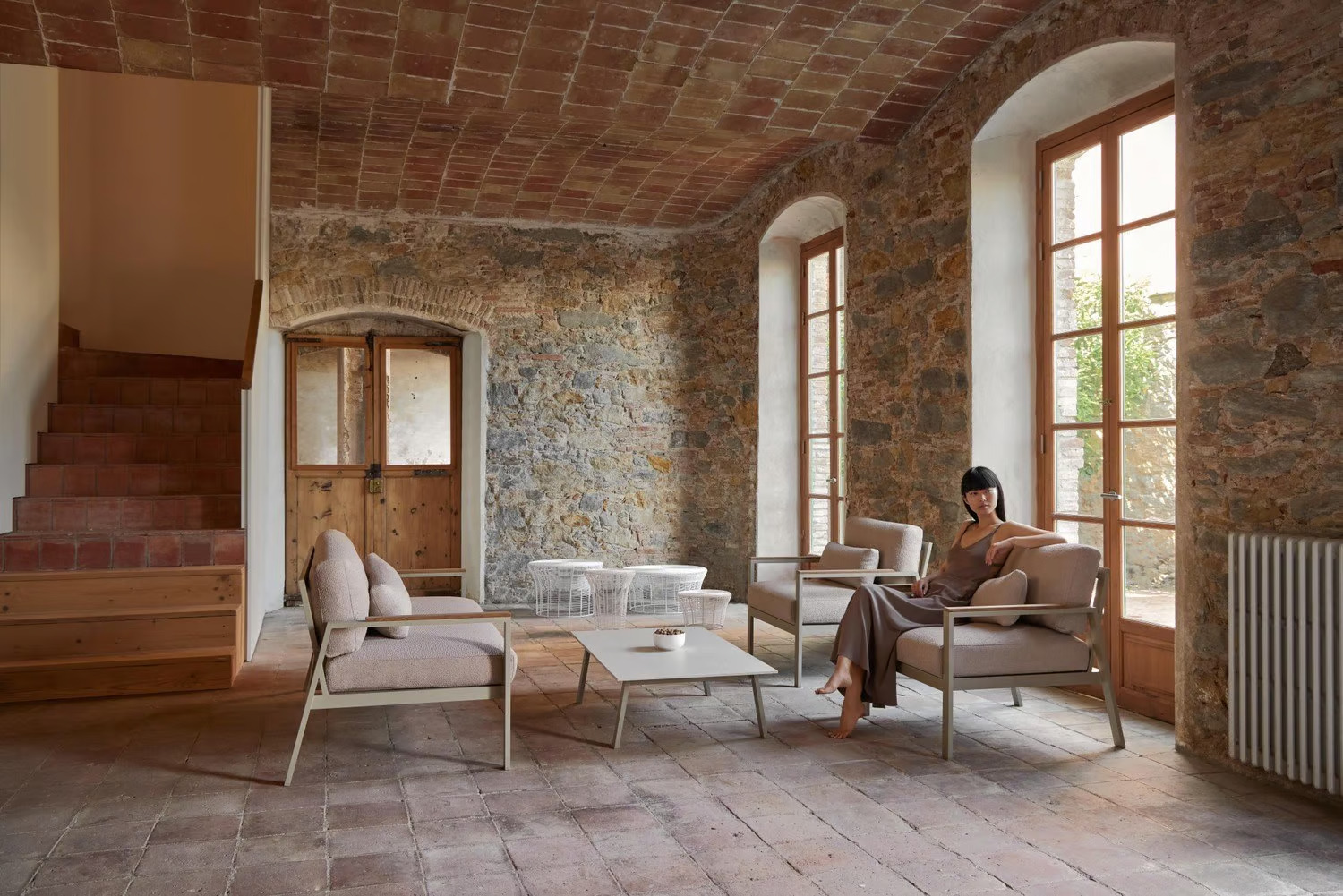 The ARAM low coffee table is crafted using a traditional Indian technique that involves weaving metal wires around a sturdy metal frame. This method creates a unique gradation effect as the spacing between the wires gradually widens. Constructed from thermo-lacquered stainless steel wire, each piece is handmade, ensuring its distinctiveness. Ideal for restaurants, conference rooms, coworking spaces, cafés, event venues, and educational institutions, this table complements modern design tables and durable seating arrangements. Available in a variety of colors, including white, agate grey, cement grey, sand, bronze, wine red, blue grey, grey blue, anthracite, and black, it seamlessly integrates with dining tables, café chairs, ergonomic chairs, and stackable chairs, enhancing the versatility of conference room furniture.