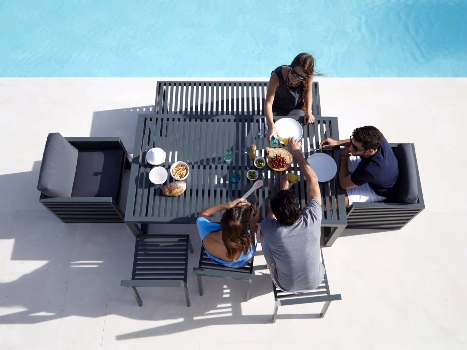 The DNA collection offers a sophisticated blend of modern lounge furniture, ideal for hotels, cafés, lounges, and waiting rooms. This range of luxury sofas and armchairs draws inspiration from the interplay of light and shadow seen in Mediterranean shutters and Japanese architectural aesthetics. Crafted from anodized or thermo-lacquered aluminum profiles, these pieces feature polyurethane foam rubber cushions enveloped in water-repellent fabric, ensuring durability and comfort. The removable fabric covers allow for easy maintenance and customization. Available in a variety of colors, including anodized, white, agate grey, and more, these modular sofas and upholstered armchairs provide comfortable seating solutions for both compact spaces and expansive interiors. The ergonomic design and custom upholstery options make them a versatile choice for residential interior designers seeking customizable sofa designs and modular sofas for offices.