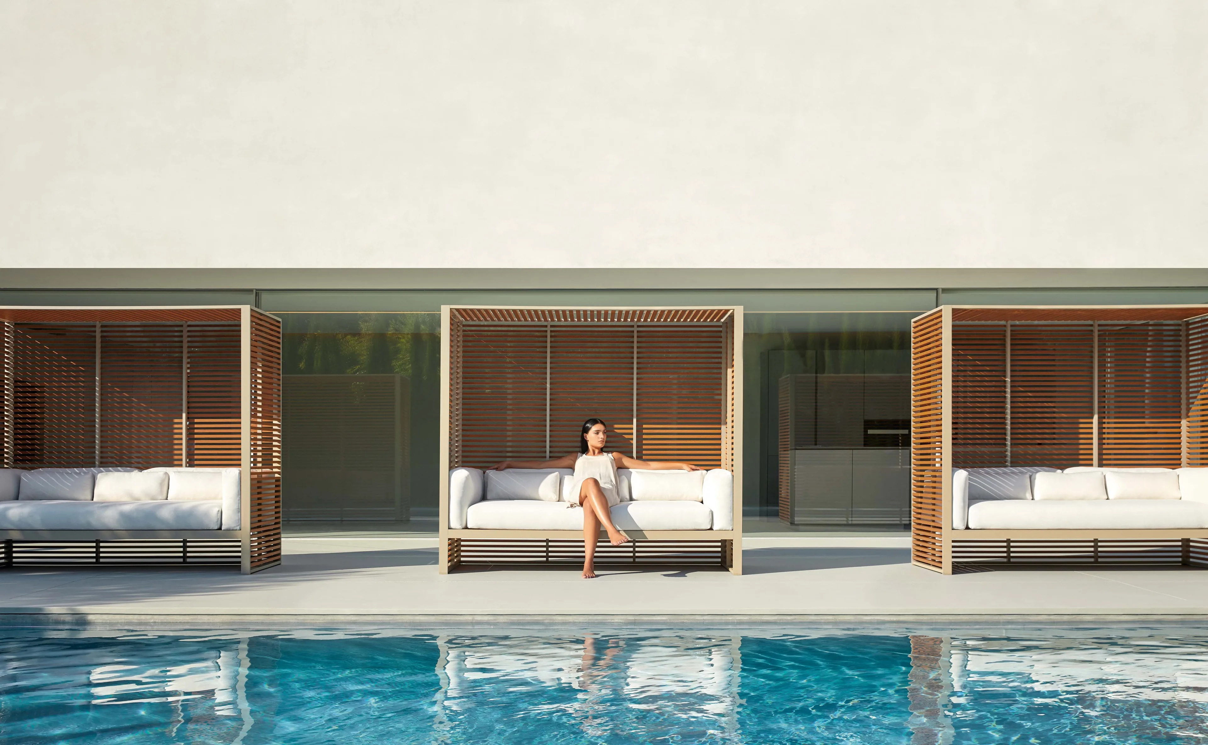 DNA AL FRESCO offers a sophisticated solution for outdoor spaces, ideal for resorts, cafés, restaurants, outdoor event planners, and beachside hotels. This collection features durable outdoor furniture crafted from anodized or thermo-lacquered aluminum profiles, ensuring longevity and resilience in various weather conditions. The all-weather chairs and modular outdoor seating are designed with polyurethane foam rubber, covered in water-repellent fabric, and come with removable covers for easy maintenance. The garden furniture sets are available in a range of colors, including anodized, white, agate grey, cement grey, sand, bronze, wine red, blue grey, and anthracite. Inspired by the interplay of light and shadow seen in Mediterranean shutters and Japanese architecture, this collection embodies a minimalist aesthetic, focusing on essential forms without unnecessary embellishments.