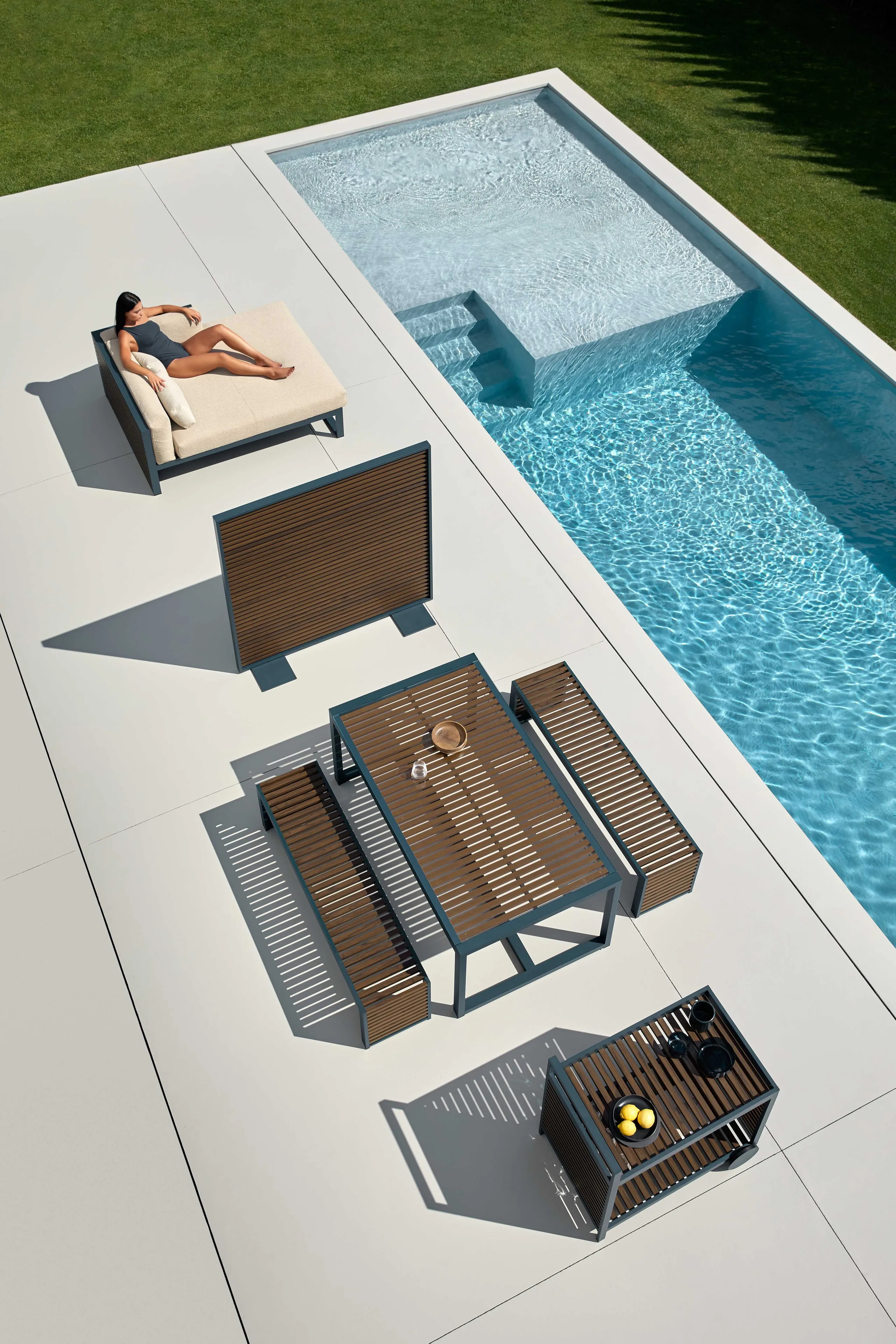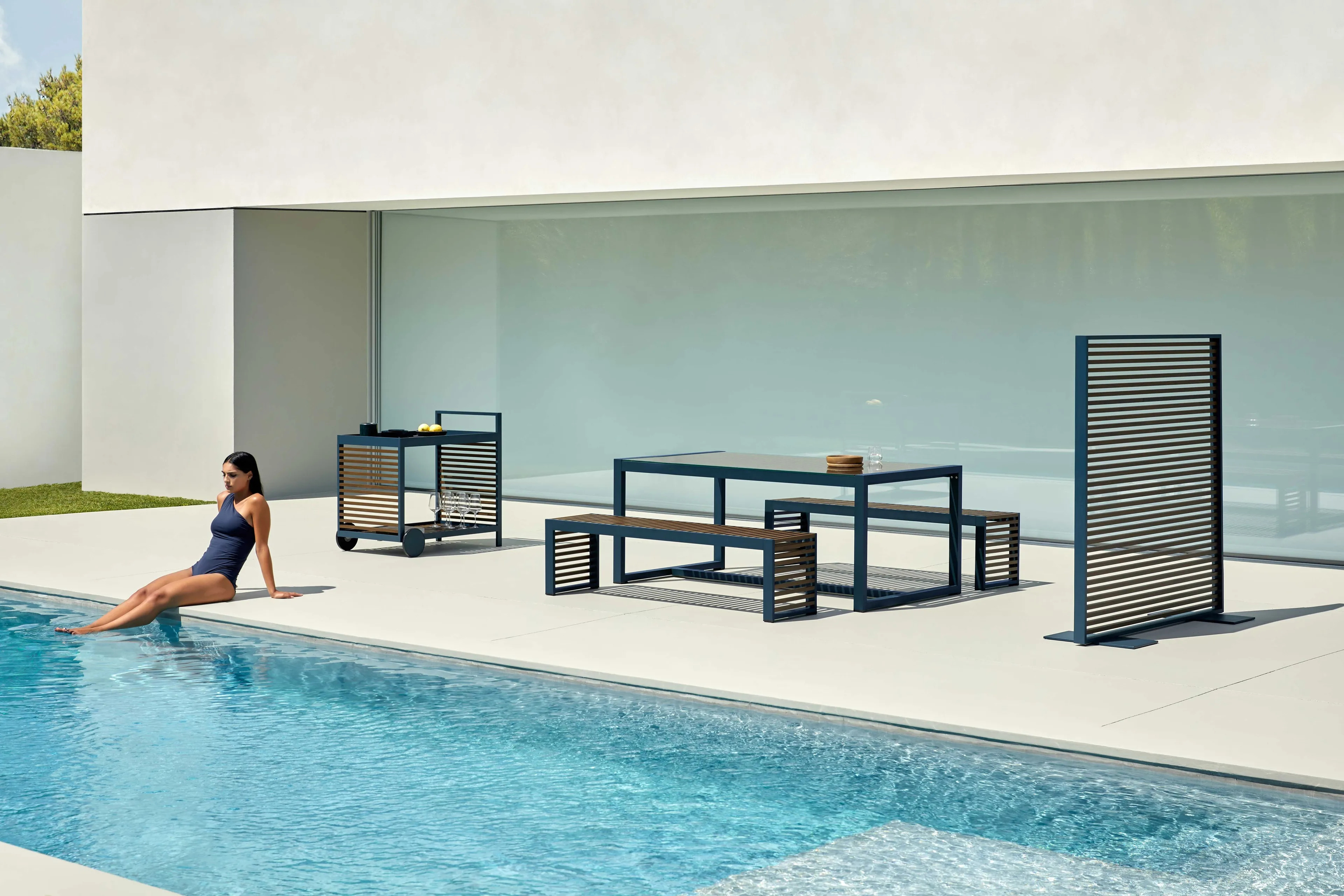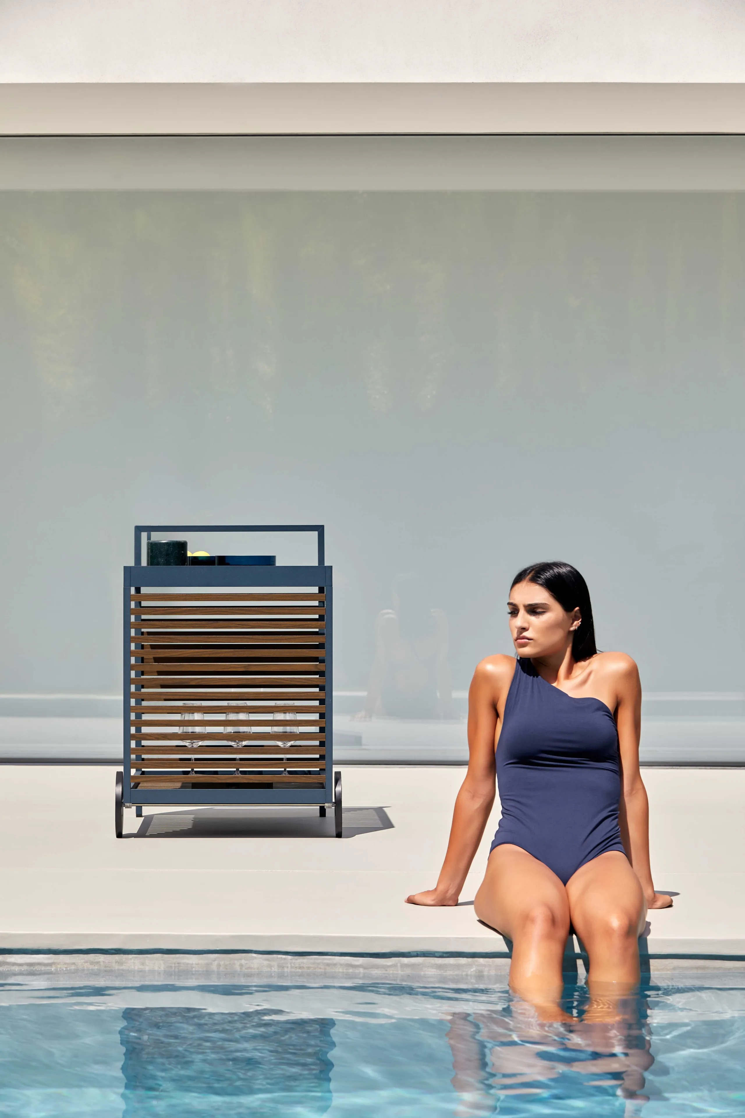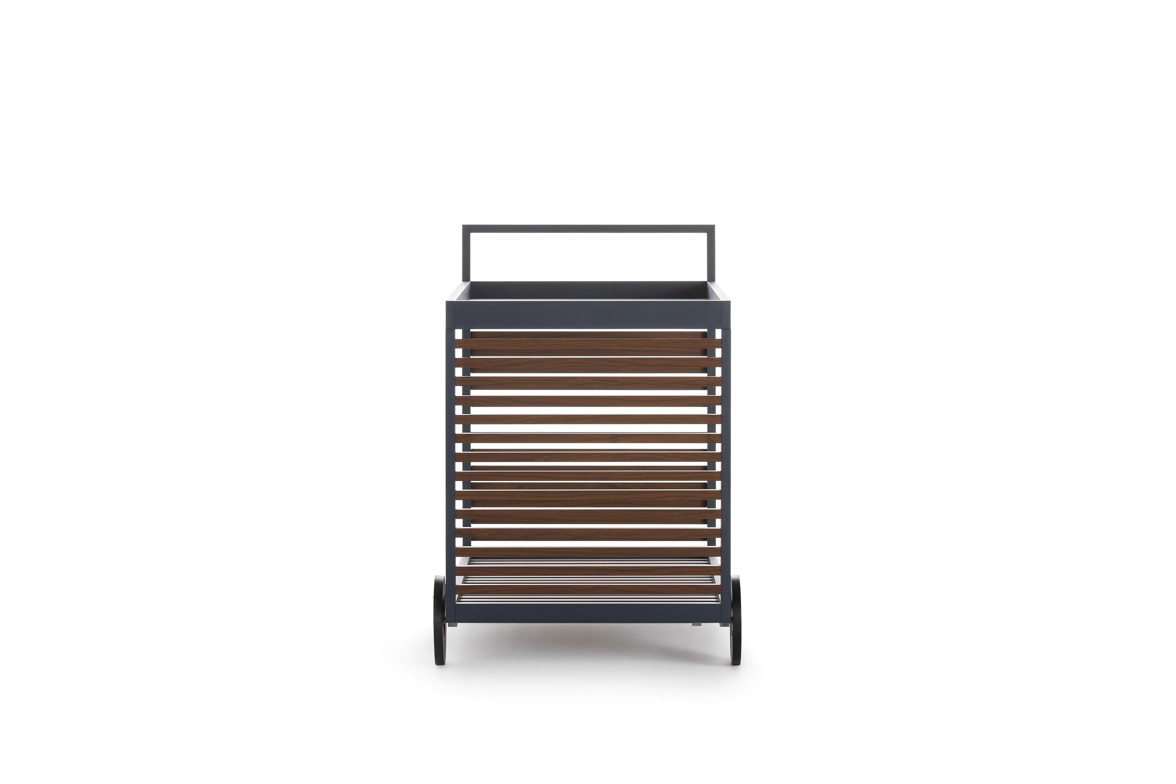 The DNA Food Trolley is a versatile modular storage unit designed for various environments, including offices, boutique shops, hotels, libraries, and coworking spaces. Drawing inspiration from the interplay of light and shadow seen in Mediterranean shutters and Japanese architectural aesthetics, this minimalist storage unit combines functionality with elegance. Constructed from durable anodized or thermo-lacquered aluminum profiles, it features polyurethane foam rubber covered with water-repellent fabric, ensuring longevity and resilience. The removable fabric cover adds convenience, while the color options—ranging from anodized and white to agate grey, cement grey, and more—offer a stylish complement to any setting. Ideal for space-saving storage systems, this piece serves as an efficient retail shelving solution, lockable office cabinet, or hotel room storage, seamlessly integrating into modern conference tables or compact café tables.