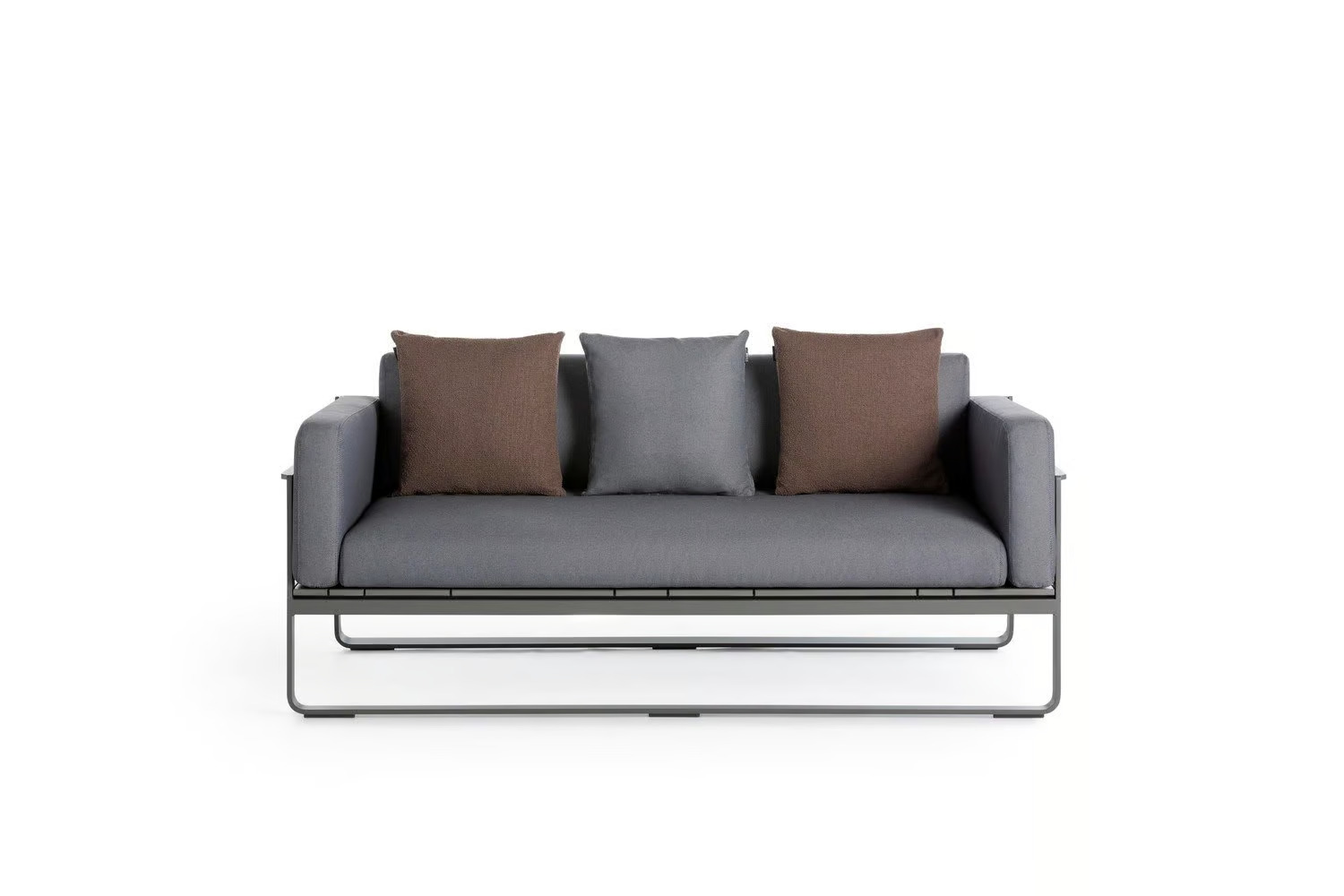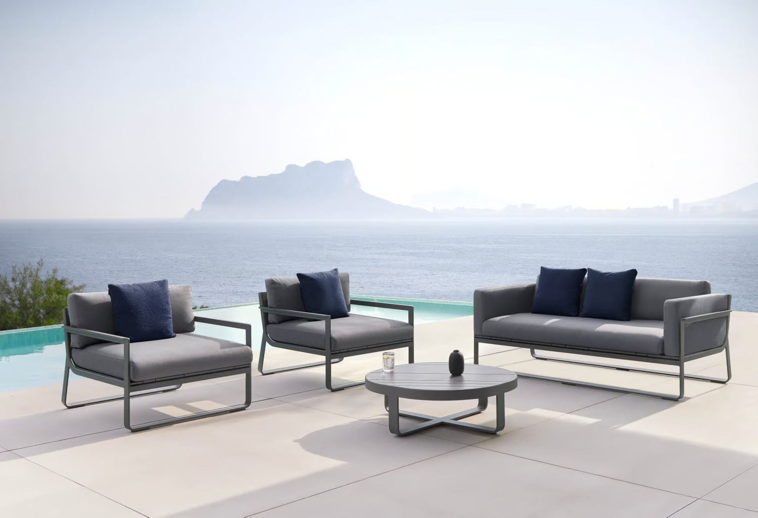 The FLAT collection offers a versatile range of modern lounge furniture, ideal for hotels, cafés, lounges, waiting rooms, and residential interior design projects. This collection features comfortable sofas and luxury armchairs with an ergonomic design, crafted from thermo-lacquered aluminum profiles and 100% recyclable polyethylene. The modular sofas and upholstered armchairs are designed for both style and functionality, with polyurethane foam rubber covered in water-repellent fabric. Custom upholstery options allow for personalized, customizable sofa designs, making them suitable for various settings, including compact furniture for small spaces. Available in a palette of colors such as white, agate grey, cement grey, sand, bronze, blue grey, and anthracite, the FLAT collection seamlessly integrates into any interior, providing comfortable seating solutions and luxury sofas and armchairs for diverse environments.