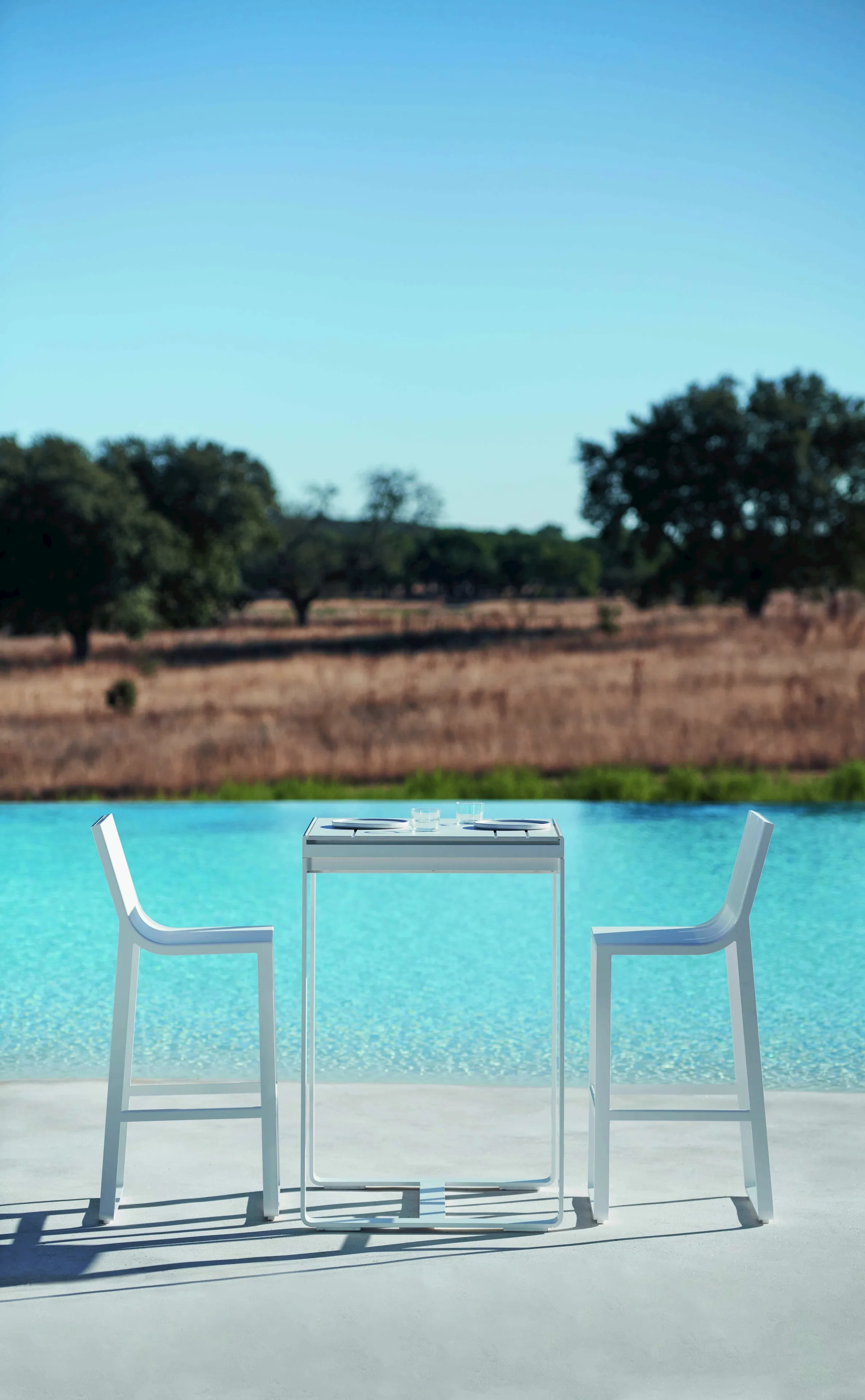 The FLAT collection, crafted for GANDIABLASCO, offers a versatile range of modern design tables and ergonomic chairs, ideal for restaurants, conference rooms, coworking spaces, cafés, event venues, and educational institutions. This collection features a balanced and adaptable design, characterized by its light and airy structure. Constructed from thermo-lacquered aluminum profiles and 100% recyclable polyethylene, the furniture ensures durability and sustainability. The seating includes polyurethane foam rubber, covered with water-repellent fabric, and removable covers for easy maintenance. Available in a variety of colors, including white, agate grey, cement grey, sand, bronze, blue grey, and anthracite, the collection provides options to suit diverse environments. The stackable chairs offer practical and durable seating solutions, making them a suitable choice for conference room furniture and dining tables in various settings.