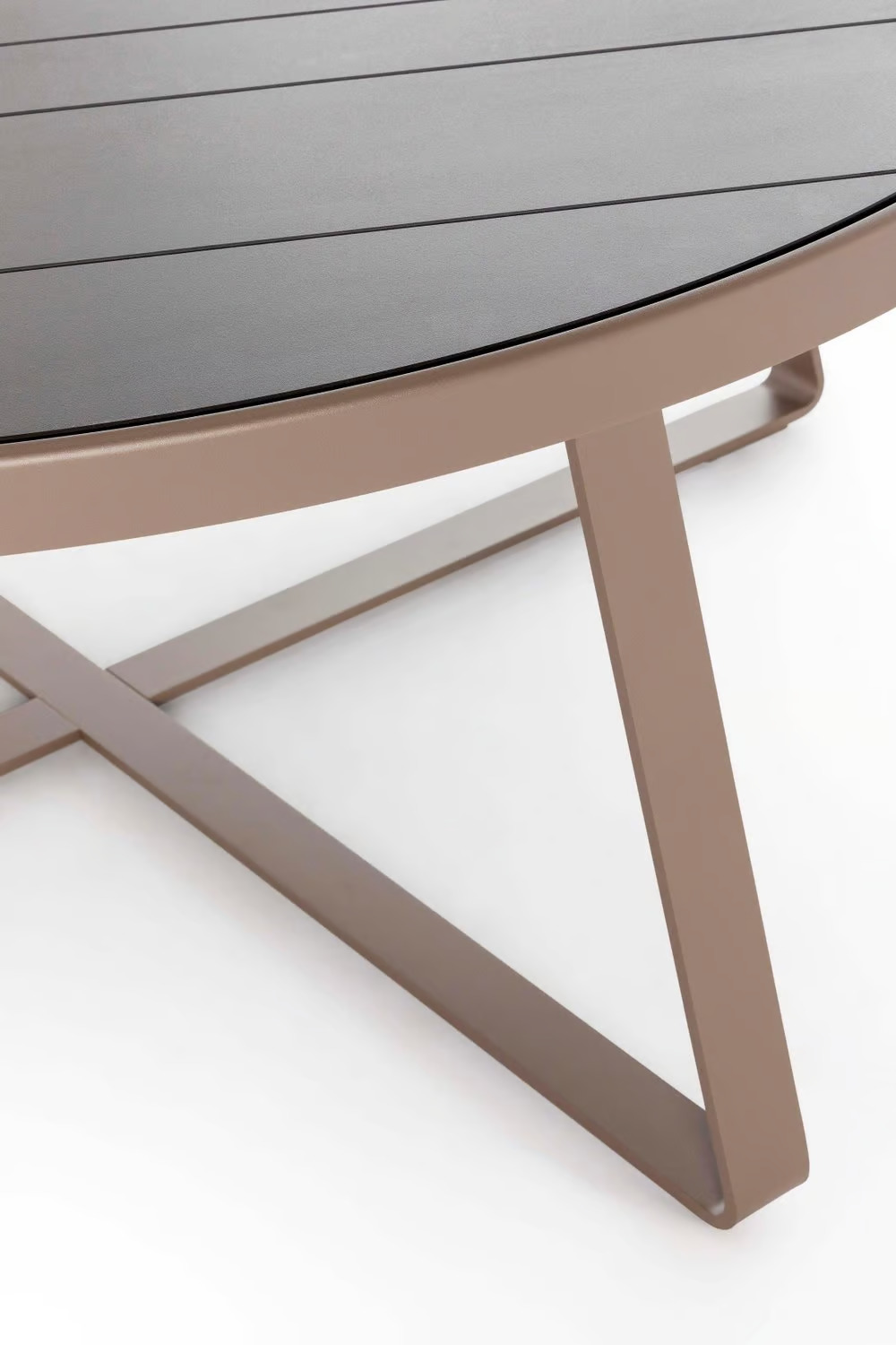 The FLAT Garden Table, part of a versatile outdoor furniture collection, is designed to meet the needs of restaurants, conference rooms, coworking spaces, cafés, event venues, and educational institutions. Crafted from thermo-lacquered aluminum profiles and 100% recyclable polyethylene, this table combines durability with a modern design. The polyurethane foam rubber is covered with water-repellent fabric, ensuring longevity and easy maintenance. Available in a range of colors, including white, agate grey, cement grey, sand, bronze, blue grey, and anthracite, the table tops are crafted from polyethylene, with the bronze option featuring a 12 mm thick ultra-compact Dekton surface. This collection offers a balanced and flexible solution for dining tables and conference room furniture, complementing ergonomic and stackable café chairs for a cohesive and functional seating arrangement.