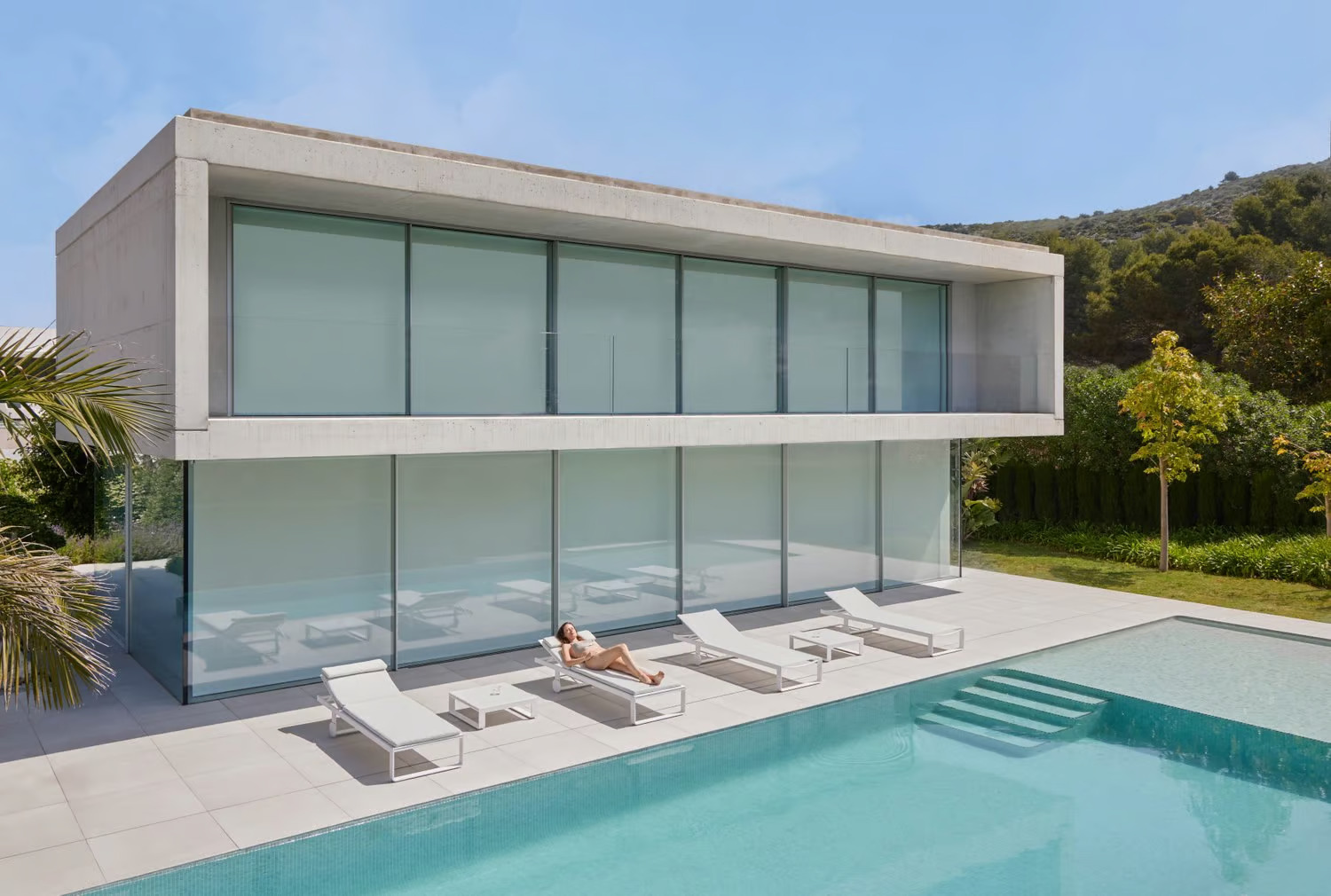 The FLAT TEXTIL Sun Lounger, part of the enduring FLAT collection by GANDIABLASCO, offers a sophisticated blend of design and functionality. Crafted from thermo-lacquered aluminum profiles and Batyline fabric, this piece exemplifies durable outdoor furniture, ideal for resorts, cafés, and beachside hotels. Its modular outdoor seating design ensures flexibility, while the lightweight structure provides comfort and ease of use. Available in a range of colors including white, agate grey, cement grey, sand, bronze, blue grey, and anthracite, it complements various garden furniture sets. This all-weather outdoor furniture is perfect for creating comfortable poolside loungers and durable patio chairs, making it a versatile choice for outdoor event planners and hospitality venues seeking reliable and stylish all-weather chairs.