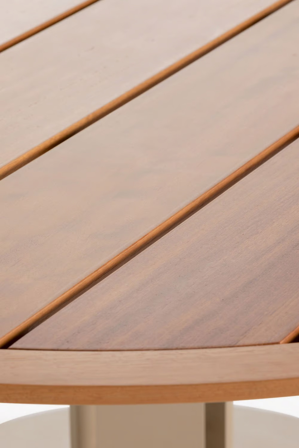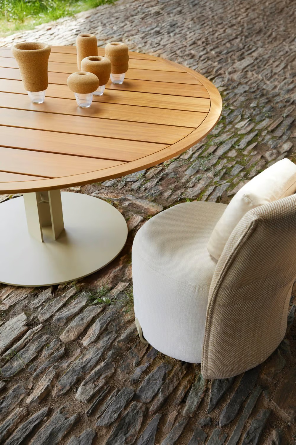 The ISLA collection, designed by Sebastian Herkner, offers a sophisticated range of modern design tables and ergonomic seating solutions ideal for restaurants, conference rooms, coworking spaces, cafés, event venues, and educational institutions. Crafted with a steel frame and an iroko wood tabletop, these dining tables are both durable and elegant, suitable for outdoor settings. The collection's café chairs are stackable, providing practical and space-saving options for various environments. ISLA's modular design allows for versatile configurations, with three distinct modules—Menorca, Gomera, and Arosa—available in seven unique color combinations: Coral, Sand, Shell, Blue, Green, Silver, and Garnet. This adaptability ensures that the furniture seamlessly integrates into diverse spaces, offering both functionality and aesthetic appeal.