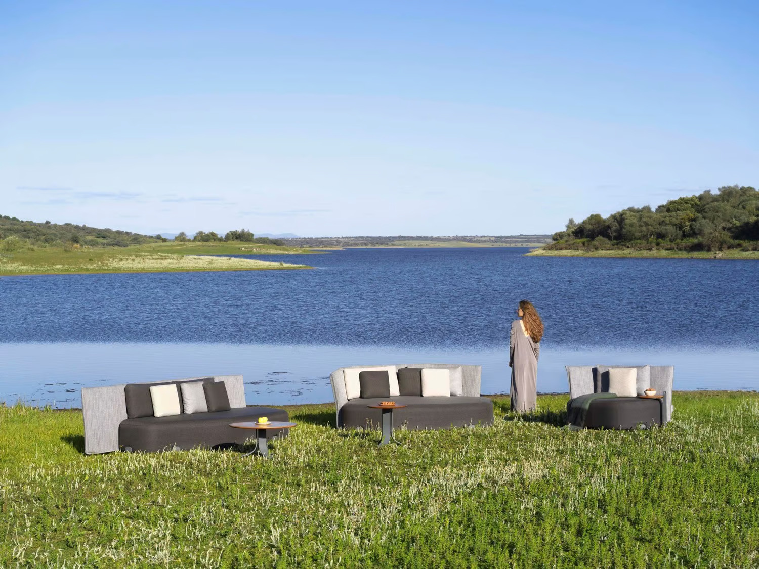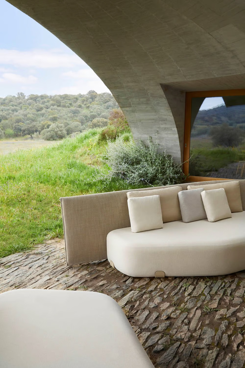 ISLA GOMERA, designed by Sebastian Herkner for GAN, is a sophisticated addition to any outdoor setting. This modular outdoor seating collection features three distinct modules—Menorca, Gomera, and Arosa—that can be arranged independently or combined to suit various spaces. Available in seven color combinations, including Coral, Sand, and Blue, these durable patio chairs and garden furniture sets are crafted with a powder-coated aluminum frame and technical upholstery, ensuring they are all-weather outdoor furniture. The seats and backrests are filled with 100% dry fast foam rubber, while the cushions contain polyester fiber and chopped memory foam, offering comfort and resilience. Ideal for resorts, cafés, and beachside hotels, ISLA GOMERA provides versatile and durable outdoor furniture solutions.