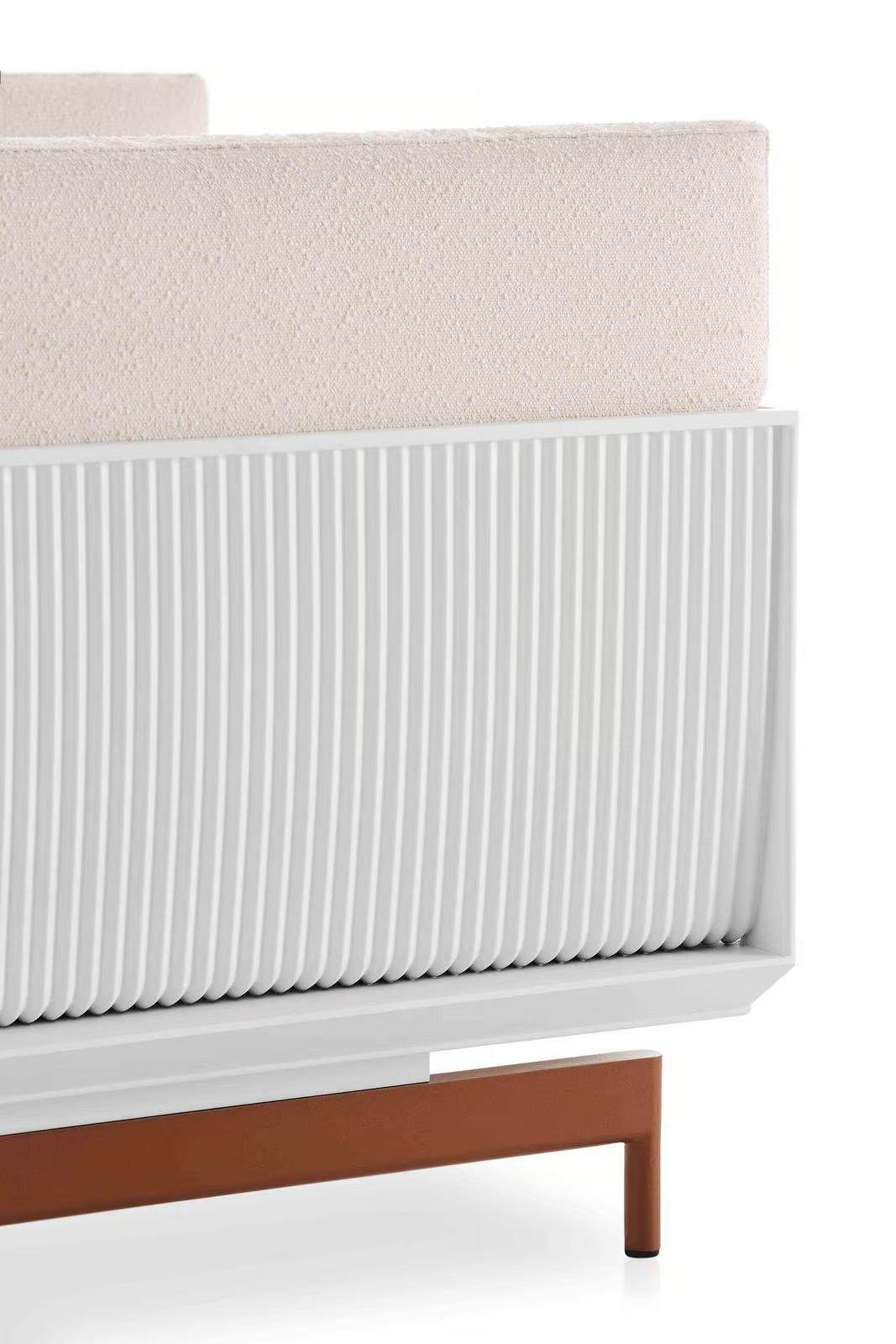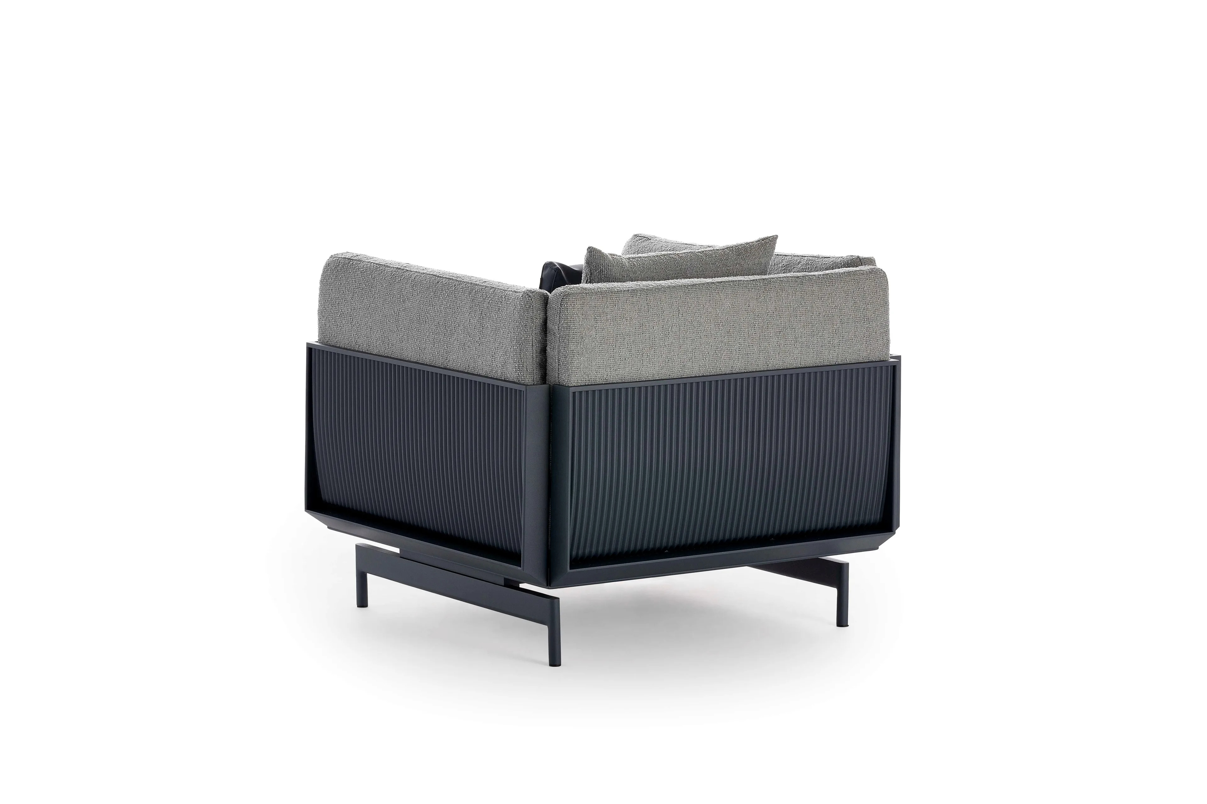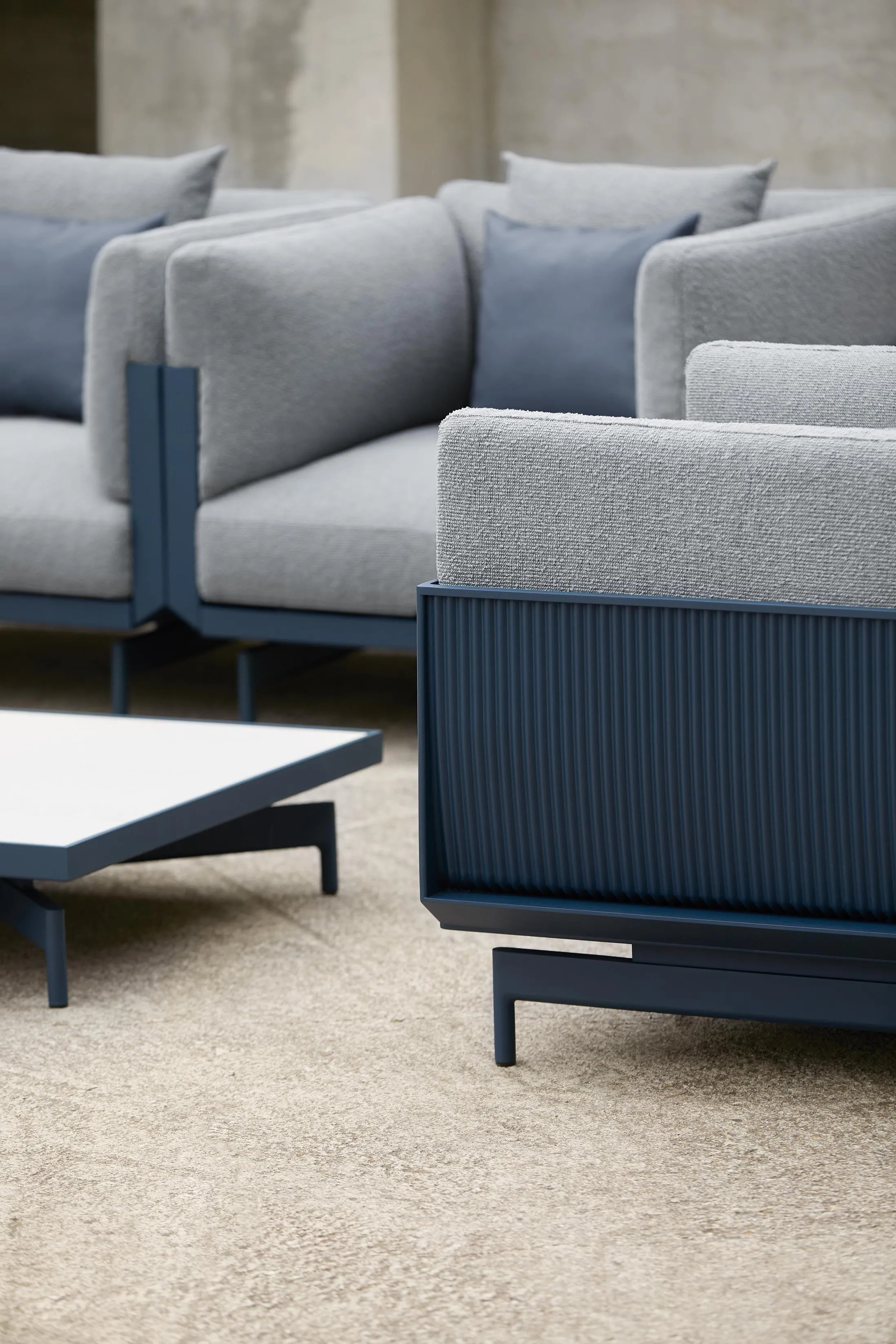 The ONDE Garden Armchair combines fabric and thermo-lacquered aluminum to create a versatile seating solution. Designed with the evolving outdoor furniture market in mind, this piece offers flexibility and adaptability, making it ideal for resorts, cafés, restaurants, and beachside hotels. Its modular design allows for seamless integration into various garden furniture sets, providing durable outdoor furniture options that withstand all weather conditions. The armchair's construction ensures it functions as both a comfortable poolside lounger and a durable patio chair. Its aesthetic complements both outdoor and interior spaces, offering a cohesive look for any setting. This all-weather outdoor furniture piece is crafted to meet the demands of high-traffic environments, ensuring longevity and style.