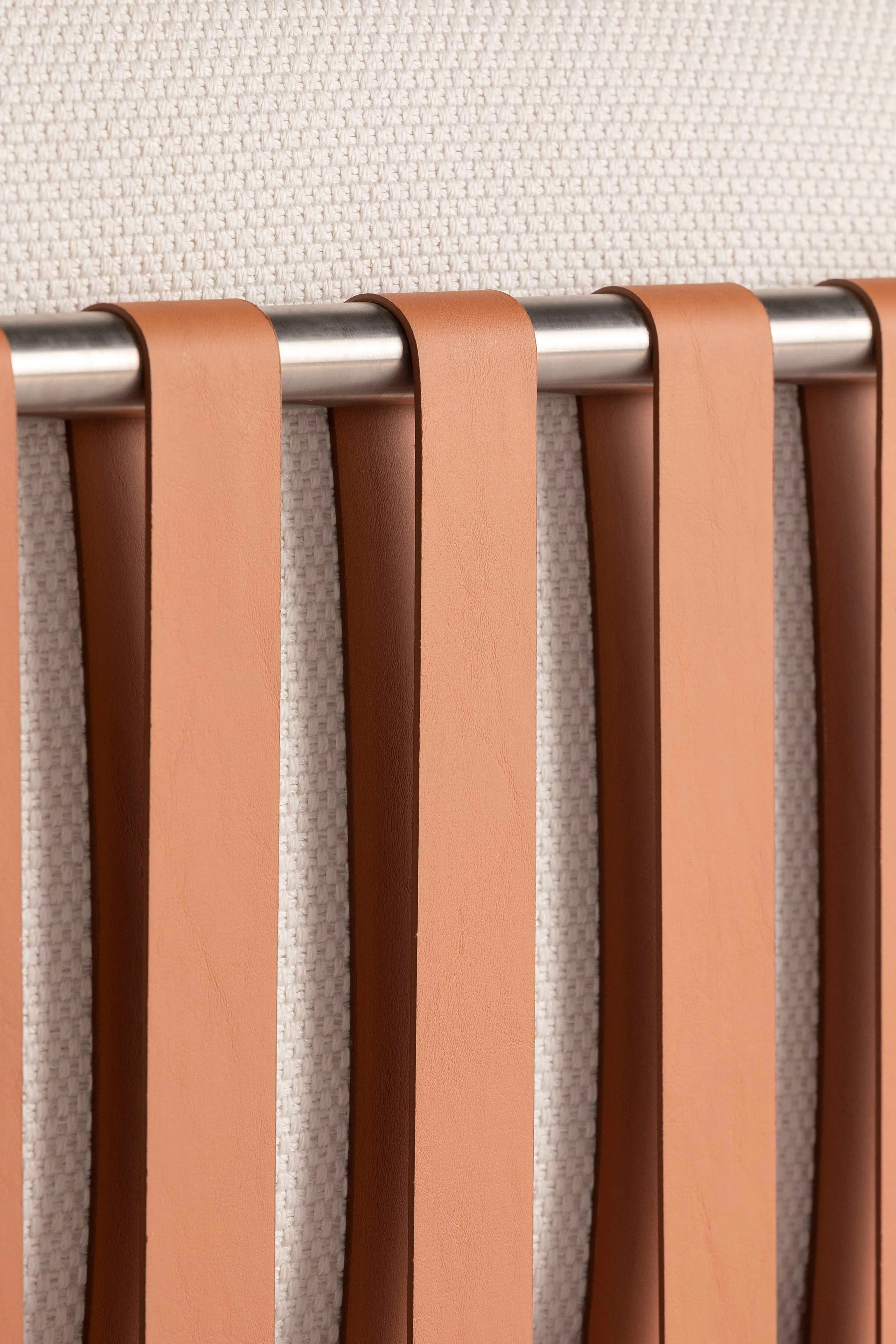 The ONSEN 6 collection, crafted by Francesco Meda and David Quincoces in collaboration with GANDIABLASCO, embodies a blend of timeless design and modern innovation. This range of durable outdoor furniture includes dining club armchairs, sofas, lounge chairs, modular sofas, and various low tables. Each piece is crafted from a harmonious mix of stainless steel, elastic straps, aluminum sheets, and teak, ensuring all-weather durability and aesthetic appeal. The collection's geometric and generous lines offer versatility, making it suitable for both relaxed and formal settings. A distinctive feature is the use of interlaced leather straps on a stainless steel frame, providing both visual and structural integrity. The ONSEN 6 collection is ideal for resorts, cafés, restaurants, outdoor event planners, and beachside hotels seeking comfortable poolside loungers and modular outdoor seating.