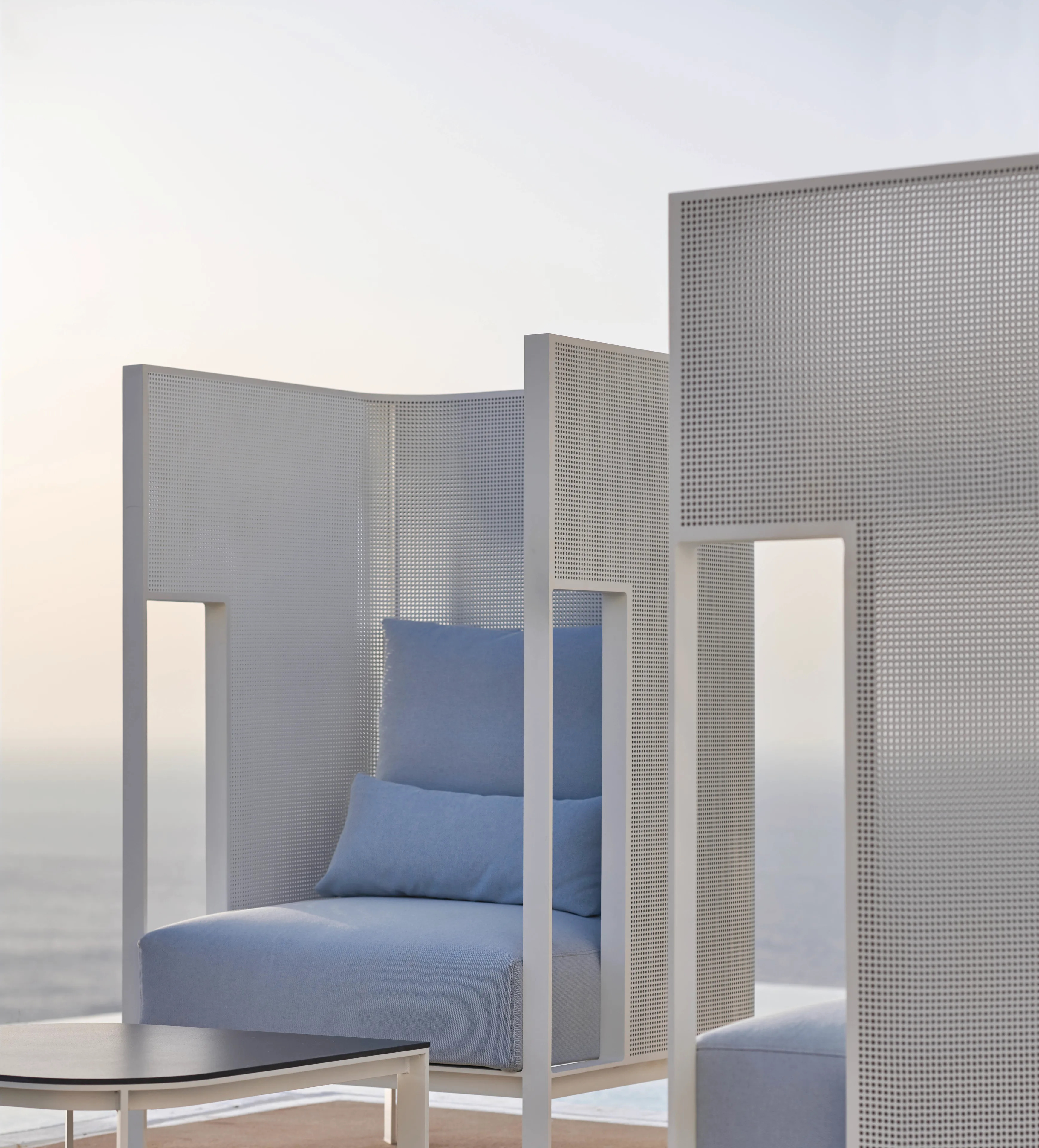 SOLANAS, a collection by GANDIABLASCO, is crafted with the aesthetic vision of Argentinean architect Daniel Germani, inspired by the serene landscapes of Solanas beach in Uruguay. This range of modern lounge furniture is designed for hotels, cafés, lounges, and waiting rooms, offering comfortable seating solutions with its luxury sofas and armchairs. The ergonomic design features thermo-lacquered welded aluminum profiles and Dekton® surfaces, ensuring durability and style. Upholstered armchairs and modular sofas provide customizable seating options, ideal for both residential interior designers and commercial spaces. The collection includes compact furniture suitable for small areas, with custom upholstery available in a variety of colors such as white, agate grey, and bottle green. The removable fabric covers, made from water-repellent materials, enhance the practicality of these luxury sofas and armchairs, making them a versatile choice for any setting.