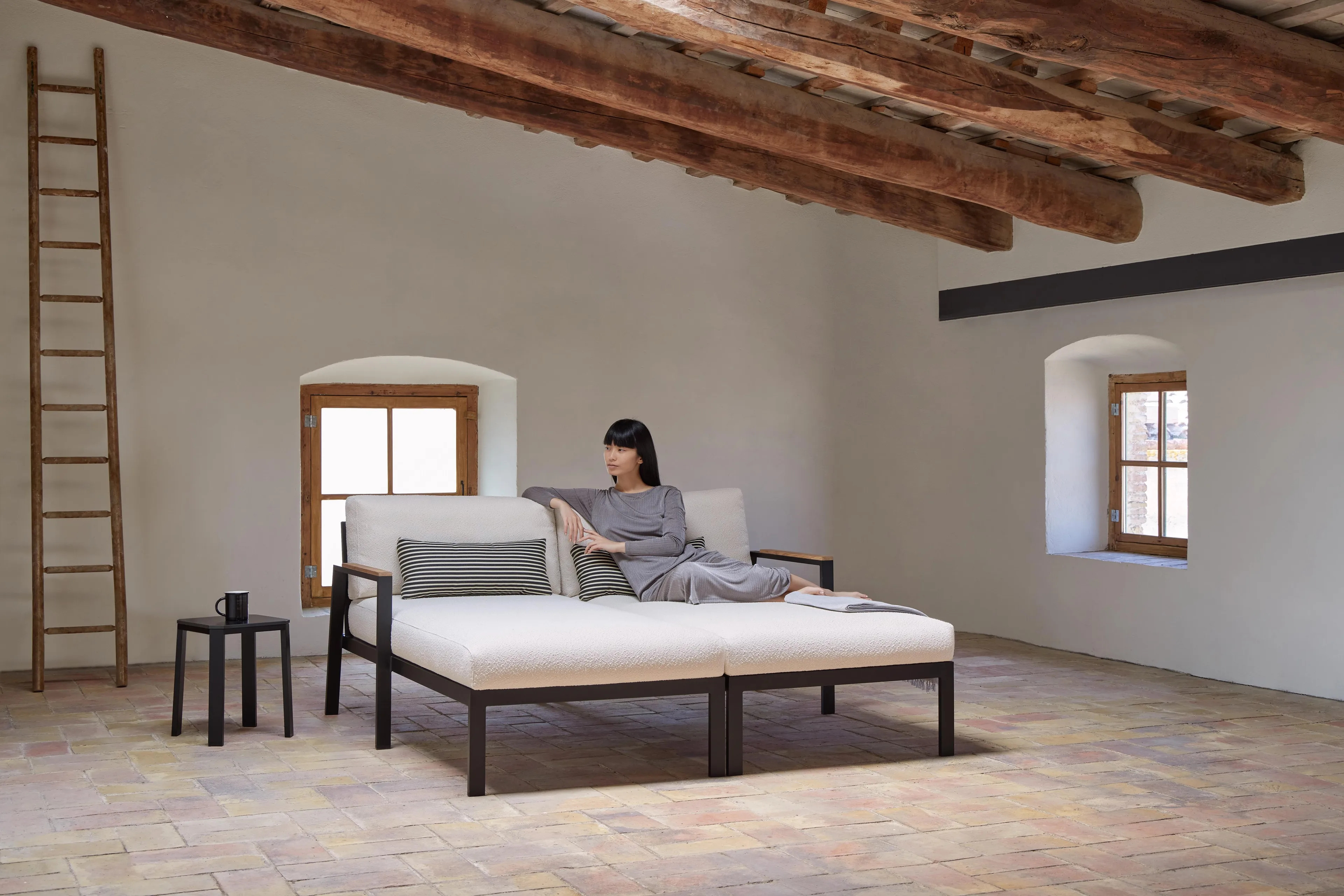 TIMELESS 2 offers a sophisticated blend of modern lounge furniture, ideal for hotels, cafés, lounges, and waiting rooms. This collection, crafted by José A. Gandía-Blasco Canales and Borja García, draws inspiration from early 20th-century architectural design, emphasizing clean lines and understated elegance. The ergonomic design ensures comfortable seating solutions, with modular sofas and luxury armchairs that adapt to various spaces, including compact areas. Constructed from thermo-lacquered welded aluminum profiles, teak wood, and phenolic plate or Dekton®, each piece is designed for durability and style. Upholstered armchairs and sofas feature polyurethane foam rubber covered with water-repellent fabric, complemented by removable fabric covers. Custom upholstery options are available in a range of colors, including white, agate grey, and anthracite, allowing for customizable sofa designs that suit any interior.