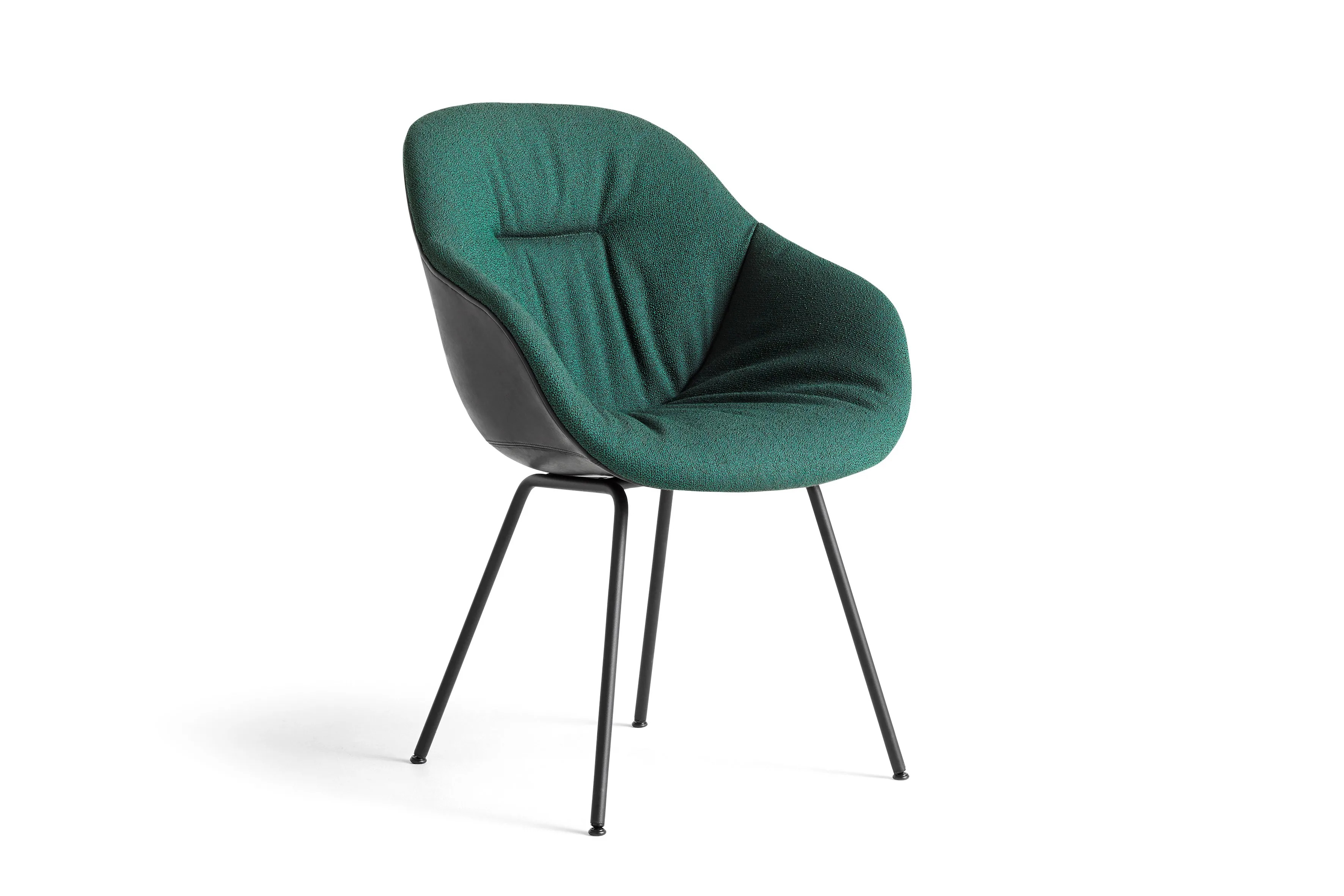 The AAC 127 Soft Duo combines a quilted shell with contrasting materials and a sleek four-legged steel frame, offering a modern design suitable for dining tables and café settings. Its high backrest and spacious seat ensure comfort, while the slightly outward-slanting legs provide durable seating and stability. The base, crafted from Ø18 mm bent steel tube, is available in chrome or black powder-coated finishes. The shell, made from 10 mm injection-molded polypropylene with 10% glass fiber, is fully upholstered with a choice of two textiles or leathers, making it ideal for conference room furniture and educational institutions. The chair features 15 mm cut foam, 15 mm super soft cut foam, and 40 mm wadding for added comfort. Available in a range of standard fabrics and leathers, this ergonomic and stackable chair is designed for versatile use in various environments.
