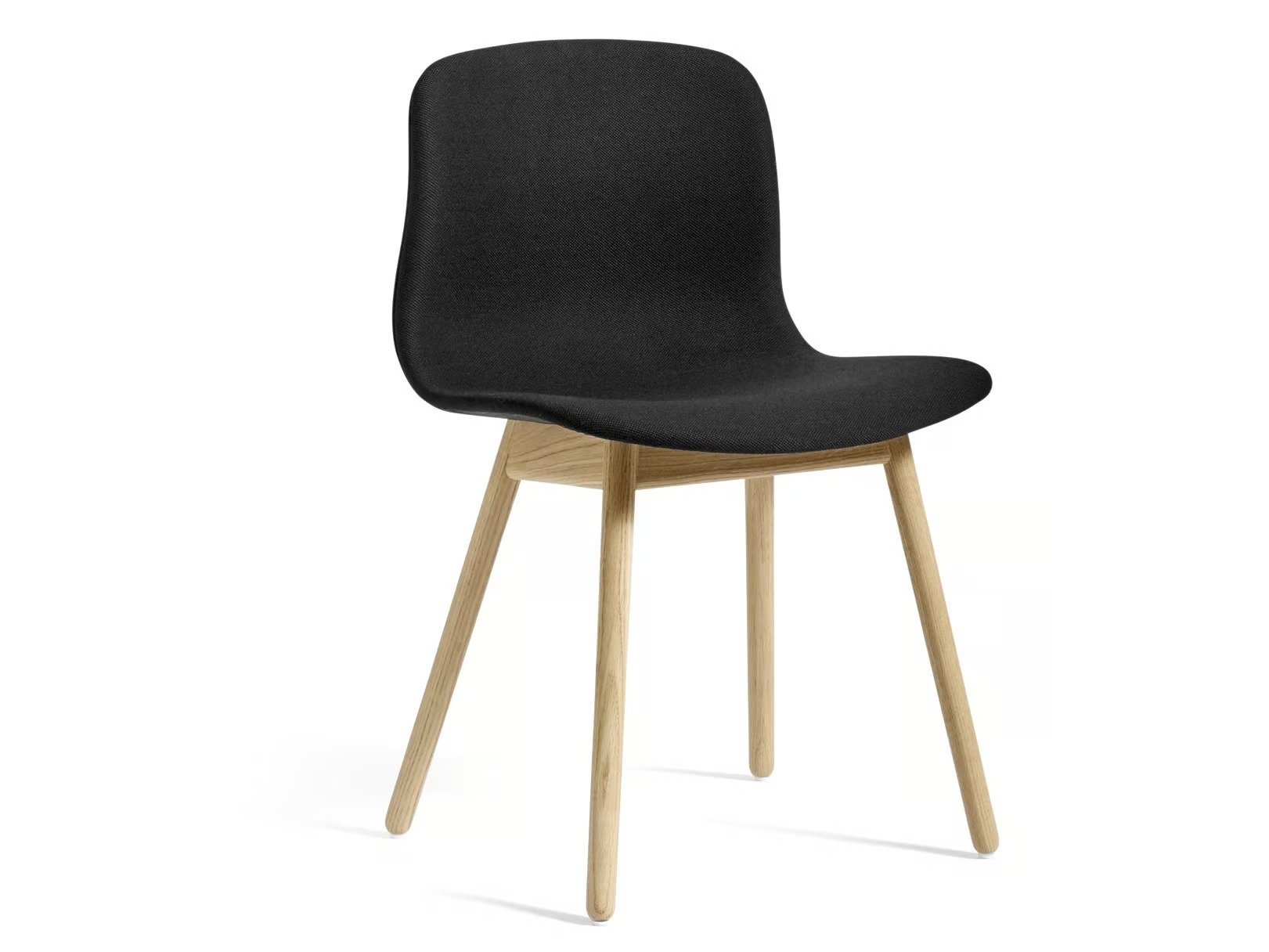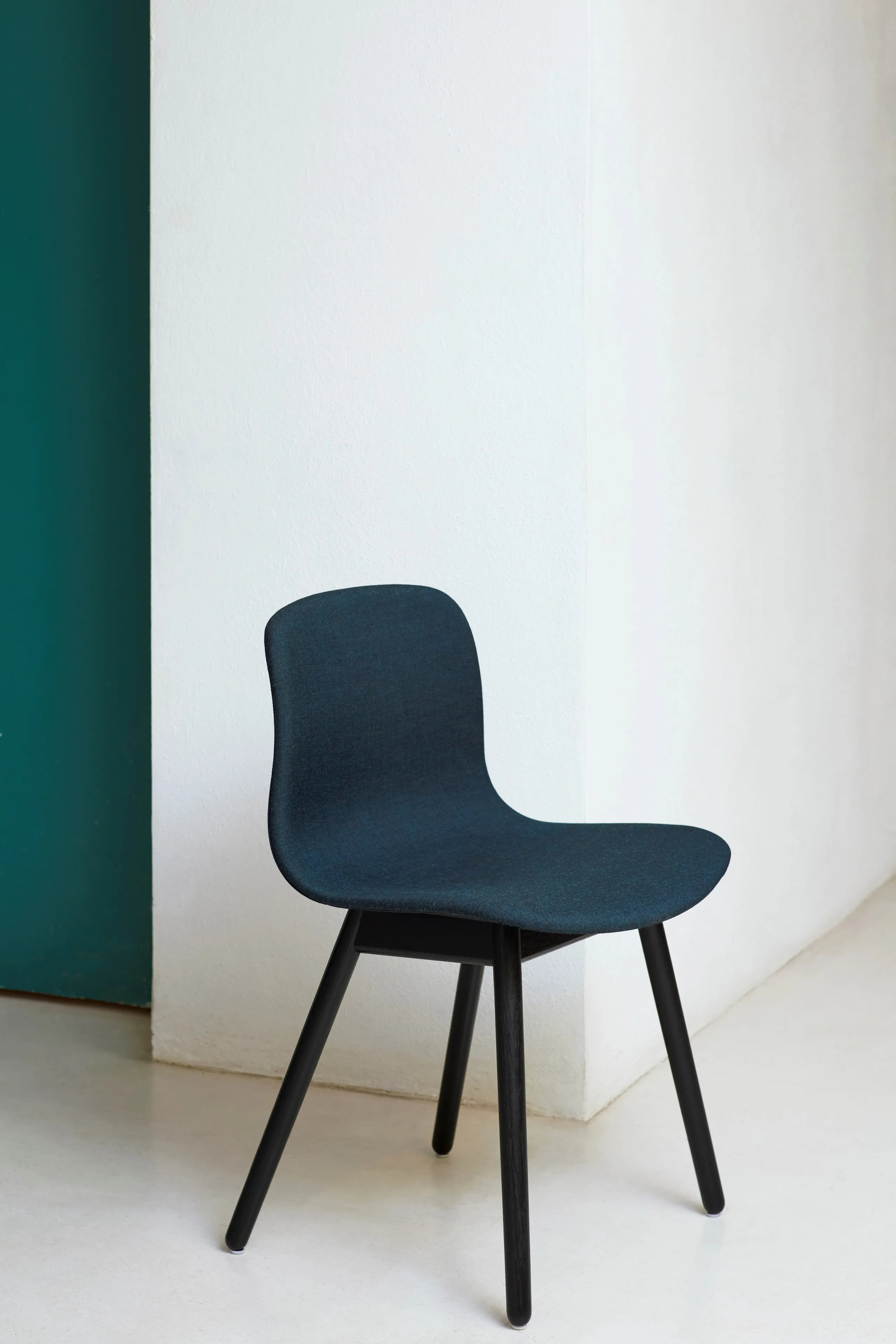 The About A Chair AAC 13 features a sleek, open shell design with a symmetrical solid base, offering a minimalist aesthetic that complements various settings. Its armless structure creates a streamlined silhouette, while the contoured back ensures ergonomic support. Crafted with a wooden frame and rounded legs, this chair exudes warmth and character, providing durability and stability for long-term use. The injection-molded polypropylene shell, fully upholstered, is available in a variety of fabrics and leathers, allowing customization to suit different environments. The solid wood base comes in four finishes: clear lacquered, soaped, black stained (RAL 9005), and matt lacquered oak. Ideal for dining tables, café settings, conference rooms, and educational institutions, this stackable chair seamlessly integrates into modern design tables and durable seating arrangements.