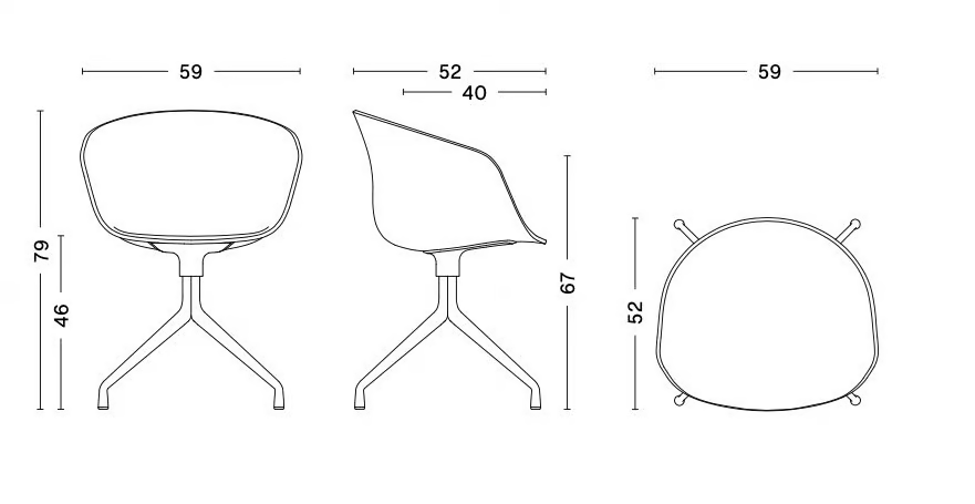 The About A Chair AAC 21 is designed with a steel swivel base, offering a more formal aesthetic compared to its wooden-legged counterparts. Its distinctive curved shell creates a seamless silhouette, supported by elegant legs that extend from a central base. The cast aluminum swivel base is available in polished or powder-coated finishes, while the polypropylene shell offers diverse upholstery options, providing numerous design combinations. This chair features an injection-molded polypropylene seat with armrests and full upholstery, with a shell thickness of 10 mm polypropylene and 10 mm foam. The 4-star swivel base is crafted from cast aluminum and comes in three finishes: black powder-coated aluminum (RAL 9005), white powder-coated aluminum (RAL 9003), and polished aluminum. Ideal for dining tables, café settings, and conference rooms, this chair offers durable and ergonomic seating solutions.