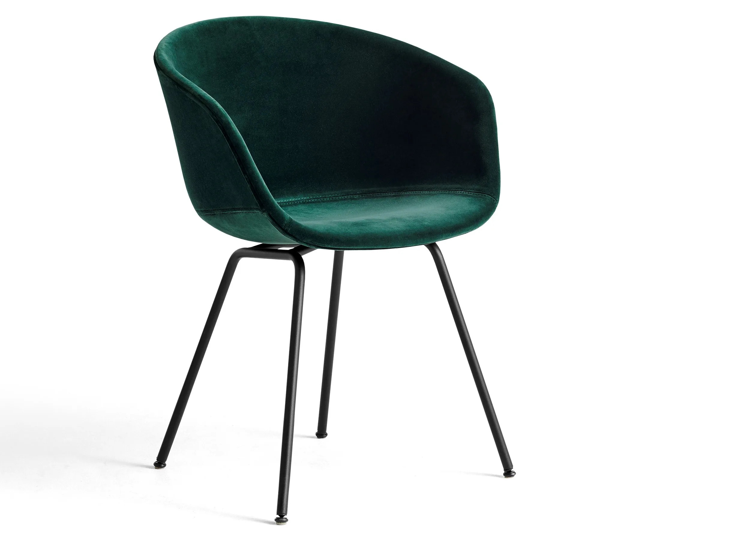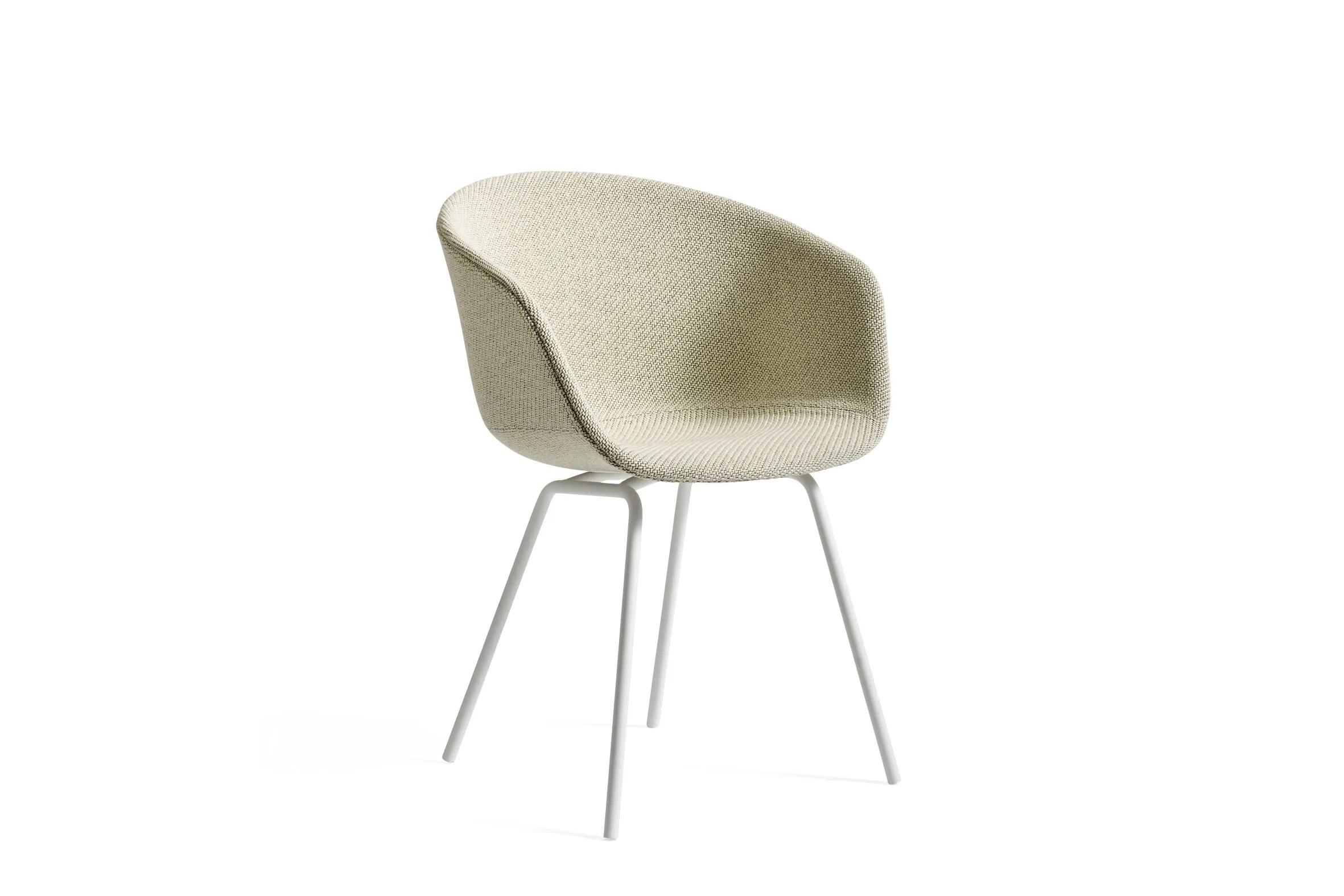 The ABOUT A CHAIR AAC27 is designed with functional simplicity, ideal for diverse environments such as restaurants, conference rooms, and educational institutions. Its solid shell features a curved back and integrated armrests, crafted from fully upholstered polypropylene, ensuring comfort and a seamless silhouette. The four-legged base, made from bent steel tubes, enhances its minimalist appeal and guarantees durability, making it suitable for dining tables and café settings. This versatile chair is available in a variety of textiles and base finishes, allowing for numerous design combinations. The shell is injection-molded with a 10 mm thickness, complemented by 10 mm foam, and the base is constructed from Ø18 mm steel tubes. Choose from black, white powder-coated, or chromed steel finishes to match your modern design tables and conference room furniture needs.