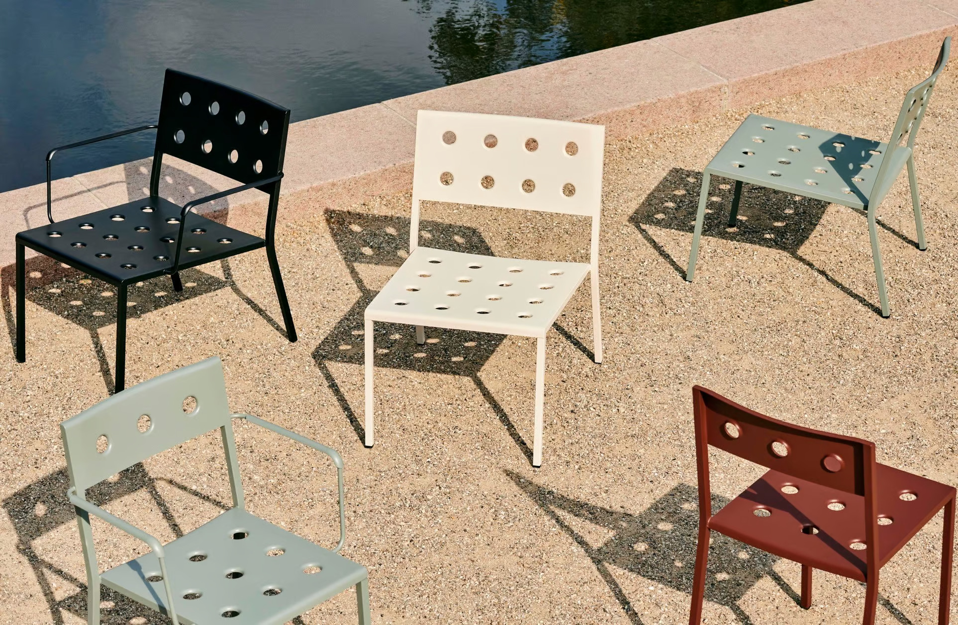 The Balcony collection, crafted by Ronan & Erwan Bouroullec for HAY, offers a versatile seating solution ideal for hotels, cafés, lounges, and waiting rooms. This modern lounge furniture features a minimalist design with distinctive perforations that enhance both the aesthetic and structural integrity of the seat and back. Constructed from powder-coated steel with an outdoor primer, these pieces ensure durability and strength. The stackable design makes them a practical choice for compact spaces, while the customizable sofa designs and luxury armchairs provide ergonomic comfort. Available in five finishes—Anthracite, Iron Red, Desert Green, Dark Forest, and Chalk Beige—these modular sofas and upholstered armchairs can be tailored to suit various interior styles. Perfect for creating comfortable seating arrangements in both small and expansive areas.