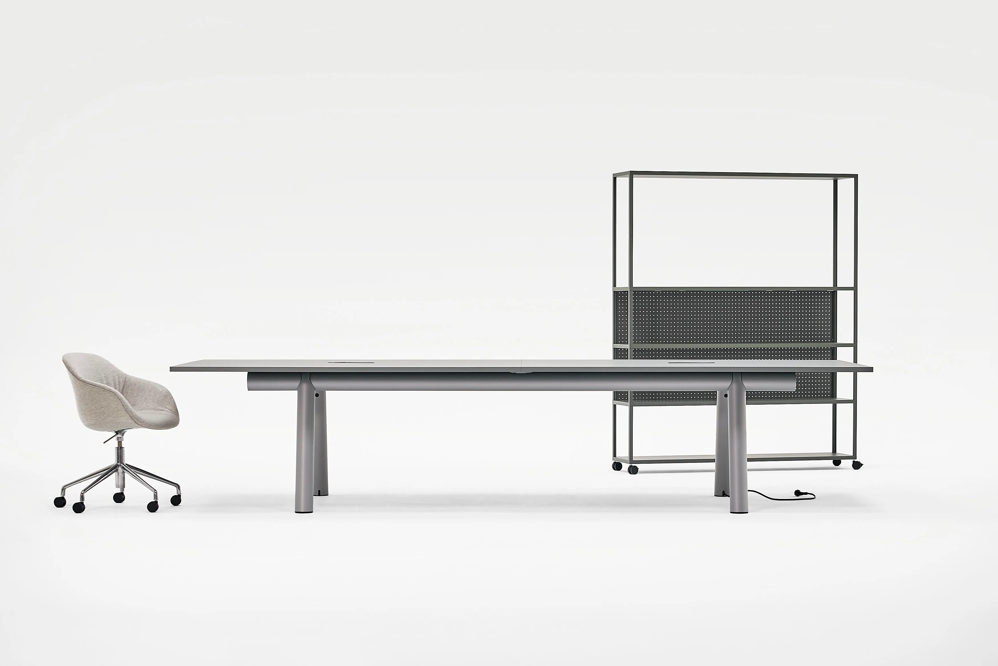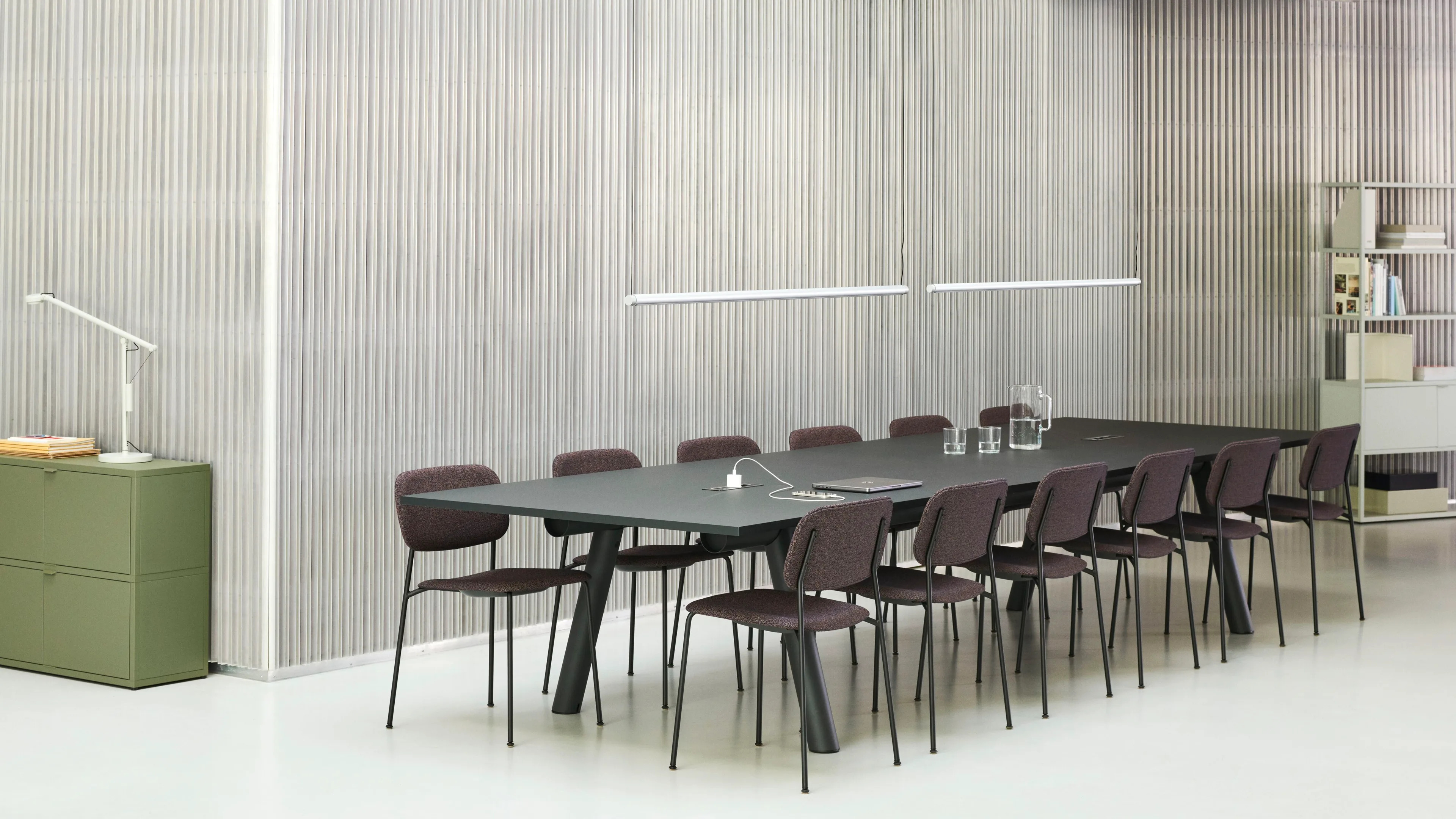 Inspired by the traditional Japanese bamboo craftsmanship, the Boa Table by Stefan Diez reimagines the modern meeting room table. Crafted with sustainability in mind, its tubular frame is constructed from Hydro CIRCAL aluminium, composed of at least 75% recycled post-consumer scrap, and extruded in Denmark using renewable energy. This innovative folding technique transforms the aluminium into flexible profiles, allowing for easy assembly and mobility. The table's flat-packed design ensures it is lightweight yet durable, making it ideal for various professional settings. Customisable tabletops are available in materials such as linoleum, laminate, wood, or glass, catering to diverse style and space needs. Offered in multiple colours and sizes, the frames can be enhanced with power supply and cable storage options, making it a versatile choice for comfortable meeting room chairs, reception area furniture, and modern waiting room seating.
