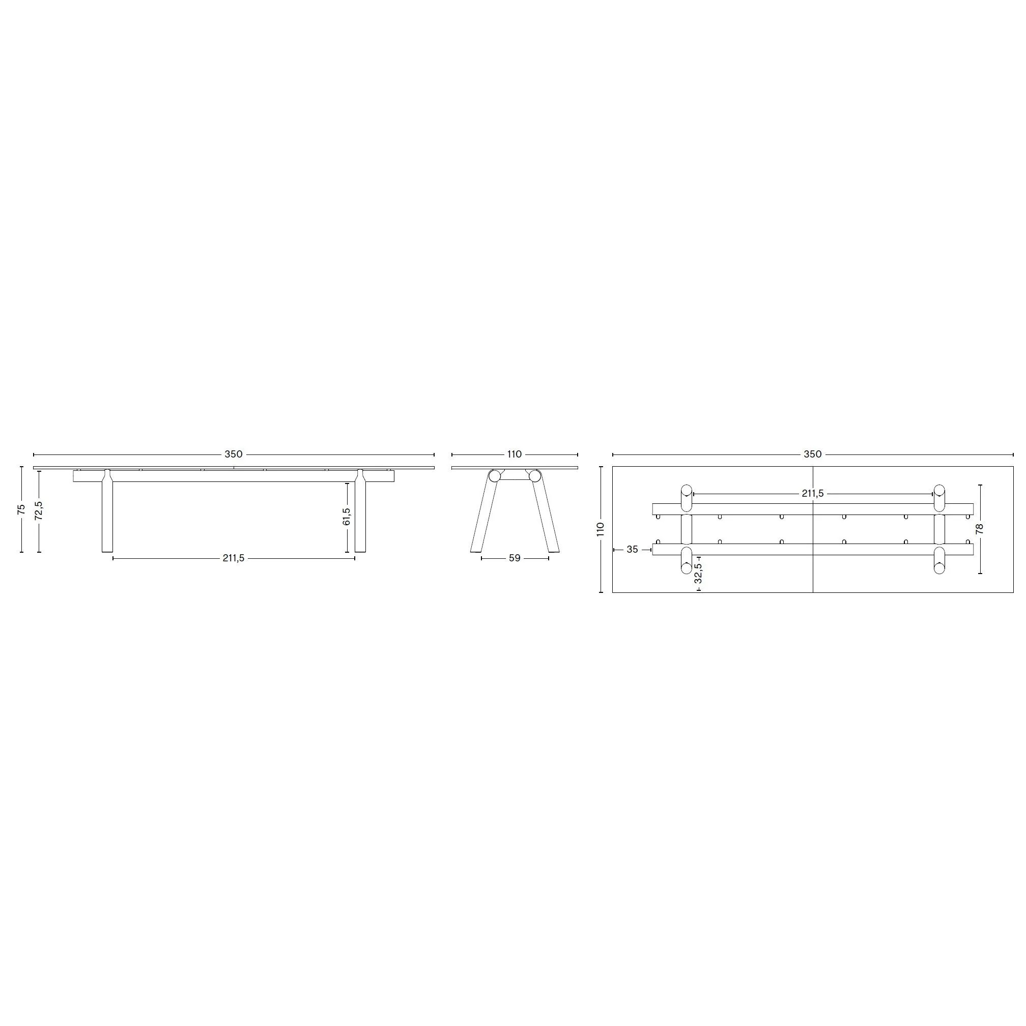 <p>220 x 110 x H 75 cm<br>280 x 110 x H 75 cm<br>280 x 128 x H 75 cm<br>350 x 110 x H 75 cm<br>350 x 128 x H 75 cm<br>420 x 110 x H 75 cm<br>420 x 128 x H 75 cm</p>