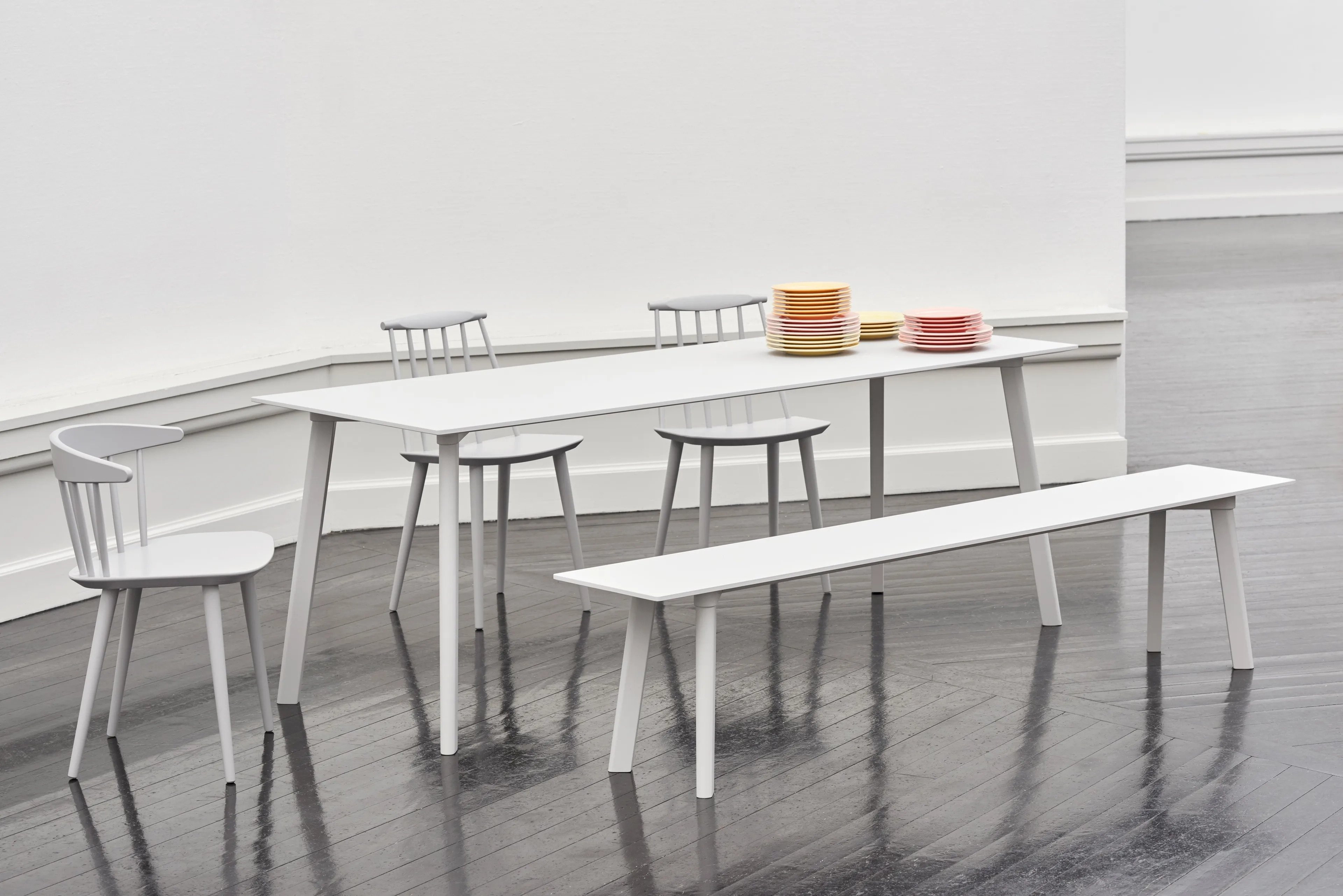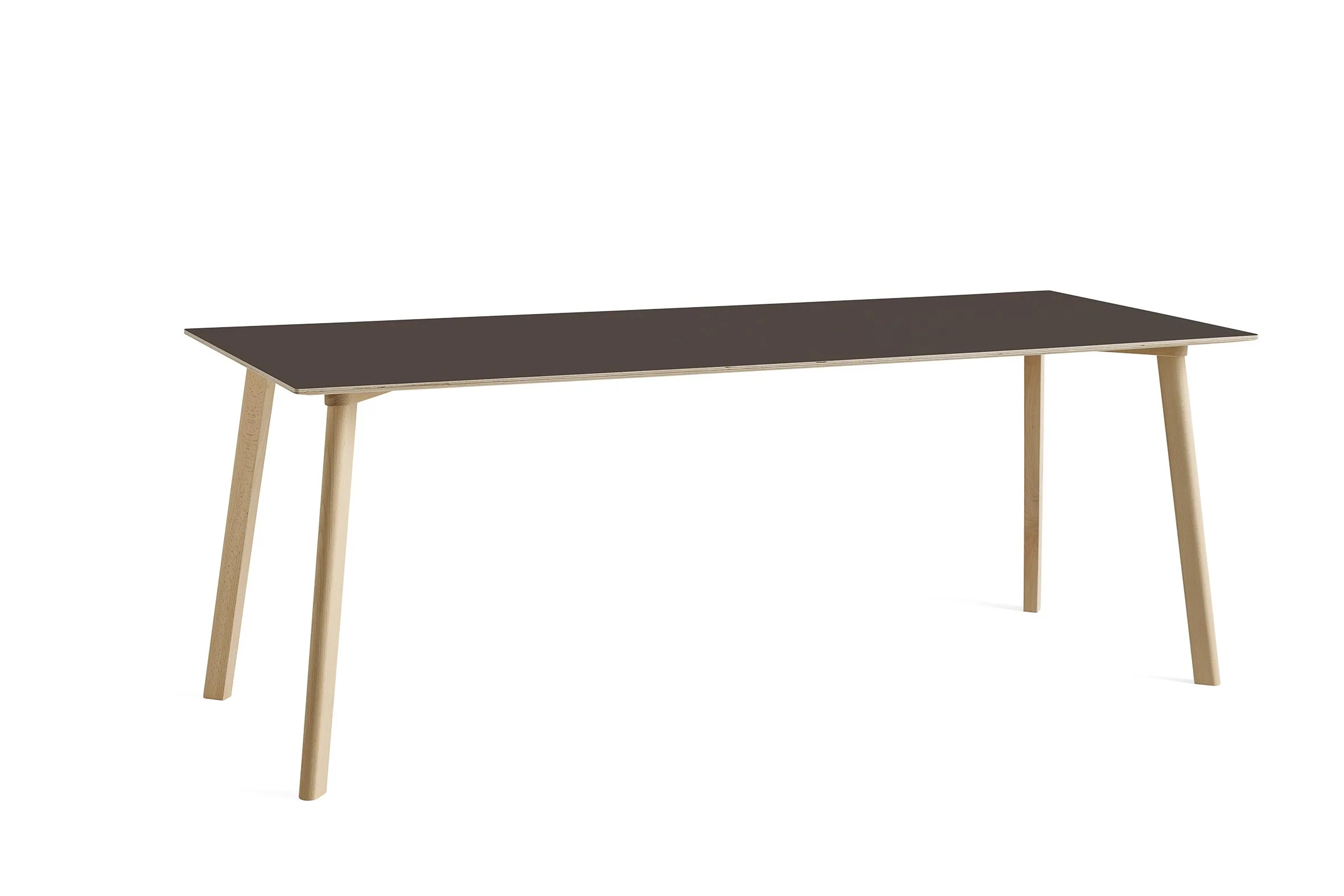 The CPH Deux 210 Table, part of the Copenhague collection by Ronan and Erwan Bouroullec, embodies a minimalist aesthetic and distinct character. Available in both square and rectangular shapes, it serves as an ideal choice for dining tables, conference room furniture, or desks in various settings. The table comes in multiple sizes, featuring a solid beech or oak frame with diverse finishes. Its 18 mm plywood tabletop is enhanced with a 1 mm Nanolaminate surface, available in several colors. Constructed from FSC-certified wood and finished with a water-based lacquer, it meets EU-ecolabel standards. The table includes non-visible, adjustable screw-in feet, extendable up to 12 mm, ensuring stability on uneven floors.