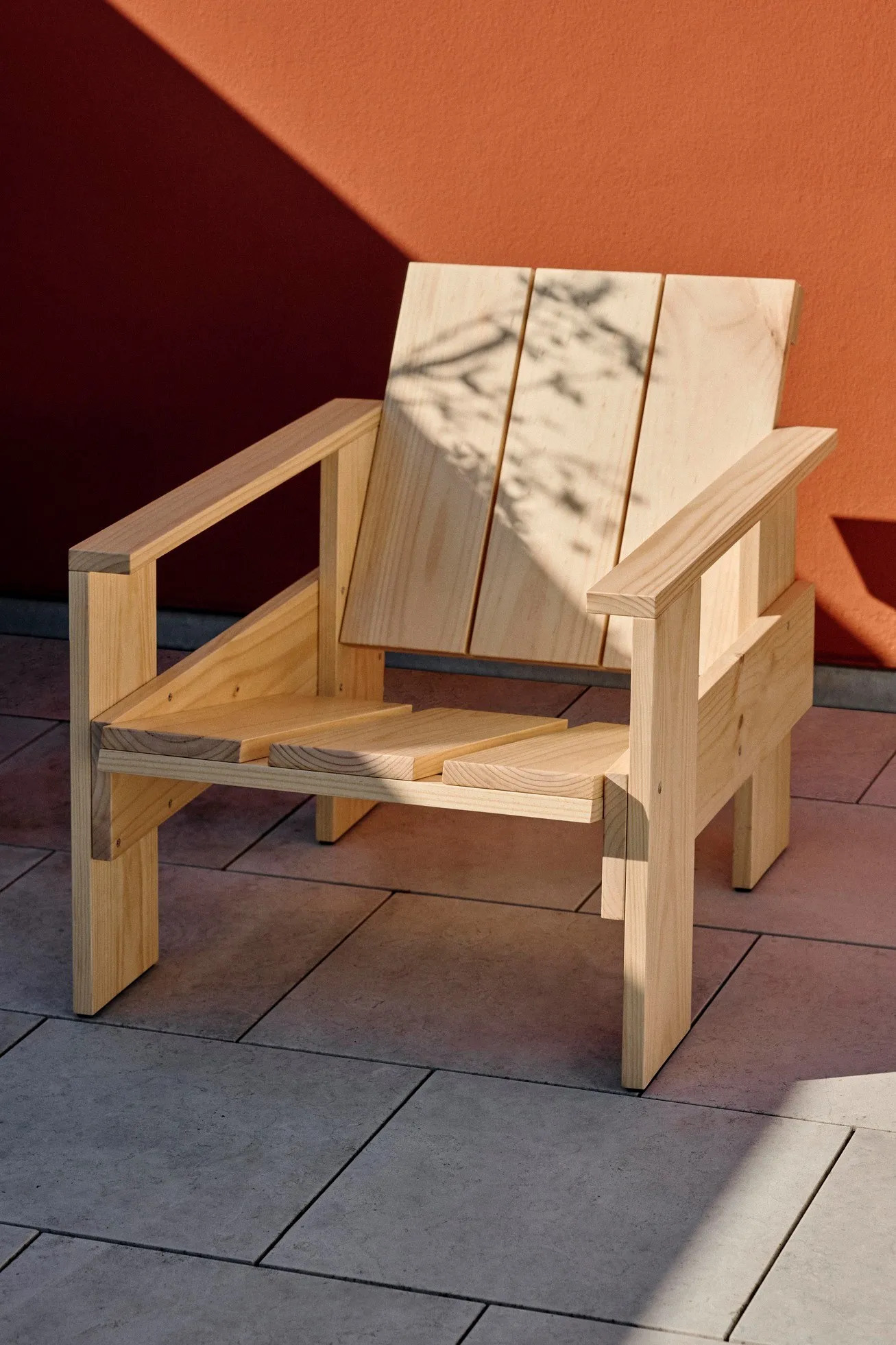 The Crate collection, originally conceived by Dutch architect Gerrit Rietveld in 1934, has been revitalized through a collaboration between Rietveld Originals and HAY. This collection, which includes a lounge chair, dining chair, low table, and side table, is crafted entirely from solid pinewood with a water-based lacquered finish, making it suitable for both indoor and outdoor environments. The design emphasizes modern, functional, and affordable furniture, aligning with HAY's core values. The collection's ergonomic design and modular nature make it ideal for hotels, cafés, lounges, and waiting rooms. Its compact form and customizable upholstery options offer versatile seating solutions, while the optional seat cushions in selected textiles enhance comfort. The Crate collection's transparent construction and balanced proportions reflect Rietveld's architectural style, providing luxury sofas and armchairs that optimize space without compromising on comfort.
