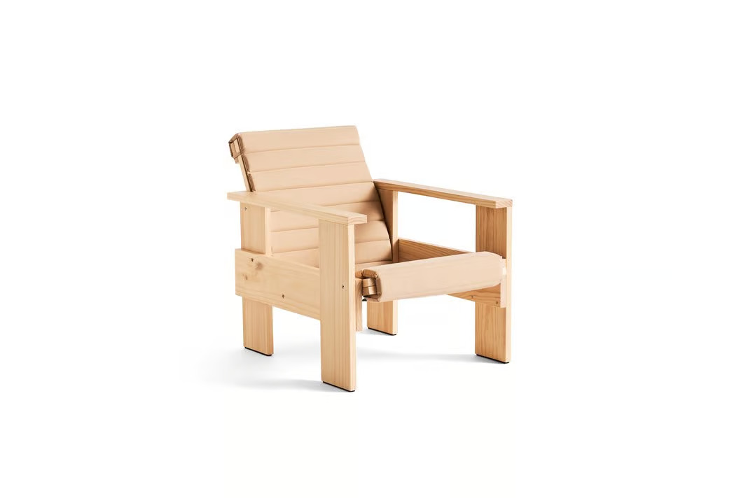 Originally crafted by Dutch architect Gerrit Rietveld in 1934, the Crate Collection has been revitalized through a collaboration between Rietveld Originals and HAY. This collection embodies the principles of modern, functional, and affordable design, aligning with HAY's core values. It includes a lounge chair, dining chair, low table, and side table, all constructed from solid pine with a water-based lacquered finish, making them ideal as durable outdoor furniture. The collection's minimalist design and precise proportions reflect Rietveld's architectural style, offering functionality without occupying excessive space. The all-weather outdoor furniture is available in various colors, suitable for diverse settings, and can be enhanced with optional seat cushions. These cushions, designed for the Crate Dining and Lounge Chairs, are made from Teflon®-coated fabric, providing water-repellent and UV-resistant properties. The cushions come in multiple colors and are designed for year-round use, ensuring comfort and durability.