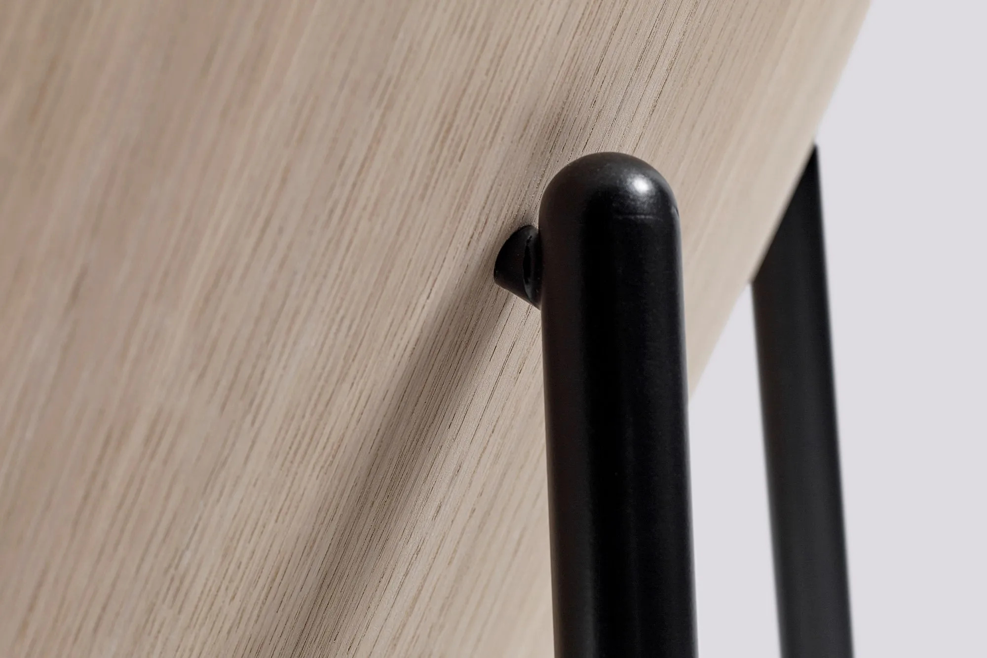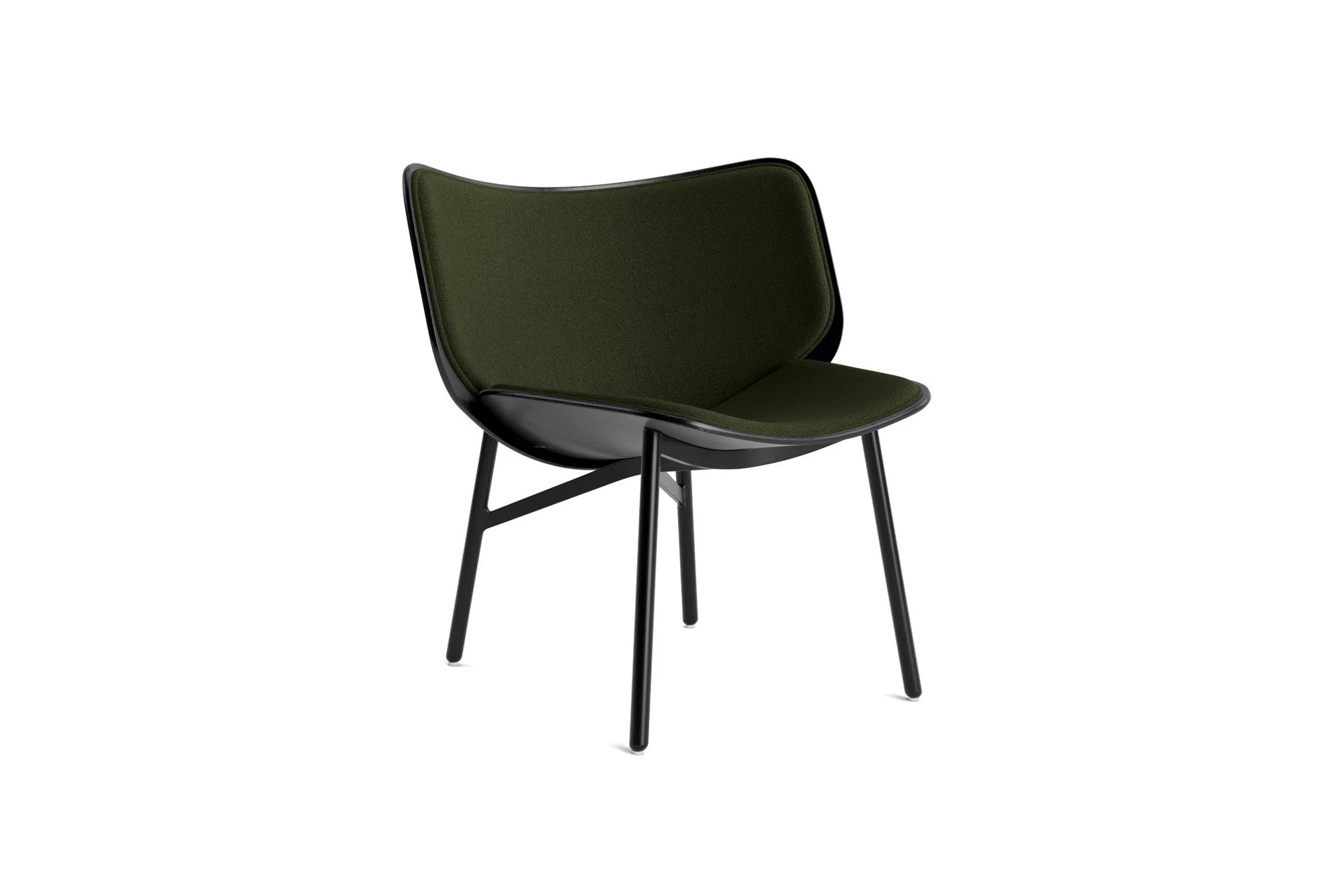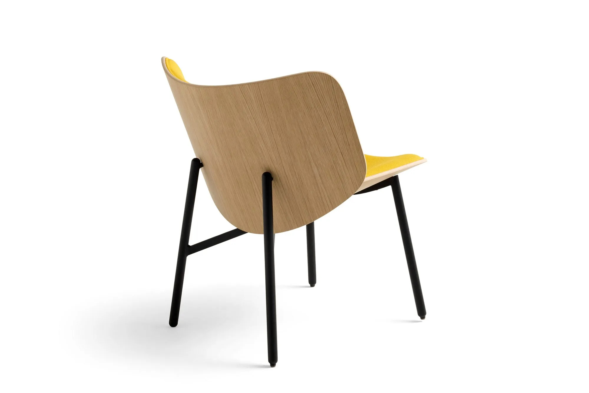 The DAPPER lounge chair, crafted by Doshi Levien for HAY, embodies a unique blend of industrial design, craftsmanship, and technology. Initially created for a London university, this chair features an extra-wide backrest, providing comfort and optimal elbow support, ideal for laptop use. Its structural design consists of two molded oak-veneered plywood shells, complemented by powder-coated steel legs. The chair is available in a range of stained and lacquered oak veneers, fabrics, and leathers, with customizable frame options. Upholstered with 10 mm molded plywood and 30 mm thick foam, it offers a luxurious seating experience. The plastic gliders ensure suitability for various flooring types, making it an excellent choice for hotels, cafés, lounges, and waiting rooms.