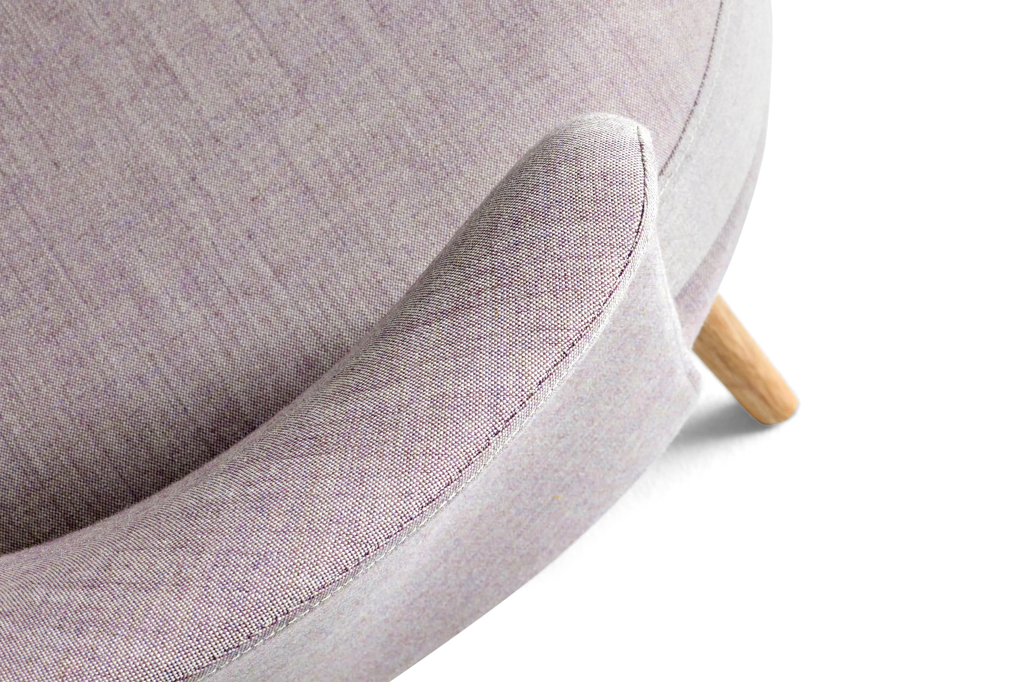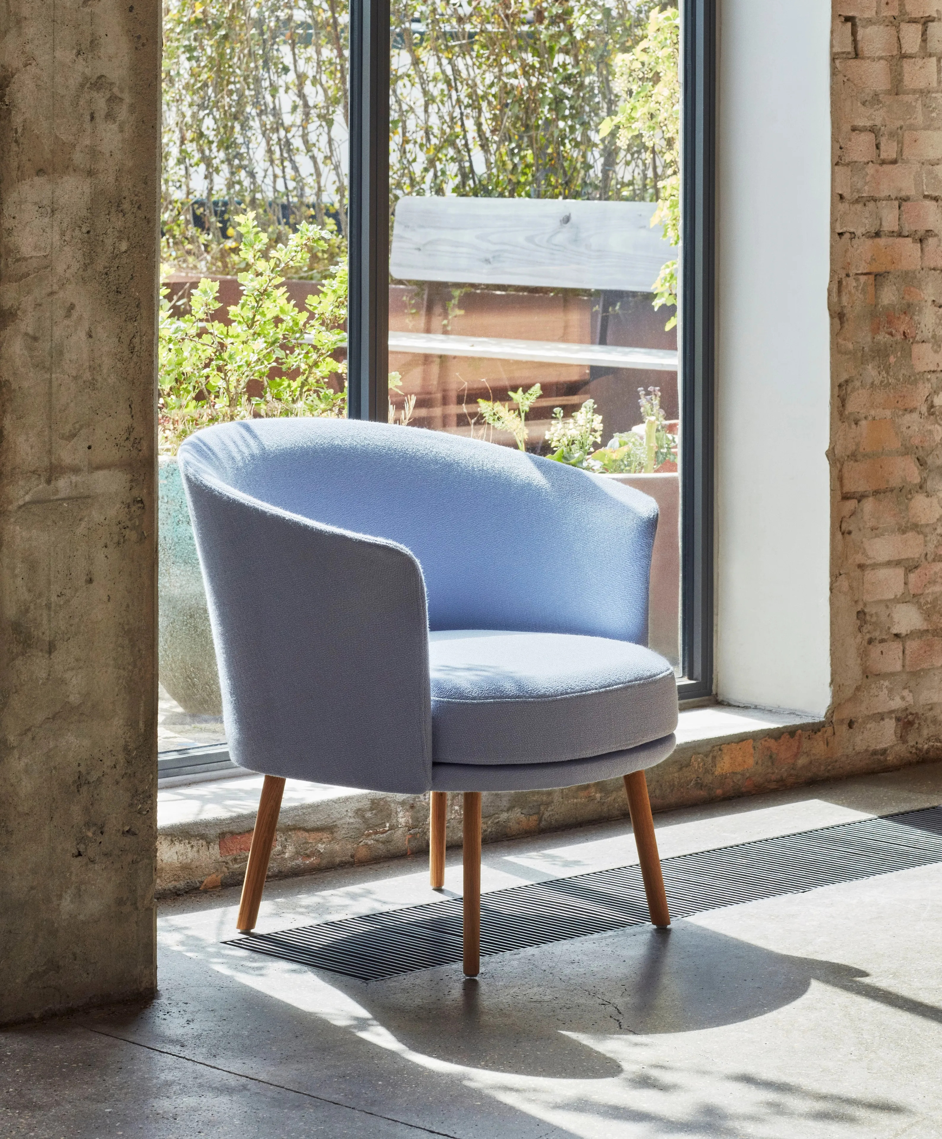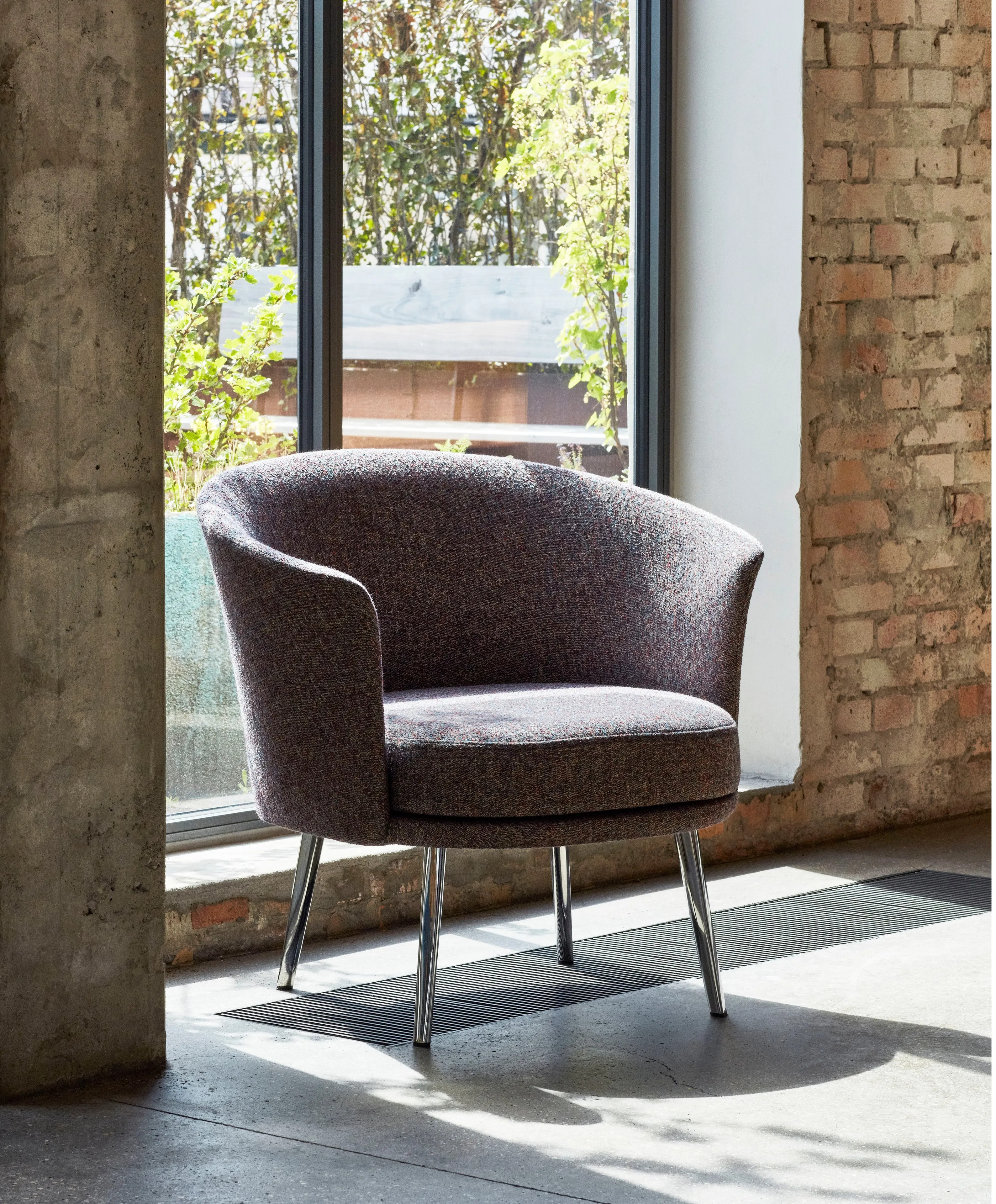 The DORSO chair, designed by GamFratesi, draws inspiration from the fluid curves of a human torso in motion. This piece features a rounded exterior paired with a rotating base, offering a blend of relaxation and functionality. Its compact size and ergonomic design make it ideal for diverse settings, including hotels, cafés, lounges, waiting rooms, and residential interiors. Constructed with a molded polyurethane foam shell and an inner steel frame, it ensures durability and comfort. The seat cushion is crafted from polyurethane foam with upholstery and an anti-slip fabric bottom. The base, made from a steel frame with an extruded aluminum bearing, includes an integrated swivel mechanism. Choose from legs in steel or FSC-certified solid wood, and three base finishes: black powder-coated steel, oiled solid oak, or chromed steel. Custom upholstery options are available in a wide range of fabrics and leathers.
