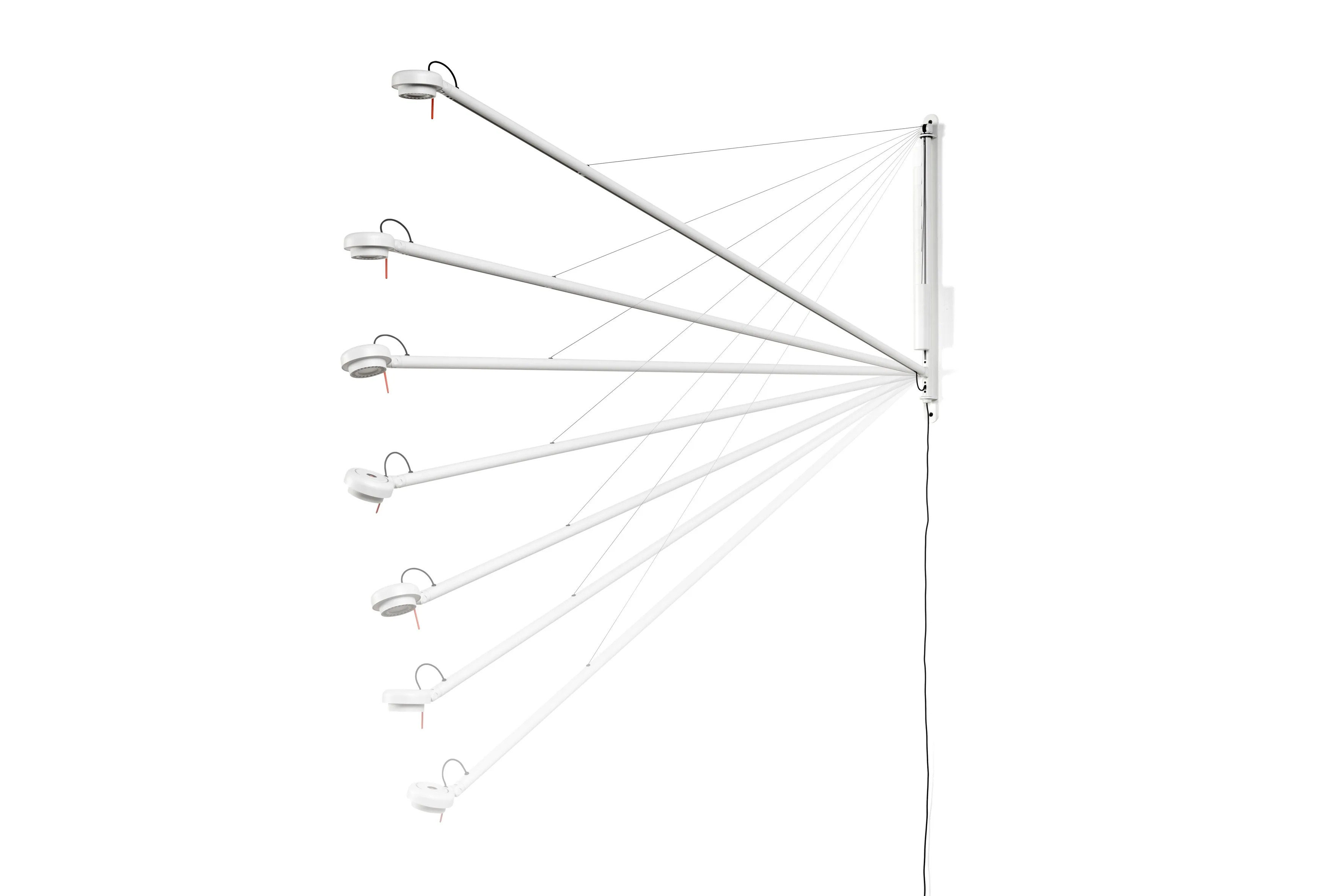 The FIFTY-FIFTY lighting fixture, inspired by physics and engineering, features a counterweight system that achieves balance between its components. This modern LED interior lighting solution combines minimalist aesthetics with high functionality, making it ideal for hotels, offices, retail spaces, restaurants, and residential interiors. Its configurable aluminum components simplify design and manufacturing, highlighting the joints and mechanisms throughout the series. The single cantilever arm, crafted from extruded aluminum with die-cast joints, is easily adjustable with one hand and includes a touch-sensitive dimmer for precise ambient lighting control. Suitable for both shared and private spaces, it comes in soft black (RAL 9004) and cream white (RAL 9010). The fixture includes an integrated 7.7W LED, a 300 cm black silicone cable, and a UK/EU plug-mounted adapter, offering energy-efficient lighting designs.