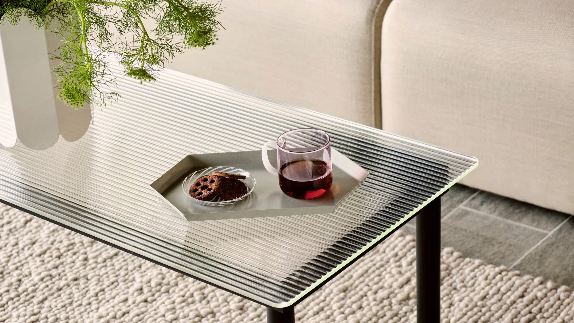 KOFI, designed by Norwegian designer Martin Solem for HAY, offers a sophisticated selection of glass-topped tables ideal for diverse environments such as restaurants, conference rooms, coworking spaces, cafés, event venues, and educational institutions. Emphasizing a modern design, these tables are crafted with a focus on sustainability, featuring a flat-pack design for efficient production. The tables boast a solid oak or walnut frame, made from FSC-certified wood with a water-based lacquer finish. The tabletop is available in plain or reeded glass, providing a unique ribbed texture. With various sizes, frame colors, and glass options, KOFI seamlessly integrates into any setting, from dining areas to conference rooms. The durable construction includes solid legs with felt pads, ensuring stability and protection for any surface.