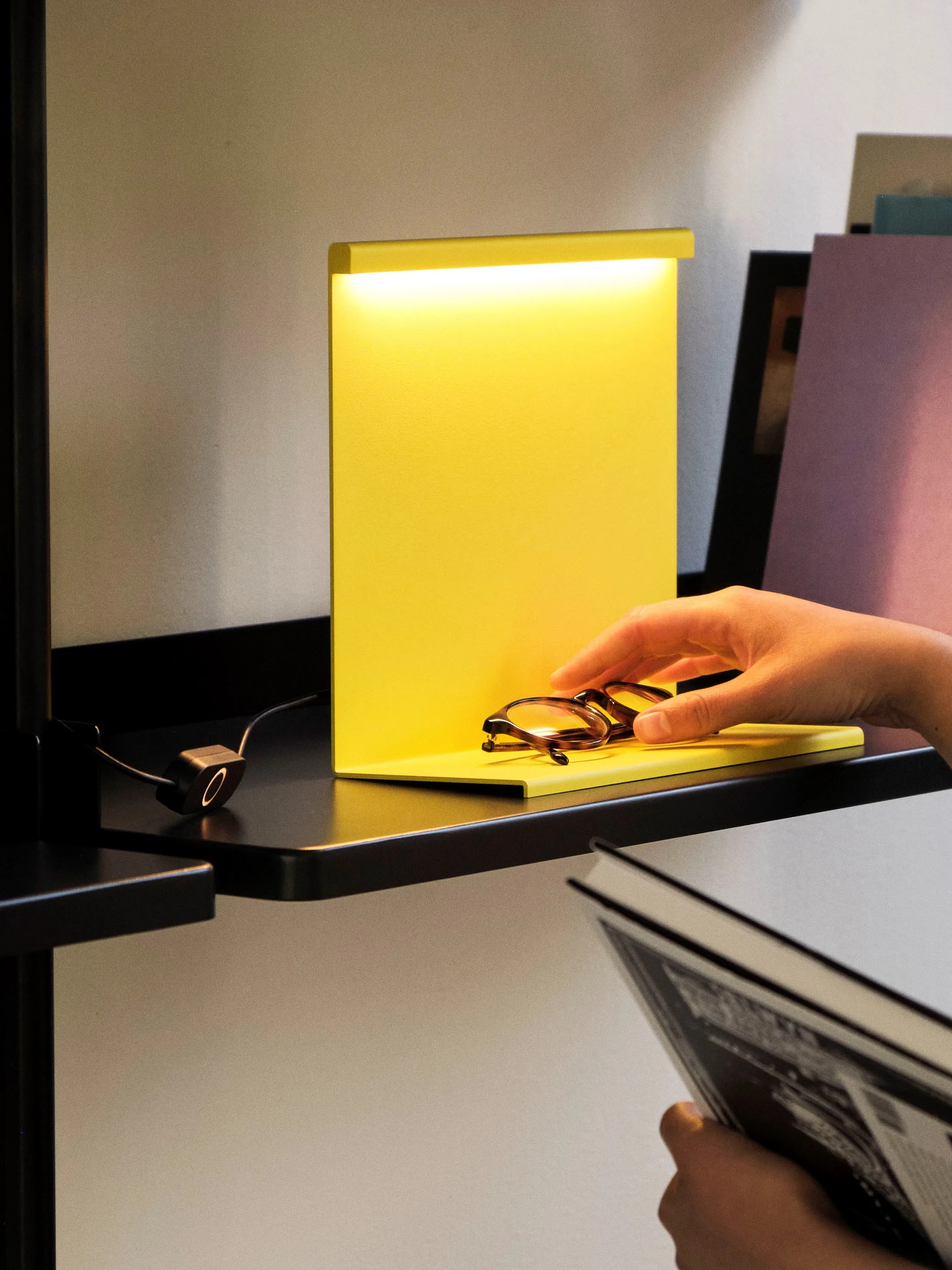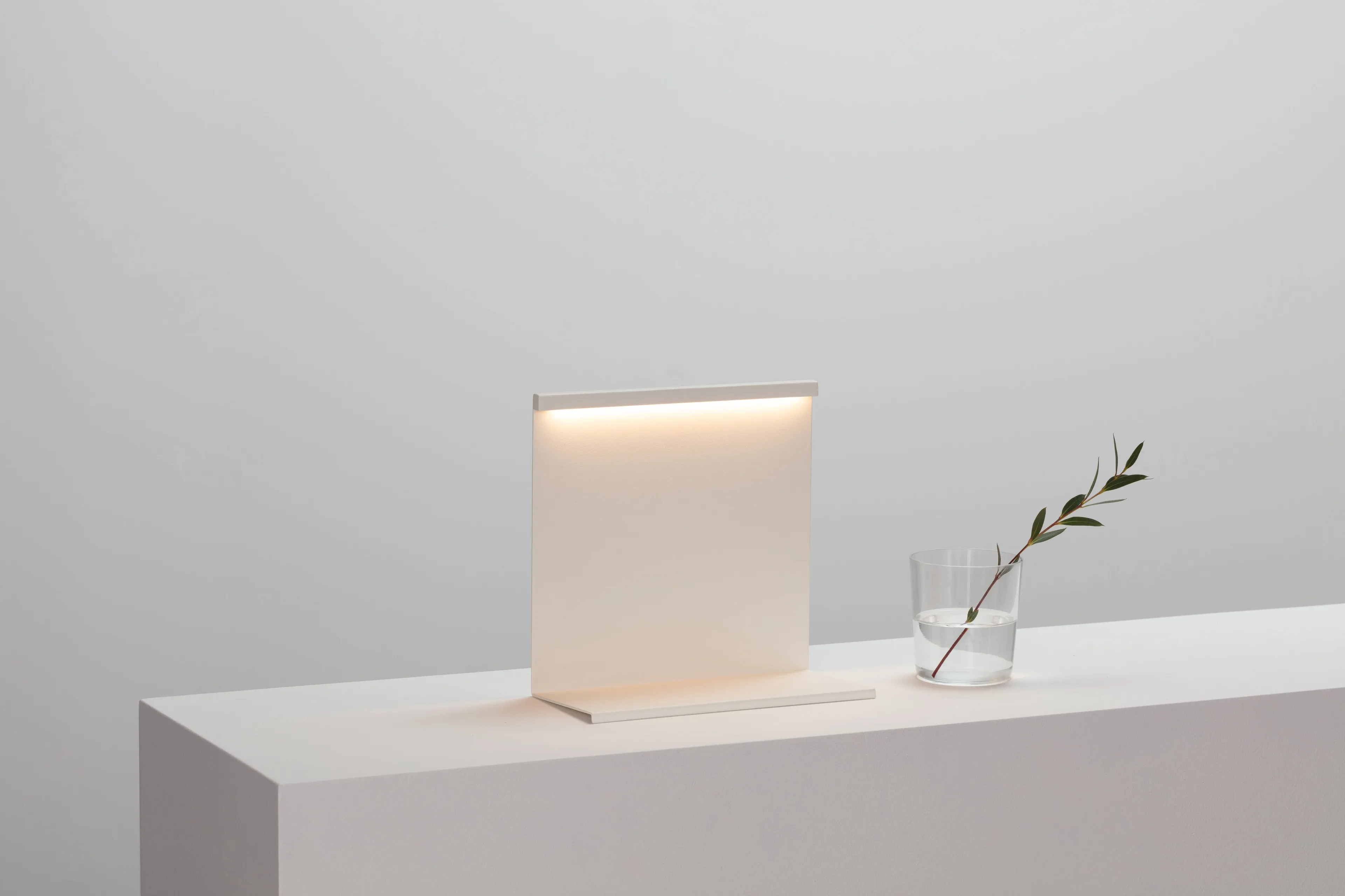 The LBM Table Lamp, designed by Moisés Hernández, draws inspiration from the geometric and chromatic innovations of Mexican architect Luis Barragán Morfín. This piece features folded vertical sheet steel, creating a poetic interaction of light and color reminiscent of Barragán's architectural style. The lamp provides ambient downlighting with a subtle gradient effect, offering a calming atmosphere and artistic appeal whether illuminated or not. Its minimalist design and functionality make it ideal for diverse environments, including hotels, offices, retail spaces, restaurants, and residential interiors. Equipped with an integrated 8W LED light source, the lamp is energy-efficient and dimmable, operating on a 220-240V AC power supply. The 200 cm cord includes an inline step dimmer for adjustable lighting.