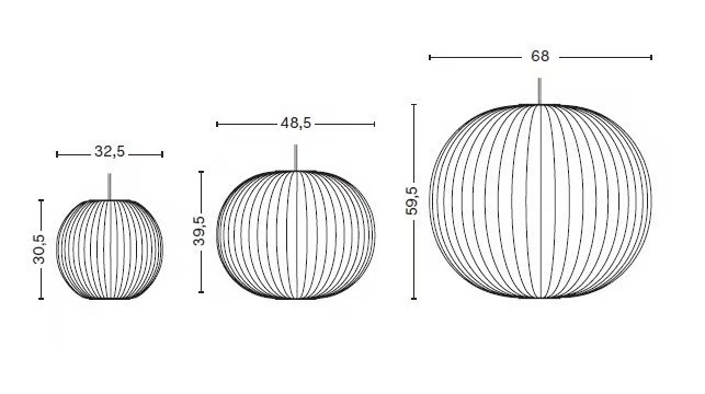 The NELSON BALL BUBBLE Pendant, part of the iconic Nelson series, exemplifies modern chandelier designs with its elegant, organic shapes. Originally crafted by George Nelson in 1947 and produced in 1952, this pendant light revolutionized the Modernist lighting industry. Available in small, medium, and large sizes, it offers energy-efficient lighting with recommended LED E27 bulbs. The small size uses 5-8W, while medium and large sizes use 10-13W, all providing dimmable, ambient lighting. With a power supply of 220-240V AC at 50/60Hz and a 183 cm cord length, these decorative pendant lights are ideal for hotels, offices, retail spaces, restaurants, and residential interiors. The light's color temperature and color rendering index vary based on the bulb used, ensuring versatile LED interior lighting solutions.