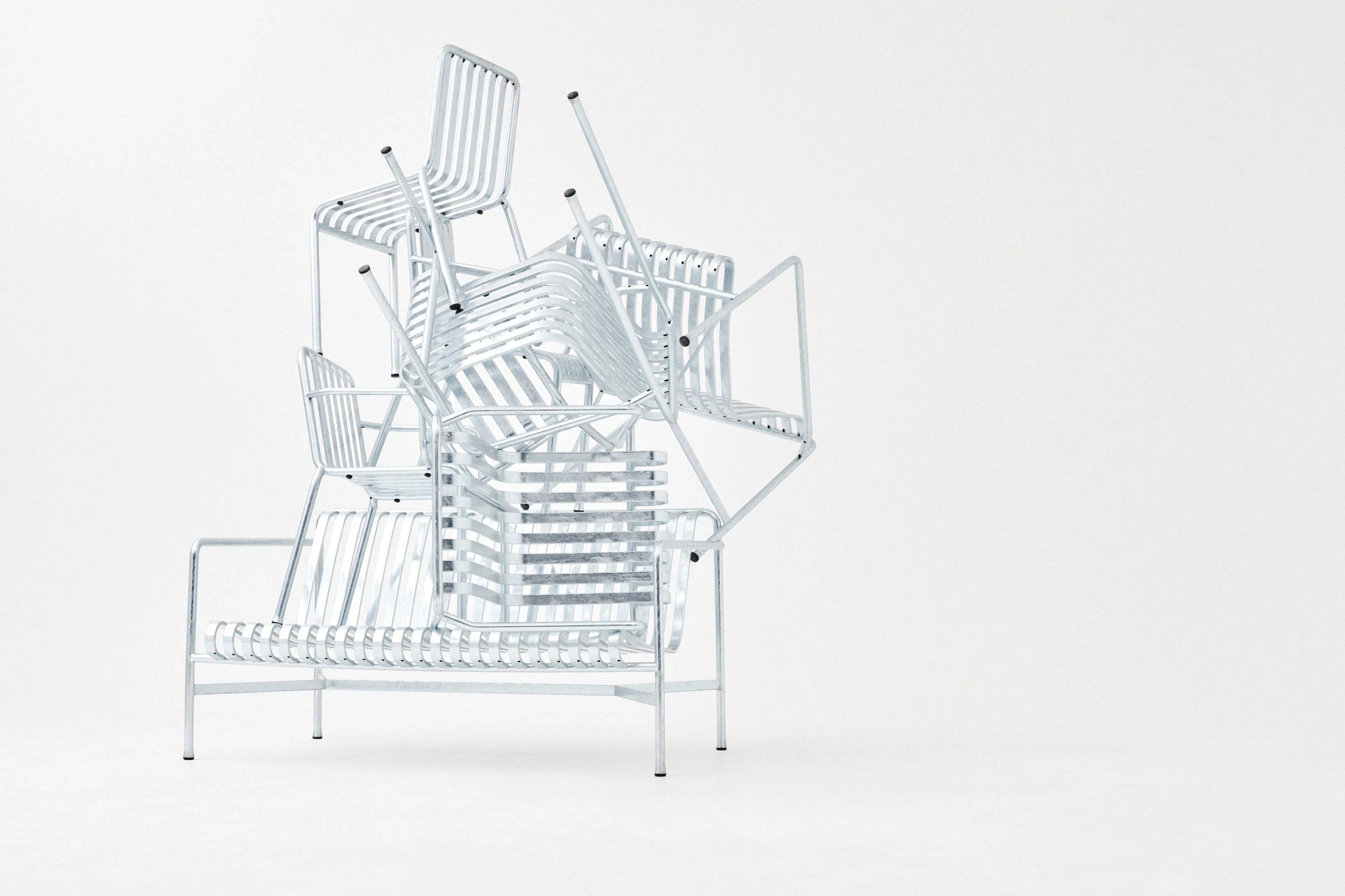 The PALISSADE collection, crafted by French designers Ronan and Erwan Bouroullec for HAY, offers a versatile range of durable outdoor furniture. Constructed from powder-coated or hot-galvanized steel, these pieces are designed with symmetrical geometry, ensuring visual simplicity and robust strength. The collection seamlessly blends into both natural landscapes and urban environments, making it ideal for resorts, cafés, restaurants, and beachside hotels. Its all-weather outdoor furniture is engineered to withstand the elements, featuring a two-component coating that includes a primer and an outdoor powder coating for enhanced corrosion resistance. Available finishes include Anthracite, Sky Grey, Olive, Iron Red, and Hot Galvanized Steel, providing options to suit various aesthetic preferences. The PALISSADE range includes modular outdoor seating, durable patio chairs, and comfortable poolside loungers, perfect for diverse settings such as gardens, terraces, and balconies.