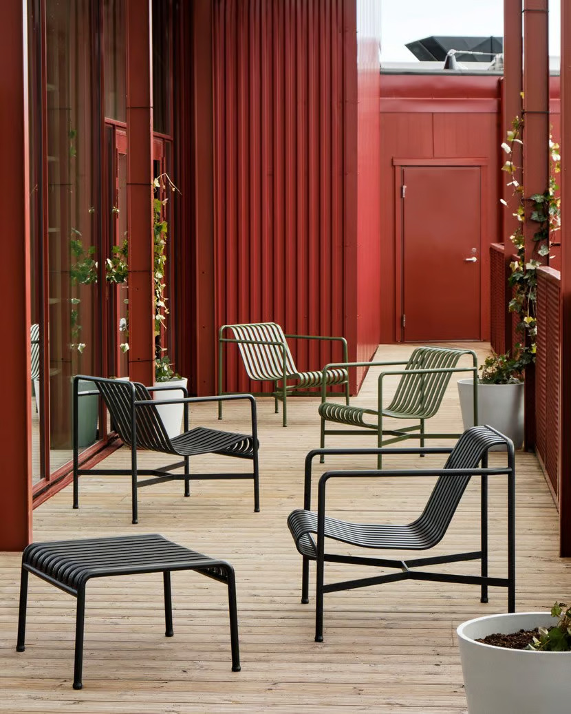 The PALISSADE collection, crafted by French designers Ronan and Erwan Bouroullec for HAY, offers a versatile range of durable outdoor furniture. Constructed from powder-coated or hot-galvanized steel, these pieces are designed with symmetrical geometry, ensuring visual simplicity and robust strength. The collection seamlessly blends into both natural landscapes and urban settings, making it ideal for resorts, cafés, restaurants, and beachside hotels. Its all-weather outdoor furniture design ensures longevity, with a two-component coating that includes a primer and outdoor powder coating to resist corrosion. Available in various finishes, including Anthracite, Sky Grey, Olive, Hot Galvanized, and Iron Red, the PALISSADE collection provides modular outdoor seating, comfortable poolside loungers, and durable patio chairs, perfect for diverse environments such as gardens, terraces, and balconies.