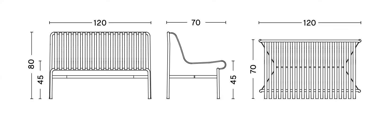 The PALISSADE collection, crafted by French designers Ronan and Erwan Bouroullec for HAY, offers a versatile range of durable outdoor furniture. Constructed from powder-coated or hot-galvanized steel, these pieces are designed with symmetrical geometry, ensuring visual simplicity and robust strength. Ideal for diverse settings such as resorts, cafés, restaurants, and beachside hotels, the collection seamlessly blends into both natural landscapes and urban environments. Its all-weather outdoor furniture design ensures longevity, with a two-component coating that protects against corrosion. Available finishes include Anthracite, Sky Grey, Olive, Iron Red, and Hot Galvanized Steel, making it suitable for various aesthetic preferences. The collection includes modular outdoor seating, comfortable poolside loungers, and durable patio chairs, perfect for creating cohesive garden furniture sets.