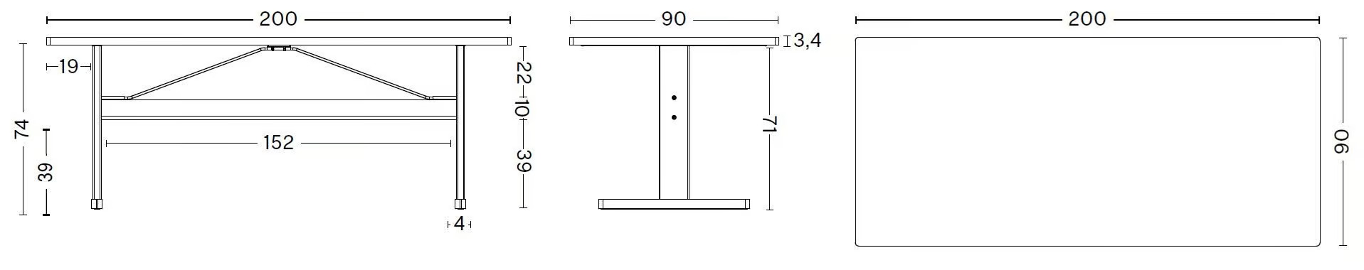 PASSERELLE, crafted by French designers Ronan and Erwan Bouroullec, embodies the minimalist elegance of classic Shaker furniture, reimagined for contemporary settings. This modern design table features a balanced, flat-packed construction with a tabletop that combines solid wooden edges and a surface available in veneer, laminate, or linoleum. Its core, made from Lisocore®, ensures exceptional strength while remaining lightweight and easy to reposition. The robust frame includes solid wooden legs and a stabilizing aluminium and steel crossbar. PASSERELLE's versatile design accommodates various seating options, such as café chairs and ergonomic, stackable chairs, making it ideal for dining tables in restaurants, conference room furniture, and educational institutions. With diverse material and color choices, it seamlessly fits into coworking spaces, event venues, and banquet halls.
