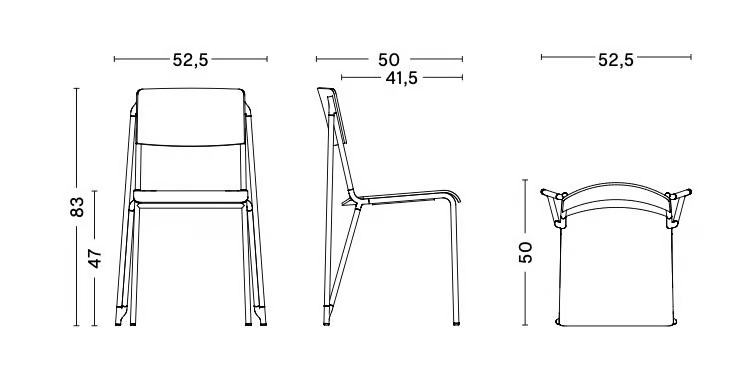 Daniel Rybakken's Petit Standard is the culmination of an eight-year exploration into precision and detail. Designed to be a highly stackable chair, its stackability enhances its modern design. Crafted from die-cast aluminum and steel tubes forming a three-dimensional triangle, the lightweight frame presents a geometric silhouette. This is complemented by the warmth of the oak-veneer seat and backrest. The high back and curved seat offer ergonomic comfort, while the sturdy tubing ensures durability and efficient stacking, making it suitable for dining tables in restaurants, conference room furniture, and educational settings. The chair features a molded plywood seat and back with beech inner veneer and oak top and bottom veneer. Available in five seat and back finishes, including matt lacquered oak and various stained oak veneers, and five base colors, including black and ultramarine blue powder-coated steel.
