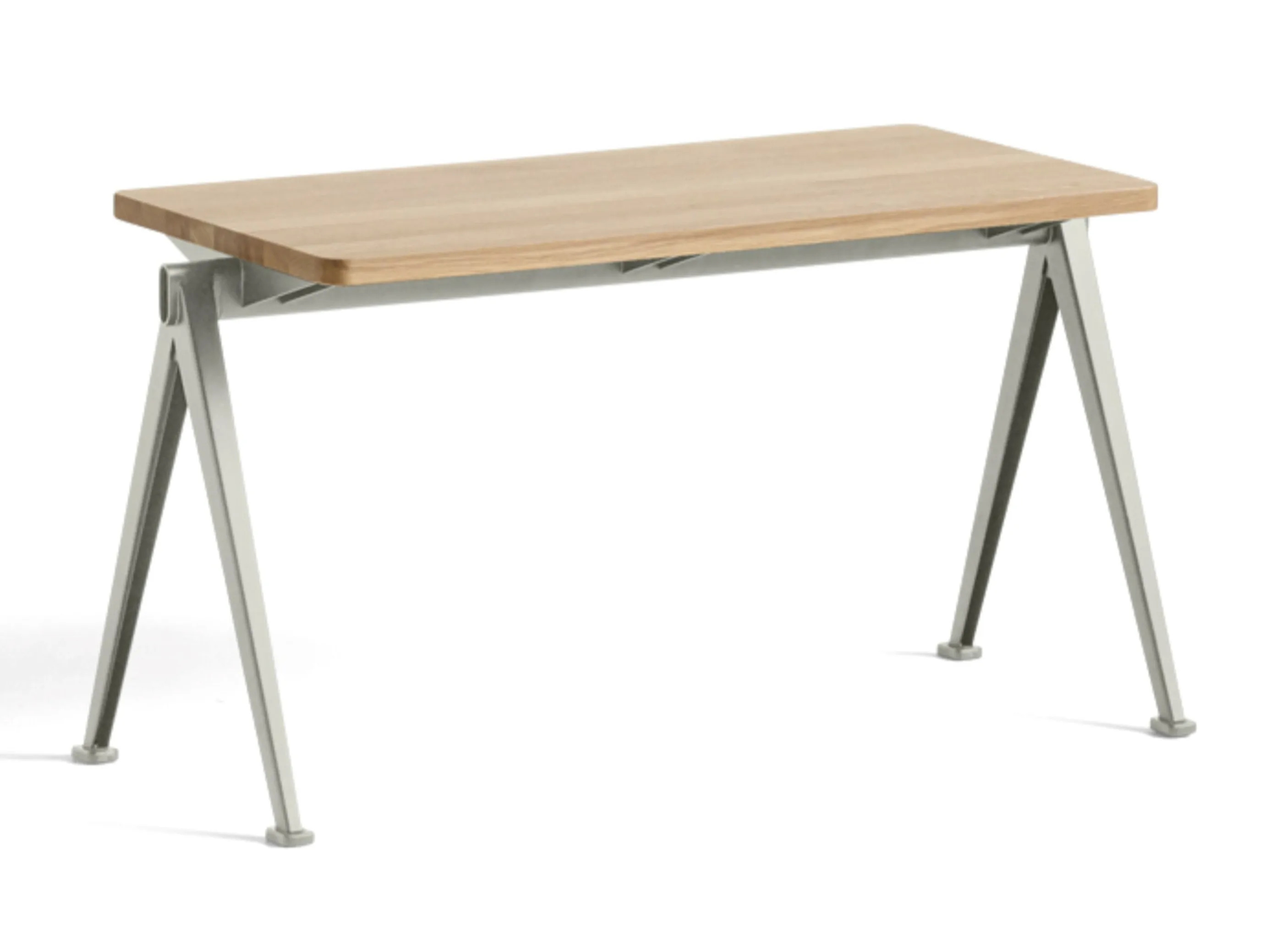 The Pyramid Bench 11 is designed for versatility, combining lightweight construction with robust durability. Originally crafted by Wim Rietveld in the 1950s and reintroduced by HAY and Ahrend, this piece exemplifies innovative use of cutout sheet steel. Its minimalist design and efficient material use make it ideal for dining tables, café chairs, and conference room furniture. The bench features a rectangular oak top supported by a steel sheet base, offering a modern design suitable for various settings, including educational institutions and event venues. Its stackable nature and ergonomic design ensure practical and durable seating. Available in four oak finishes—clear lacquered, matt lacquered, smoked oiled, and oiled—and three base colors—black, beige, and tomato red—this bench adapts to diverse aesthetic preferences.