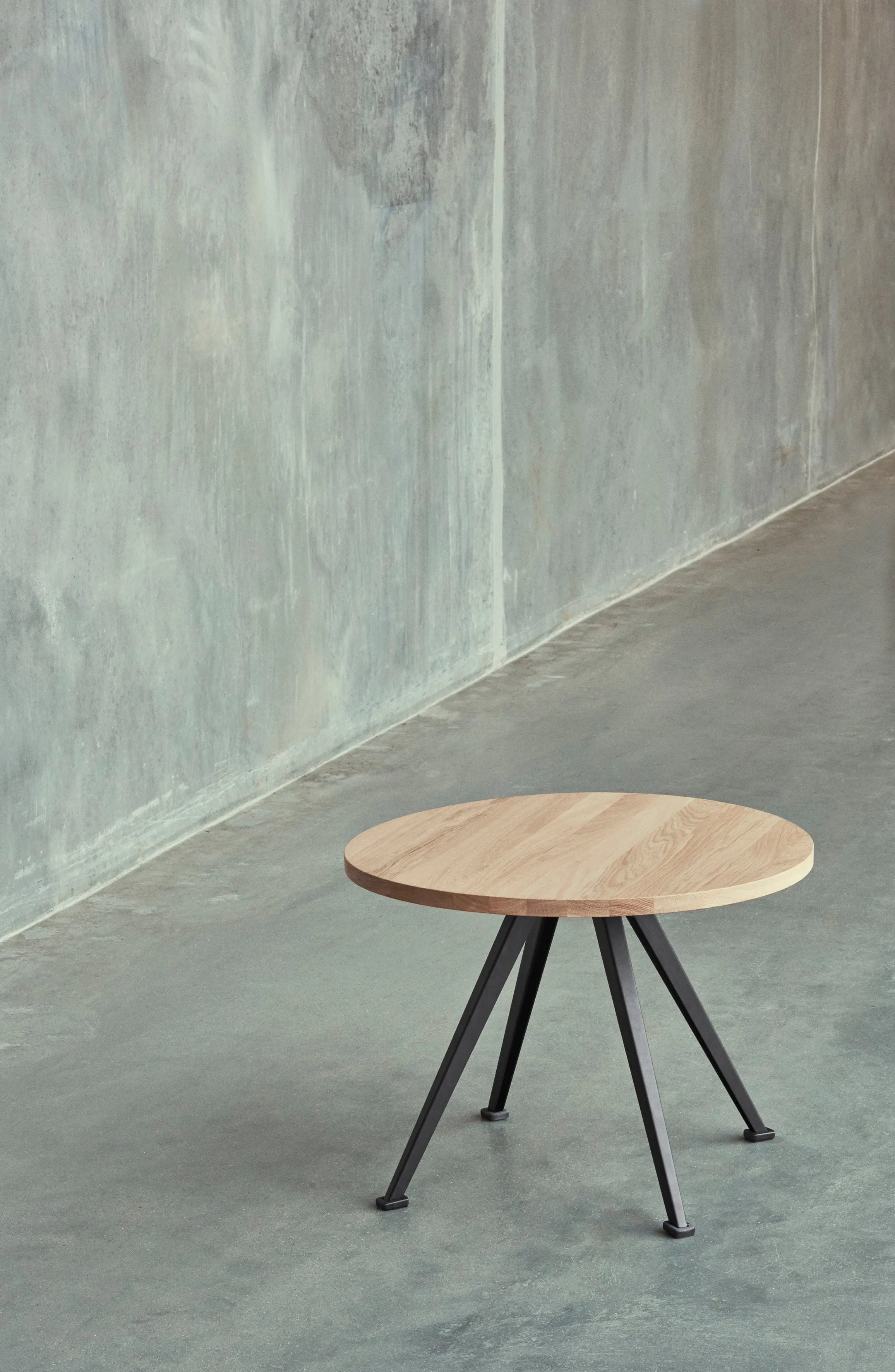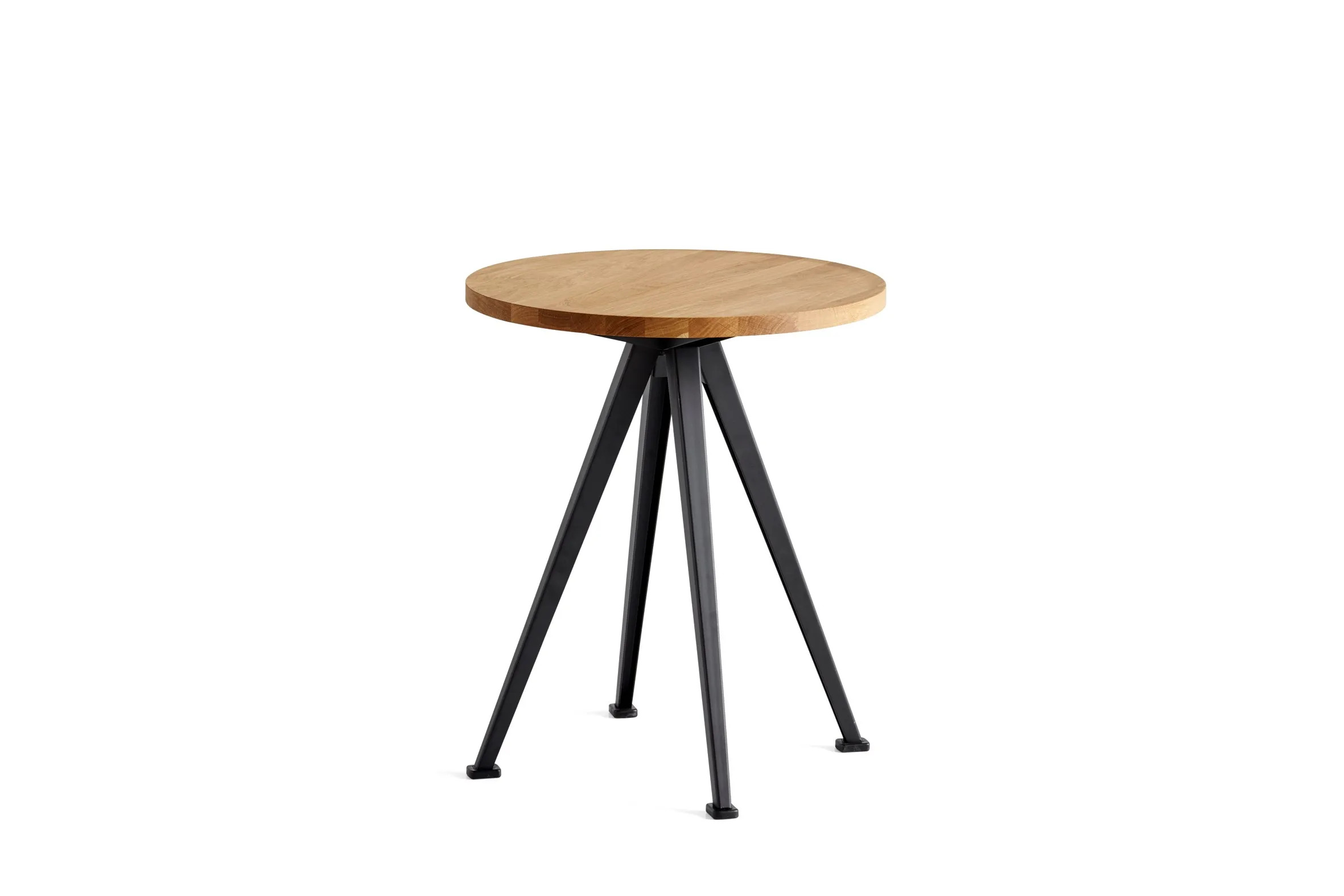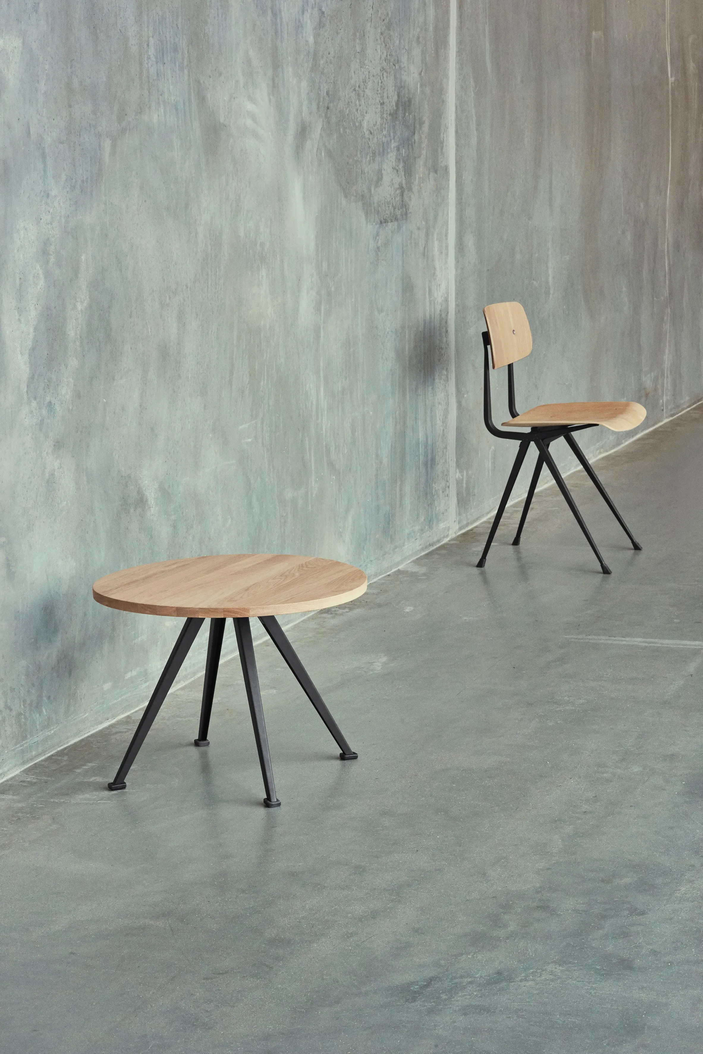 The Pyramid Coffee Table 51 is designed for versatility, durability, and strength, making it an ideal choice for restaurants, conference rooms, coworking spaces, cafés, event venues, and educational institutions. Originally crafted by Wim Rietveld in the 1950s and relaunched by HAY and Ahrend, this table exemplifies modern design with its innovative use of cutout sheet steel. Its minimalist construction and lightweight nature allow for easy mobility, while its robust materials ensure long-lasting use. The table features a 21 mm solid oak tabletop with a straight edge, available in clear lacquered, matt lacquered, smoked oiled, or oiled finishes. The frame, made from 2 mm bent cutout sheet steel, comes in black, beige, or tomato red powder-coated options. This piece complements dining tables, café chairs, and other conference room furniture, offering a blend of functional excellence and aesthetic simplicity.