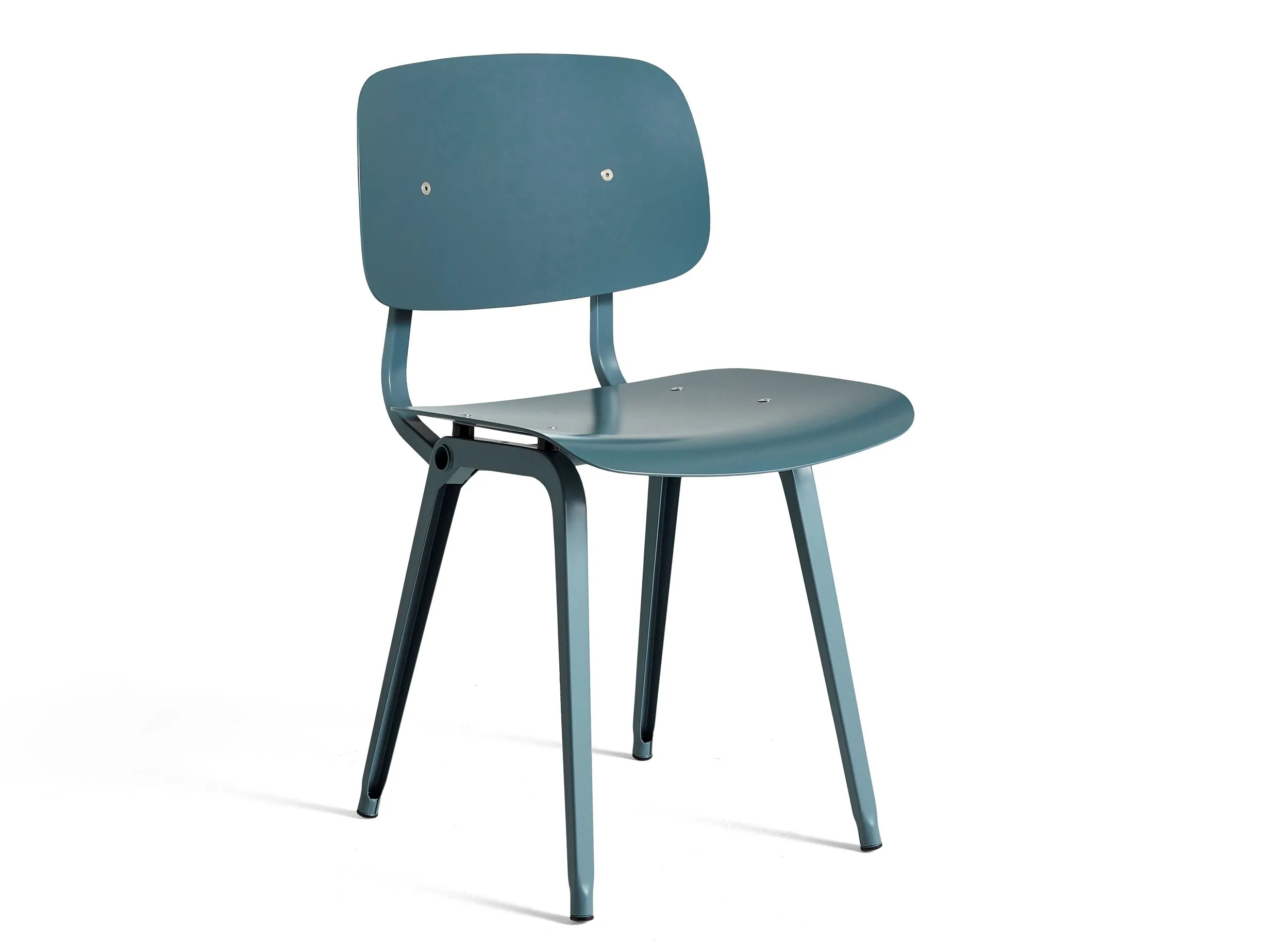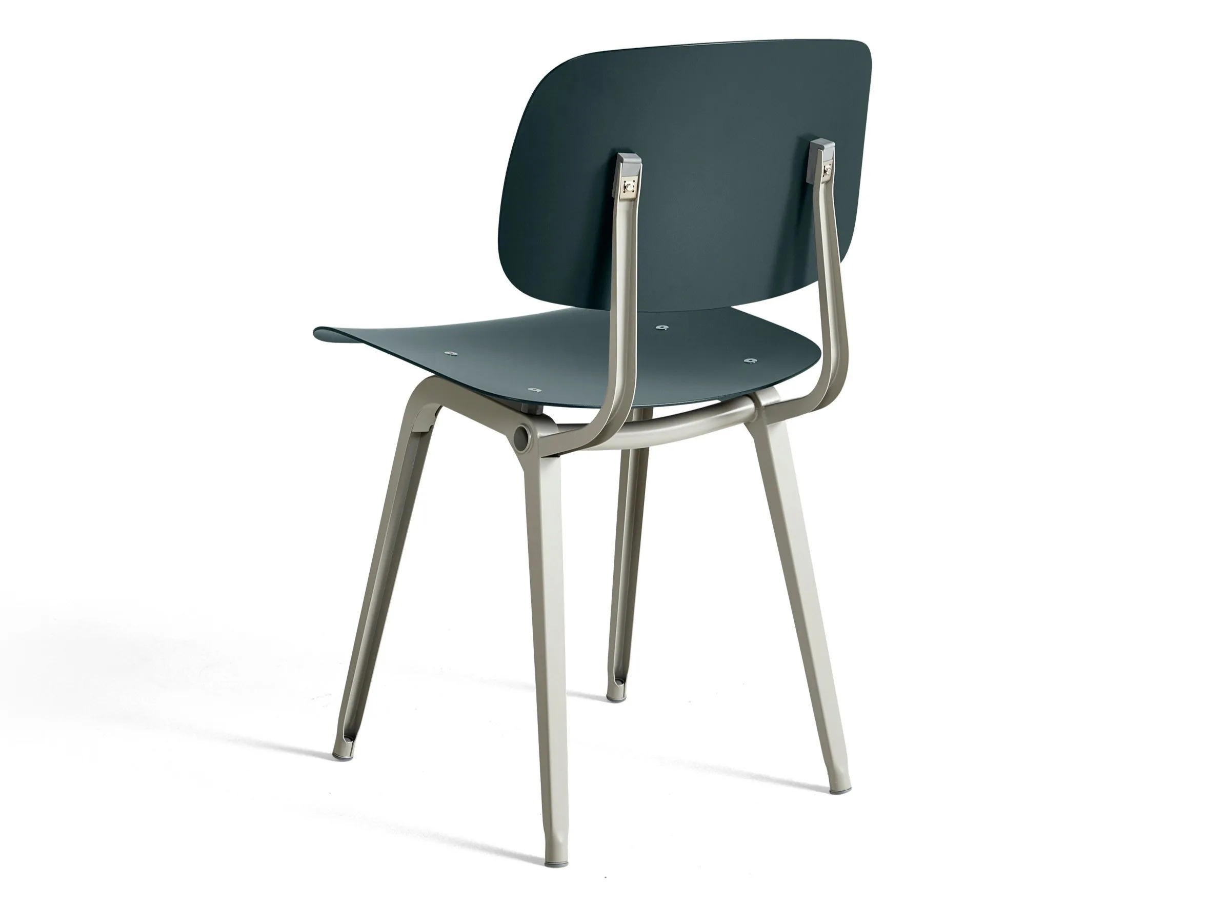 The REVOLT chair, originally designed by Friso Kramer in the 1950s, has been reintroduced by HAY in collaboration with Ahrend. This iconic piece showcases Kramer's minimalist approach, featuring a bent sheet steel frame rather than the conventional tubular design. The chair is crafted from a sustainable blend of recycled post-consumer and virgin ABS materials, available in nine color options. Its ergonomic design provides dynamic support, making it ideal for dining tables, conference rooms, and café settings. The REVOLT chair's durable construction and modern design make it a versatile choice for restaurants, coworking spaces, event venues, and educational institutions. The powder-coated sheet steel base is available in black, beige, and ocean finishes, ensuring it complements various interior styles. Its stackable nature enhances its practicality for spaces requiring flexible seating arrangements.