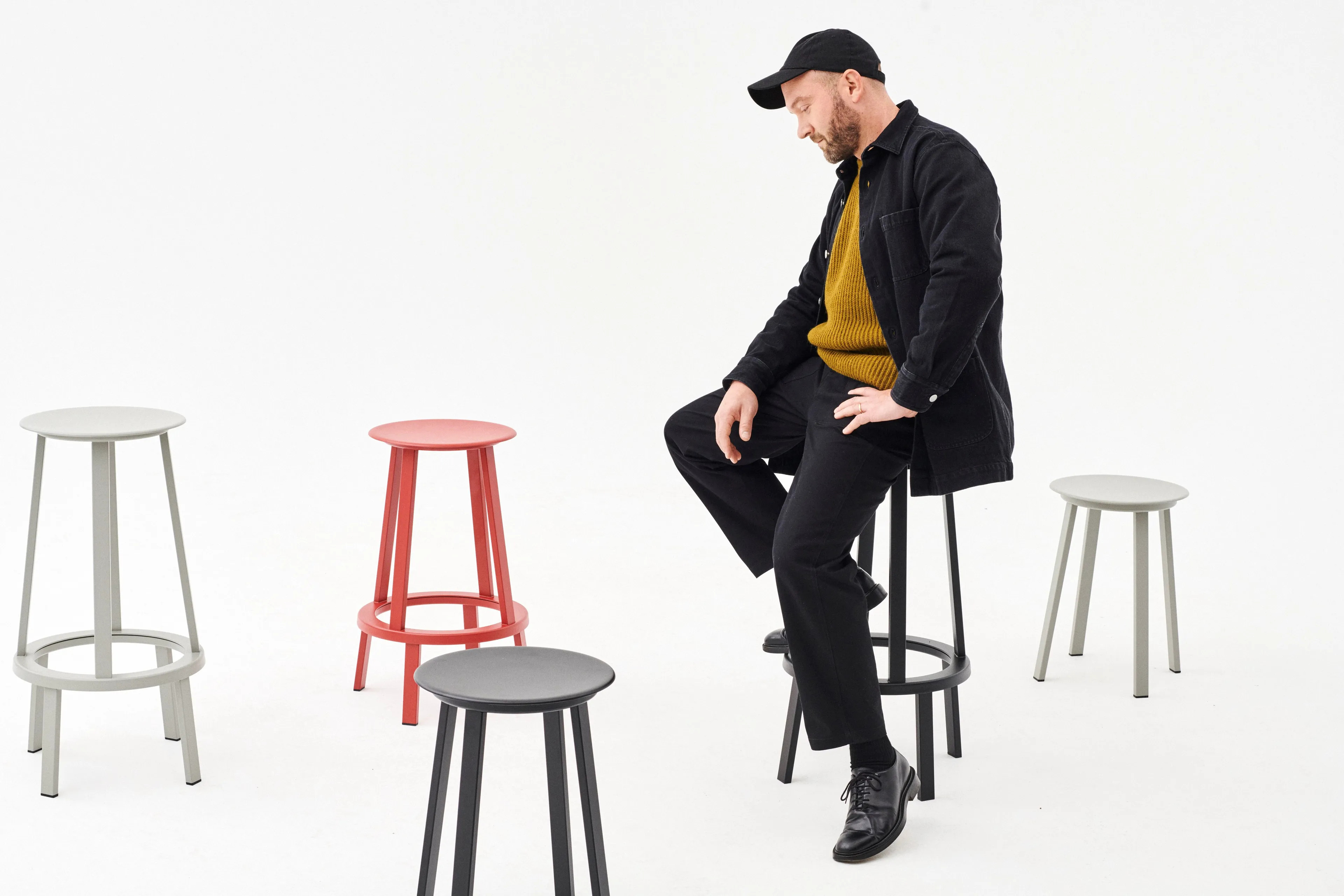 The REVOLVER collection offers a versatile seating solution ideal for restaurants, conference rooms, coworking spaces, cafés, event venues, and educational institutions. Featuring a 360-degree rotating seat and foot ring, this modern design table and chair set combines functionality with style. The slim, slightly dished seat with curved edges ensures ergonomic comfort, while the sturdy footrest and weighty base provide durable seating and stability. Crafted from powder-coated steel with an aluminum bearing, these stackable chairs are available in two heights and three colors: Black (RAL 9005), Sky Grey (RAL 7038), and Red Lava (NCS S 2570-Y80R). The REVOLVER's adaptable design makes it a fitting choice for diverse public and private settings, offering a blend of practicality and contemporary aesthetics.