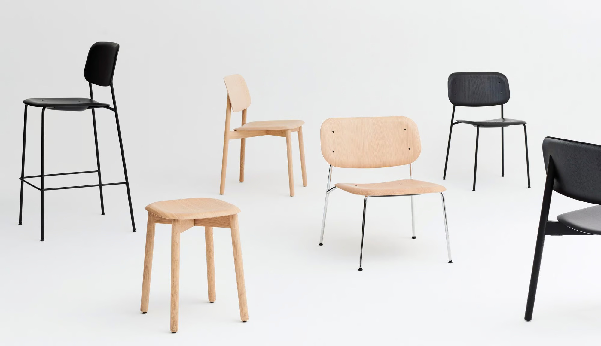 The Soft Edge 100 Lounge by Iskos-Berlin combines an organically shaped seat and back with strong curves, achieving a unique three-dimensionality typically unattainable with traditional plywood. This modern lounge furniture piece is designed for optimal comfort, accommodating constant movement and long periods of relaxation. Its steel base enhances both lightness and durability, ensuring it remains a reliable choice for hotel furniture, cafés, lounges, waiting rooms, and residential interiors. The luxury armchair features a moulded plywood seat and back with a beech inner veneer and oak top and bottom veneers, complemented by 10 mm PU foam for added comfort. The Ø16 mm steel tube frame and plastic gliders make it suitable for various flooring types. Available with custom upholstery options, this piece offers customizable sofa designs and compact furniture solutions for small spaces.