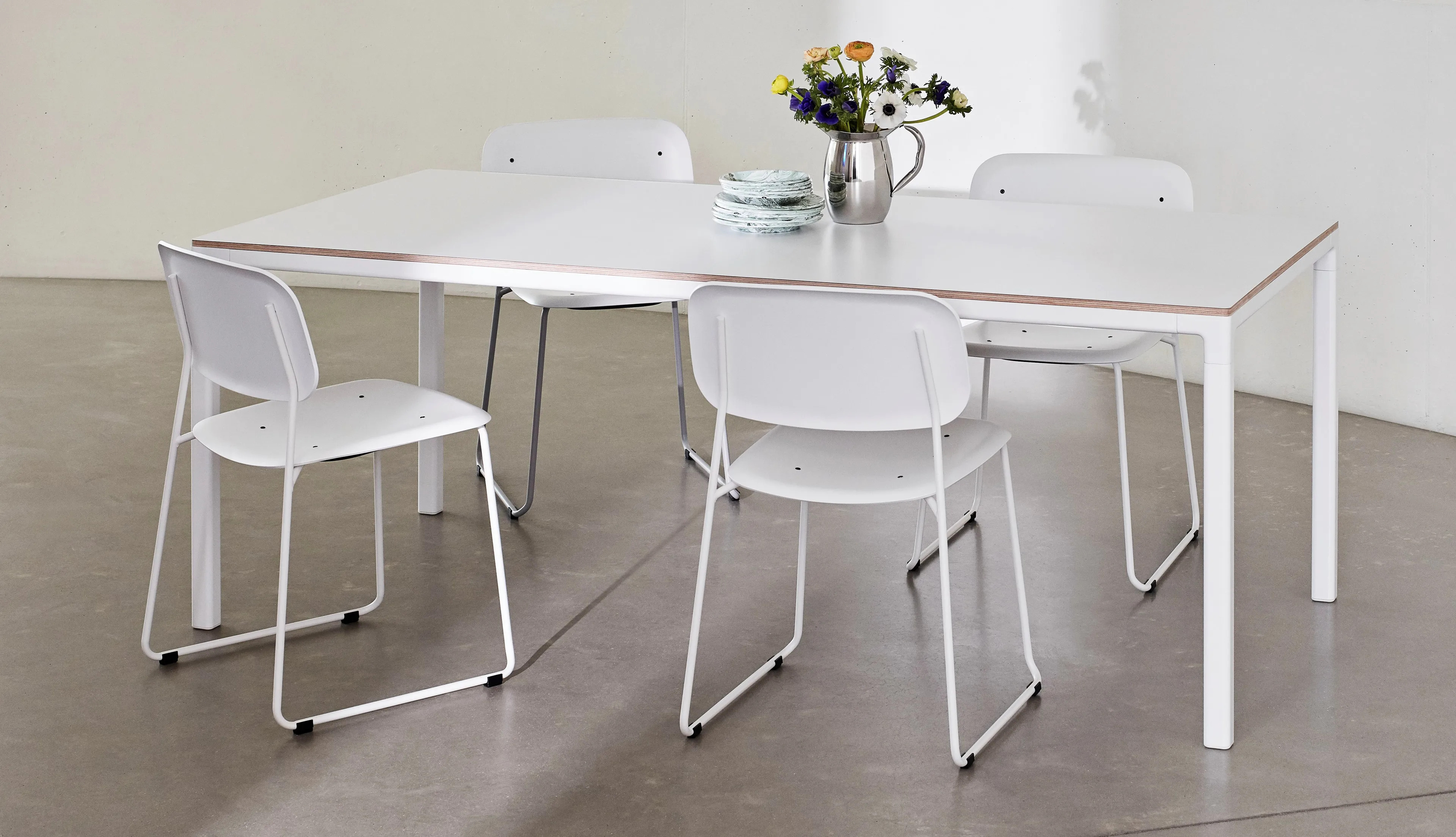 The T12 Table is crafted for versatility and practicality, making it an ideal choice for restaurants, conference rooms, coworking spaces, cafés, event venues, and educational institutions. Its modern design features legs strategically placed at the corners, maximizing seating capacity and providing ample space for dining or work activities. This design ensures it functions effectively as conference room furniture or as a dining table in bustling environments. Complementing the table, the ergonomic and stackable café chairs offer durable seating solutions, enhancing the overall functionality of any space. The T12 Table's generous dimensions and sleek aesthetic make it a fitting addition to any setting requiring adaptable and stylish furniture.