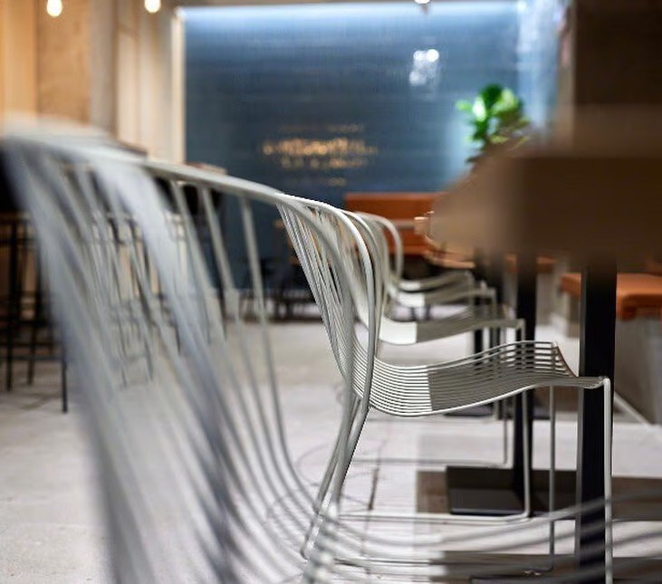 The BOLONIA collection features stackable chairs crafted from galvanized wire steel with a polyester powder coating, ensuring durability for both indoor and outdoor settings. These chairs are ideal for restaurants, conference rooms, coworking spaces, cafés, event venues, banquet halls, and educational institutions. The design draws inspiration from the serene Bolonia beach in southern Spain, with its organic and smooth lines reflecting the natural waves of the sand dunes. This modern design offers both elegance and comfort, making it a versatile choice for various environments. The ergonomic structure of the chairs provides comfortable seating, while their stackable nature allows for easy storage, making them a practical addition to any space requiring flexible and durable seating solutions.