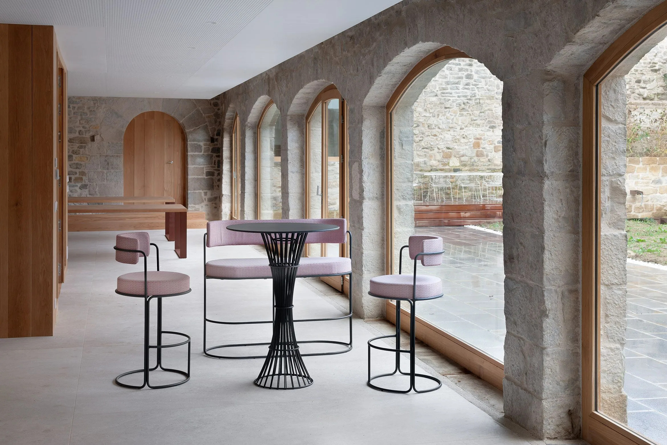 The BOLONIA collection features tables crafted from galvanized wire with a polyester powder coating, ensuring durability for both indoor and outdoor settings. This modern design draws inspiration from the natural beauty of Bolonia's virgin beaches in southern Spain, with its organic and smooth lines echoing the sand's wave patterns at the Bolonia dune. Ideal for restaurants, conference rooms, coworking spaces, cafés, event venues, and educational institutions, the BOLONIA tables offer a blend of elegance and comfort. Complementing the tables, the collection includes ergonomic and stackable café chairs, providing practical and durable seating solutions. This versatile furniture is well-suited for various environments, offering a stylish and functional option for dining and conference room settings.